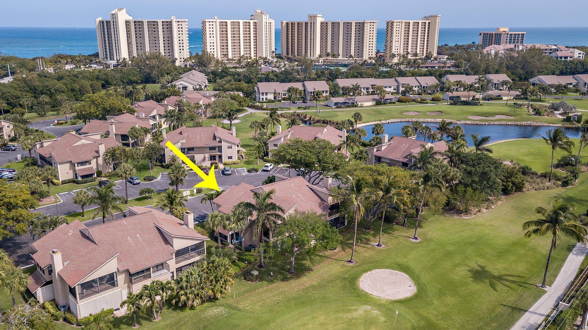 Walk to the turquoise waters of Jupiter Beach from this 2nd floor, 2 bedroom, 2 bath golf-front residence at the Jupiter Dunes. Relax on the large lanai overlooking the 8th fairway & enjoy the ocean breezes from this exceptional location just steps to the beach. This light and bright condo was recently updated and fully equipped for a great vacation get-away in Jupiter....new linens, furnishings, beds, beach chairs, the works! 2 bedrooms include a master with king bed, private balcony, walk-in closet, ensuite bath & access to lanai overlooking the golf course & a guest bedroom with 1 full & 1 twin bed. Walk to the beach, golf, shops & numerous waterfront restaurants. A perfect beach retreat!
