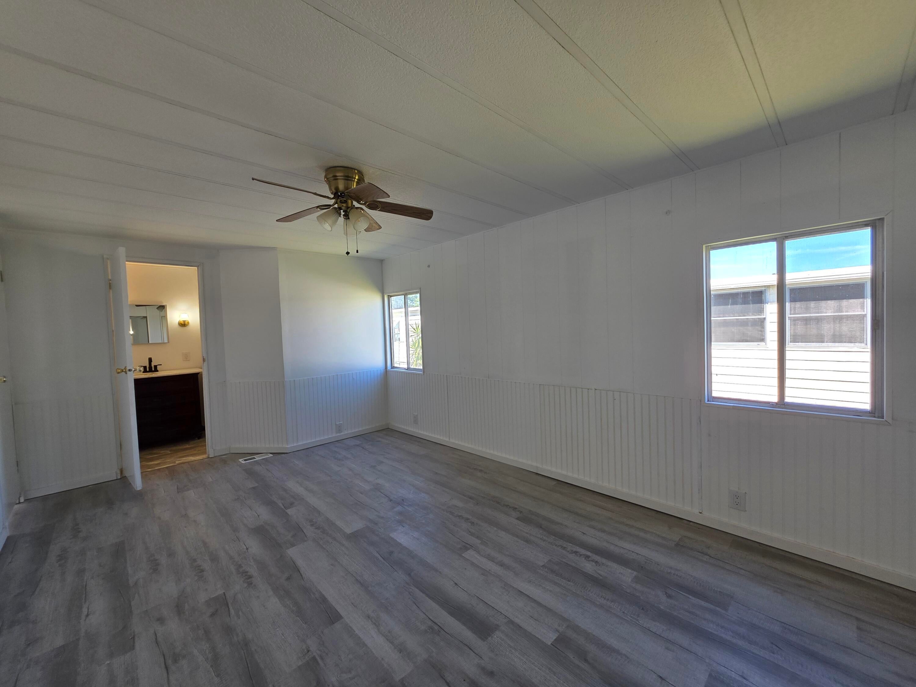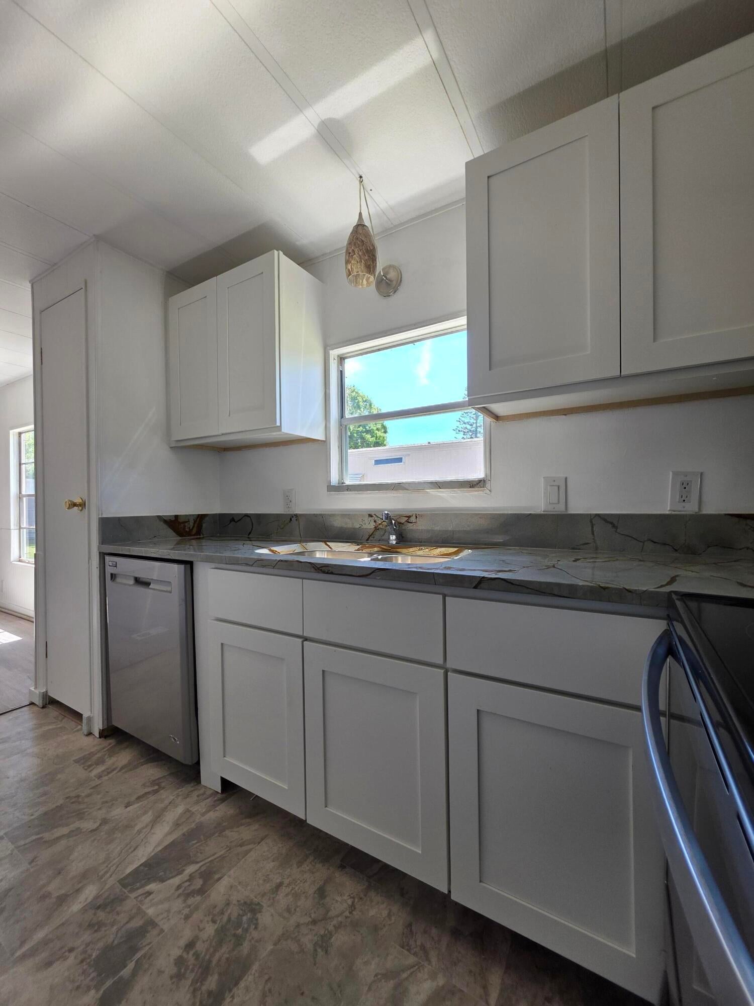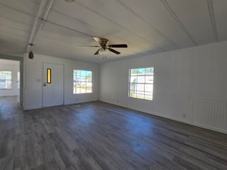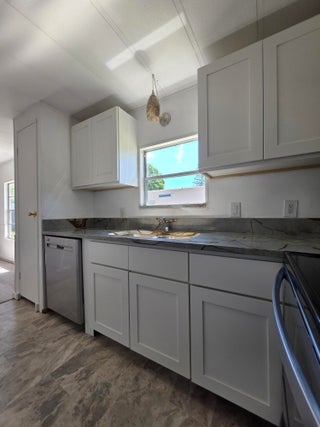 Fully Remodeled & Priced to Sell! Step into luxury with this stunning 2 Bed/2 Bath home that has been completely renovated with no expense spared! Enjoy a brand-new kitchen with stainless steel appliances and stone countertops, a brand-new A/C, and stylish new vinyl flooring throughout. Both bathrooms have been beautifully updated offering modern finishes and a fresh feel. Located in the active 55+ community of Spanish Lakes Golf Village your lot rent of $774 includes many community amenities with NO HOA. A home like this won't last long at this price, schedule a private showing today!