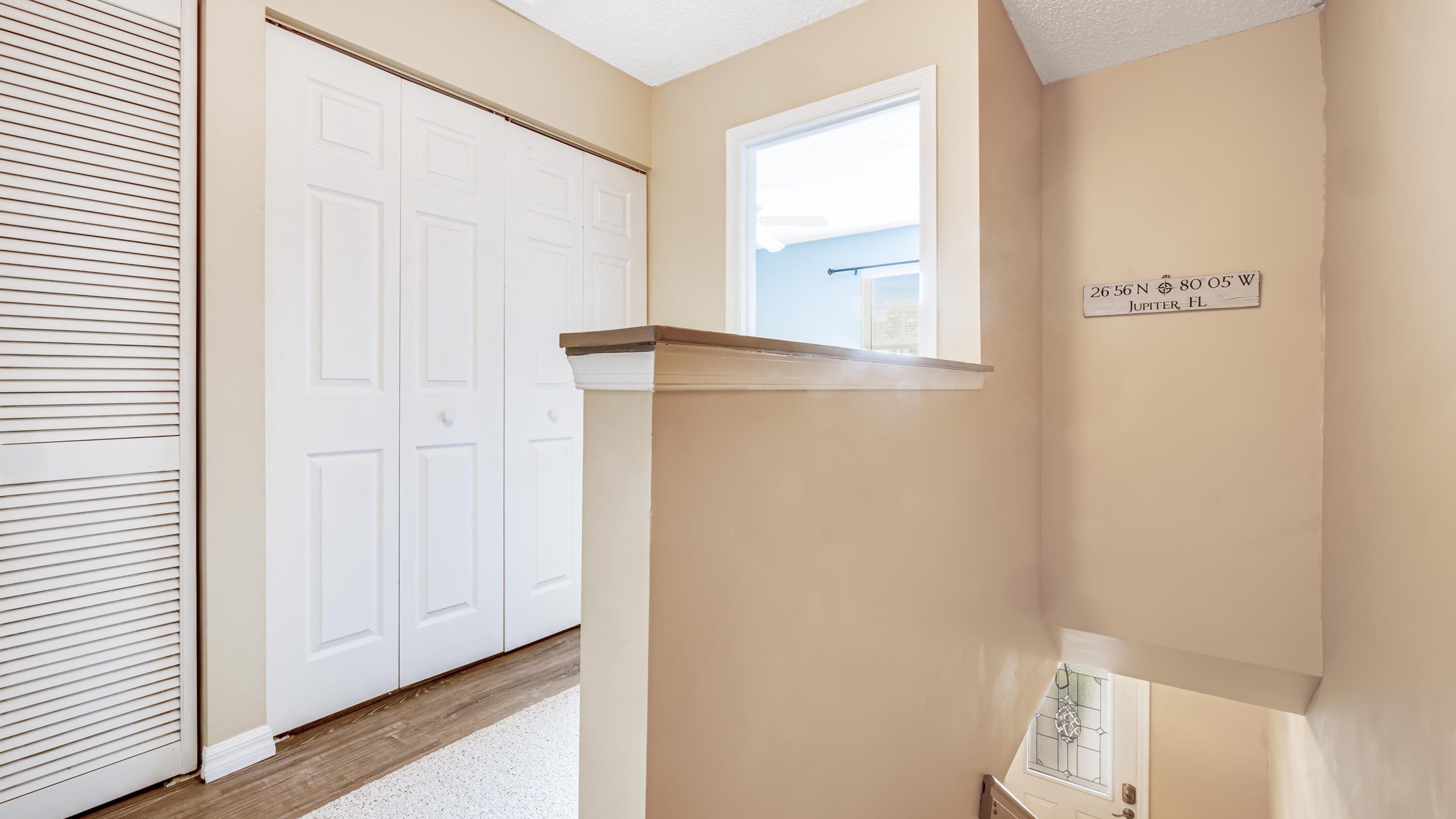 Price Improvement: Stained Glass Entry, Impact Windows, Covered Patio & Preserve Views Now $376,500. Discover this beautifully maintained 2-bedroom, 2.5-bath home nestled in one of Jupiter's most well-kept smaller gated communities. Step into elegance through a stunning front door featuring a custom stained glass panel that bathes the entryway in natural light. This radiant glow flows seamlessly through the home, illuminating the open layout all the way to the newly installed impact-rated sliding glass doors that lead to the covered patio. Every window in the home has also been upgraded to impact glass, offering peace of mind and energy efficiency.Inside, you'll find new appliances, a newer roof, spacious closets, and rare overhead garage storage--perfect for maximizing space.The living room and master bedroom are both equipped with wall-mounted TV setups, adding convenience and style to your entertainment experience. The thoughtfully designed screened and fully covered patio offers a private retreat with a ceiling fan, unique lighting, and a tranquil view of the lush preserve, ideal for enjoying your morning coffee or relaxing in the evening. Unlike similar units in the community, this patio can be enjoyed in any season, even during rain, making it a true extension of your living space. This move-in-ready, perfectly located home is surrounded by quiet, friendly neighbors who help create a welcoming and peaceful atmosphere. Just steps from the community resort-style pool, shops, and restaurants, a short drive to the stunning beaches of Jupiter, Juno, and Palm Beach, and 30 minutes to PBI Airport, this home offers the perfect blend of comfort, convenience, and coastal charm.