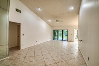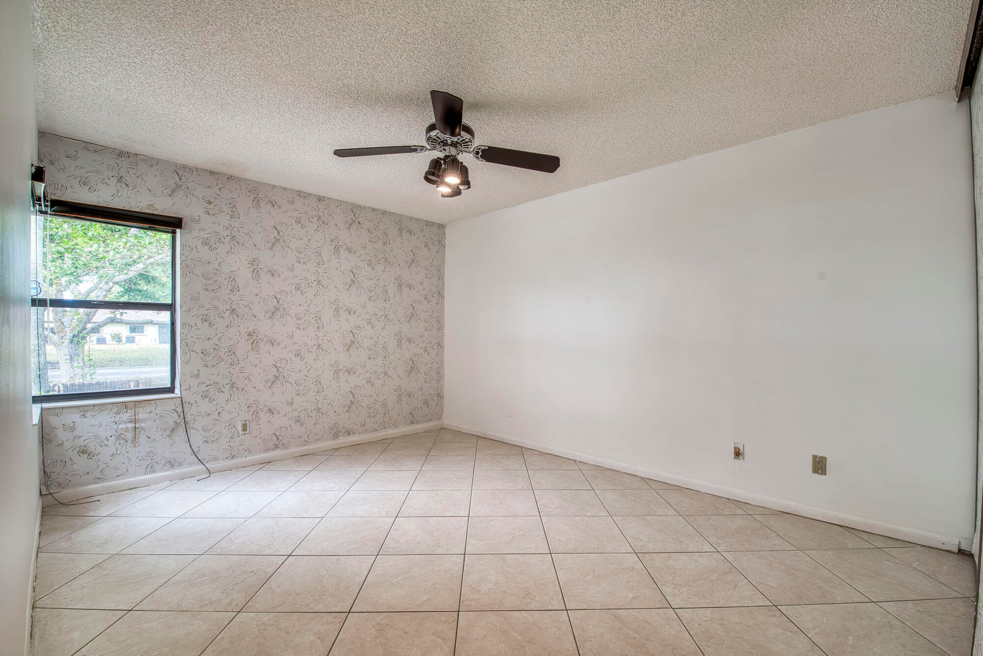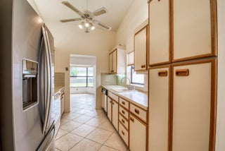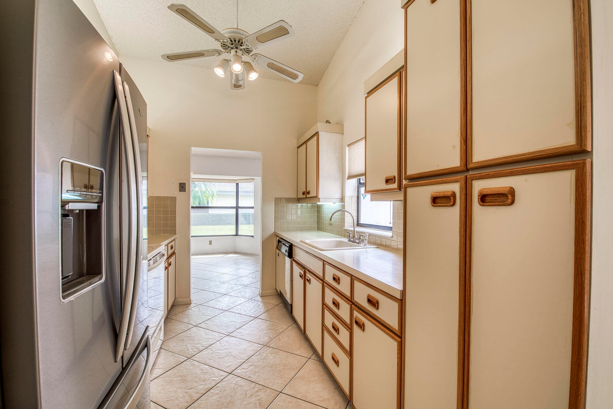 This cozy and meticulously maintained villa in the sought-after Fairmont Place offers peaceful living in one of the most private locations in the community. Nestled at the back of the neighborhood with no through traffic, the home features 2 bedrooms, 2 bathrooms, and a thoughtful layout with the kitchen and garage on one side, and bedrooms on the other. The spacious living area flows into a dining room with a charming bay window, while the galley-style kitchen includes unique touches like a built-in butcher block and knife station. The primary suite features a large walk-in closet, private en-suite, and sliding door access to the covered patio, complete with roll-down shutters and faux rock tile flooring. Additional perks include an indoor laundry room and a long one-car garage withextra storage space. Residents enjoy top-tier community amenities: a clubhouse, resort-style pool, fitness center, sauna, billiards room, and jogging trails. A perfect blend of comfort, privacy, and convenience!