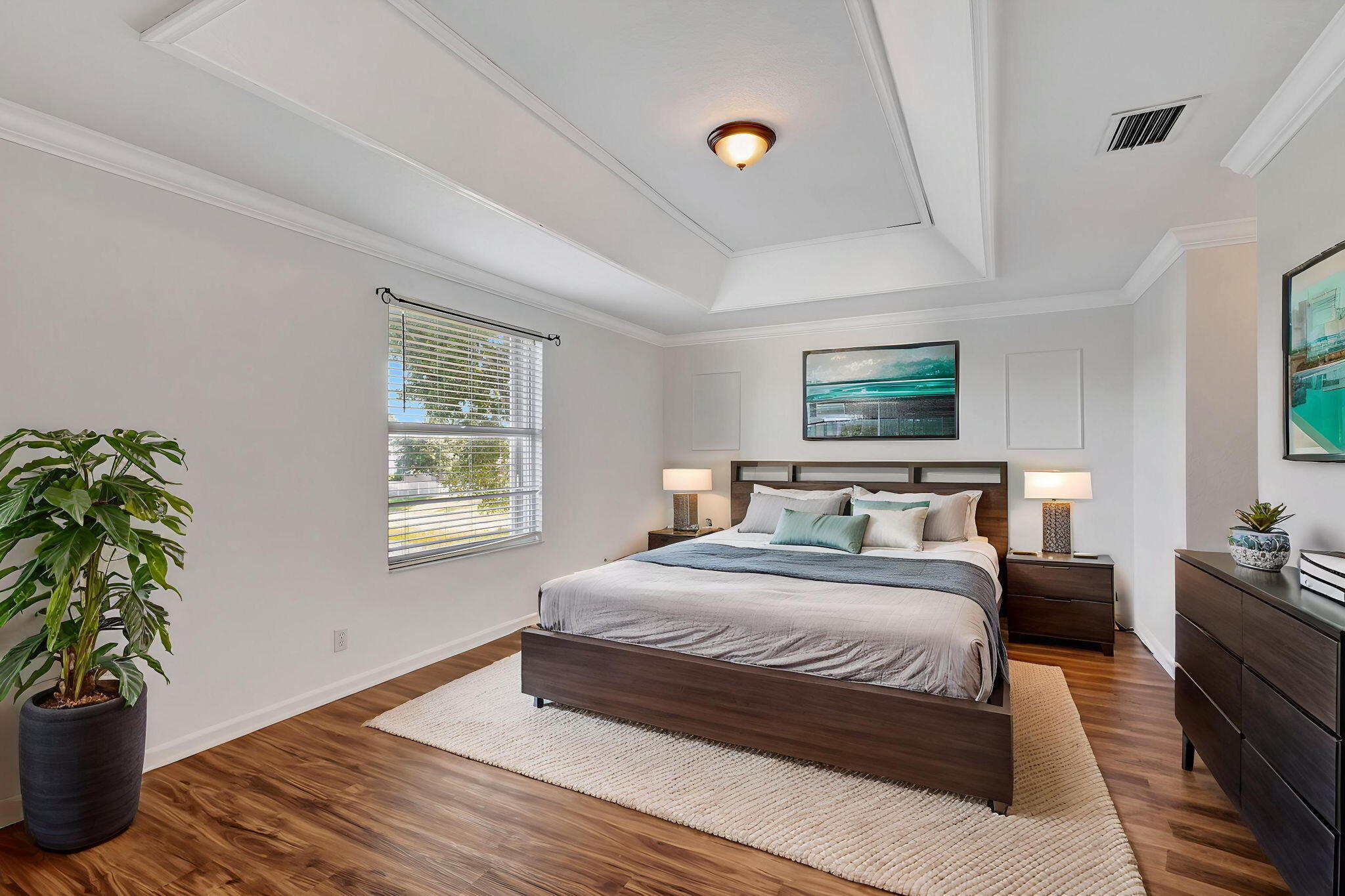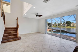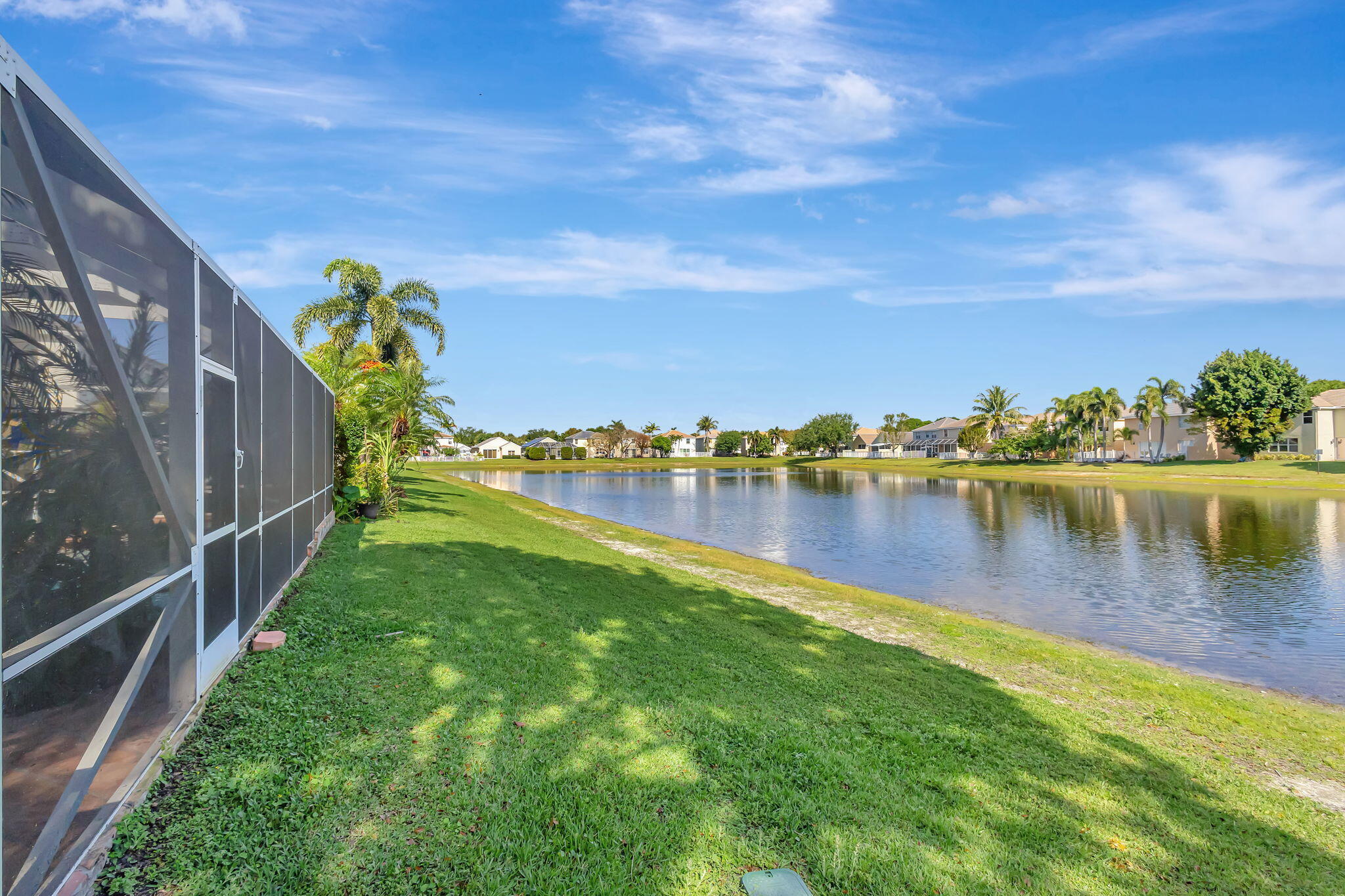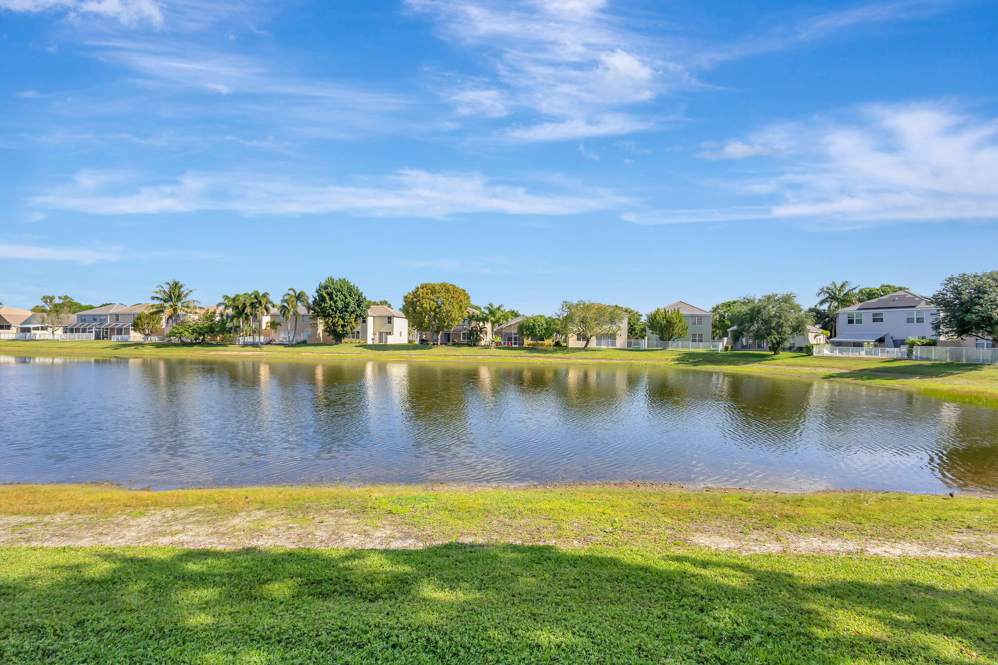 SELLERS ARE MOTIVATED AND WILLING TO NEGOTIATE A BUYER CREDIT TO BE PAID AT CLOSING. Spacious 4 bedroom, 2.5 bath pool home, in a great family community, with a gorgeous lake views. The gas heated screened pool has a spa and babbling fountain making for a very relaxing setting. Upon entering the home, you will find a formal living room and a formal dining room with French doors which could also be used as an office/den/playroom or first floor bedroom. . Kitchen boasts granite counters, all Stainless Steel appliances, the stove is gas and there are two pantry's for extra storage The kitchen is open to the family room with both overlooking the amazing pool and lake views.Elegant crown molding throughout the first floor. The beautiful wrought iron staircase brings you to the 4 bedrooms and 2 baths upstairs. Rich looking laminate flooring on the stairs/hallway/master bedroom and one secondary bedroom. The entire interior of the home has been freshly painted. New carpet installed in 2 upstairs bedrooms. This home has a NEW ROOF (2022) and ACCORDIAN SHUTTERS for all windows/doors, gas hot water heater 2022, dishwasher 2022. Reasonable HOA fee includes the pool/tennis/gym/tot lot, 24 hour manned gate, cable (HBO), comcast basic intranet and alarm service, lawn maintenance (including hedges). Great location with easy access to Southern and the turnpike. Close to shopping, the mall and great schools.