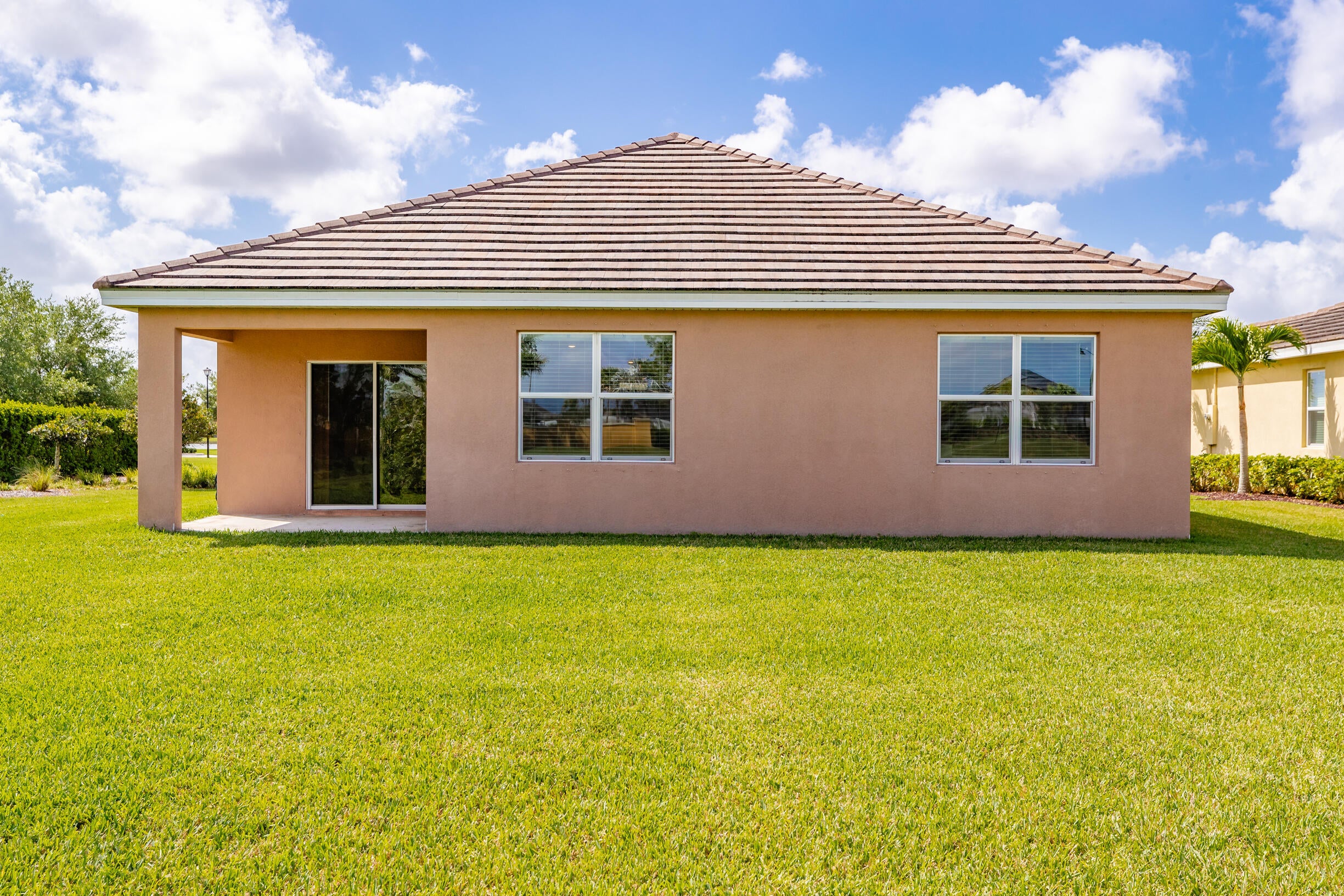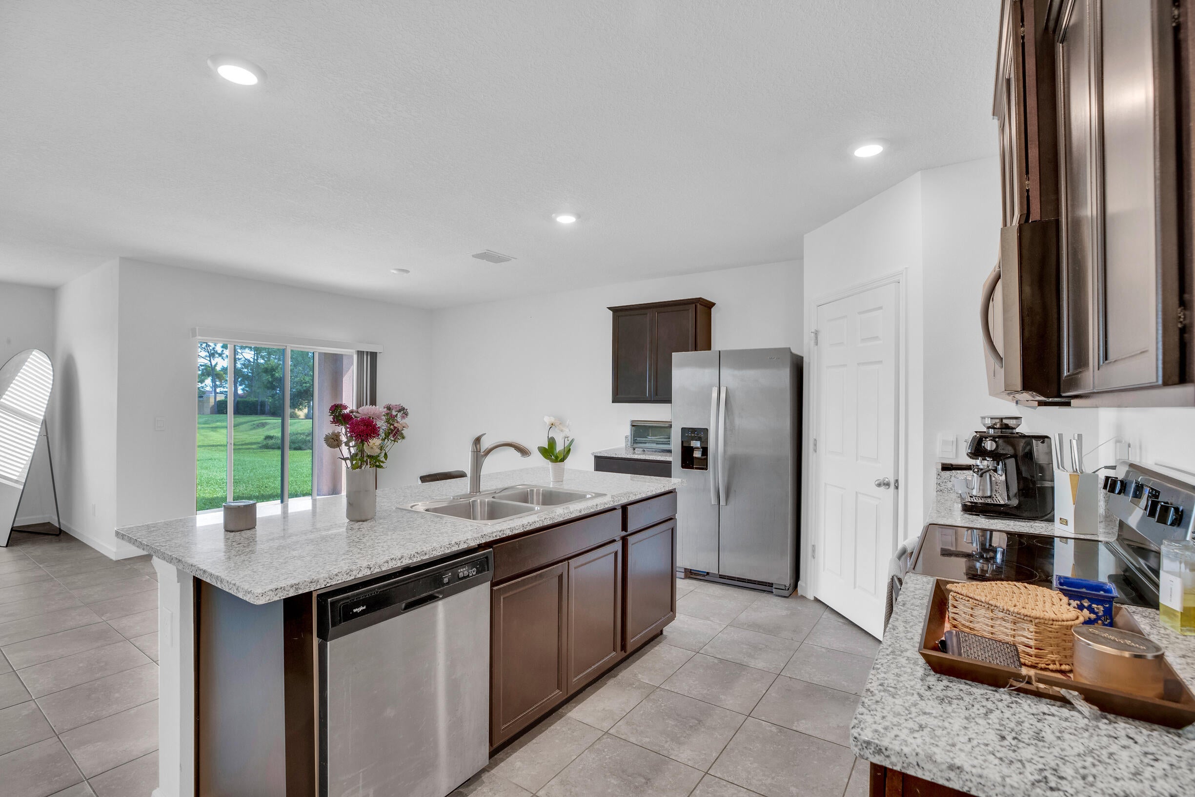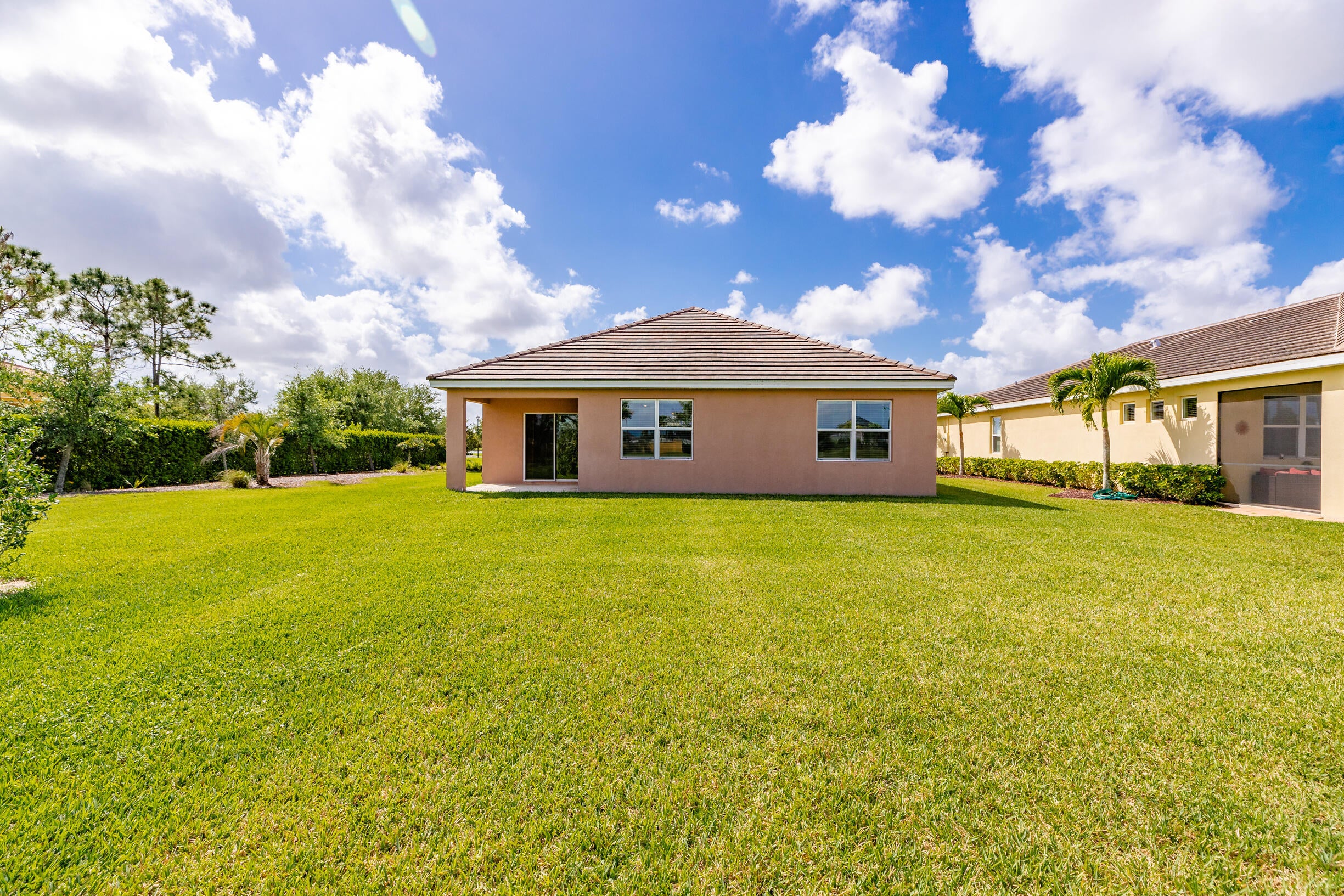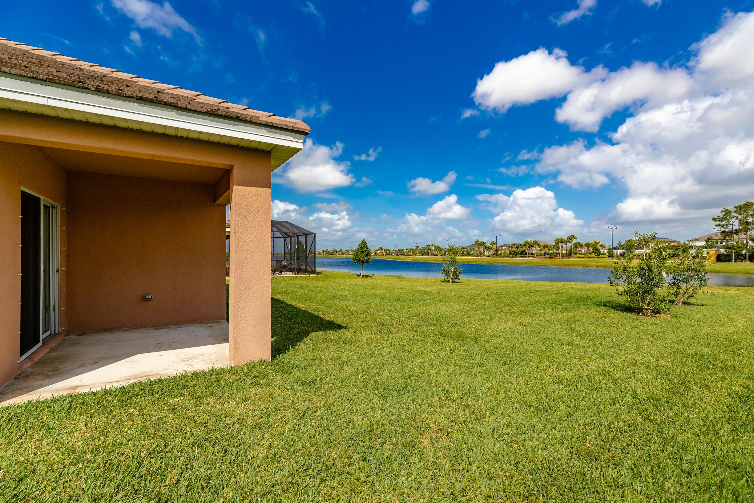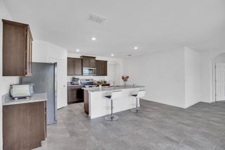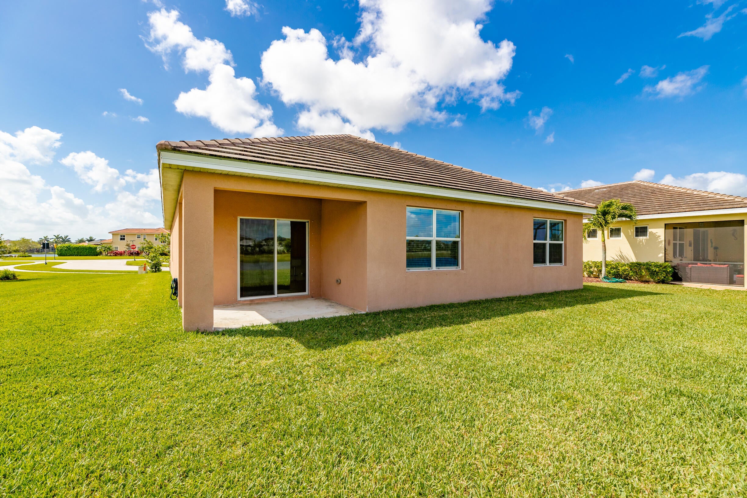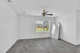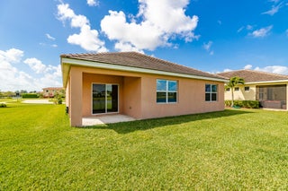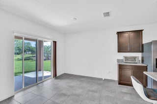 Single-family, ranch-style residence offers 4 bedrooms and 2 full bathrooms, in a comfortable living space of 1,828 square feet. Situated on a corner lot, the home features an open floor plan with ceramic tile flooring and granite countertops in the kitchen, complemented by stainless steel appliances and a pantry. The master bedroom is located at the rear of the home for added privacy, includes an en-suite bathroom with dual vanities, a separate shower, and a walk-in closet. Additional amenities include a two-car garage, a concrete tile roof, and an expansive backyard with room for a pool. The property offers picturesque lake views and is conveniently located near the community pool, dining options, shops, markets, a hospital, I-95, and the Florida Turnpike.