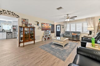 Welcome to this beautifully updated 3-bedroom, 2-bathroom home that combines comfort, style, and peace of mind. Situated in a desirable neighborhood, this home boasts a range of recent upgrades that make it truly exceptional. Key Features: Hurricane-Ready: Equipped with impact-resistant hurricane windows and doors (2018) and wind mitigation toenail straps for added protection during storm season. New A/C (2023): Enjoy year-round comfort with a recently installed energy-efficient air conditioning system. Updated Kitchen (2023): The newly remodeled kitchen features modern appliances, including a brand-new electric smart stove (2022) and a new refrigerator (2018), perfect for the home chef. Beautiful Flooring: The entire home was outfitted with new flooring in 2021, creating a fresh andcohesive look throughout. Luxurious Master Suite: The master bedroom and bathroom were fully remodeled in 2023, offering a spa-like retreat with contemporary finishes. Electrical & Structural Upgrades: The electrical panel was upgraded in 2023, ensuring a reliable and efficient power supply. The new garage door (2022) and front porch roof (2022) add both functionality and curb appeal. Outdoor Living: Enjoy the outdoors in style with pavers installed in 2019, providing a beautiful and low-maintenance space for entertaining or relaxation. Convenient Laundry: The washer and dryer were replaced in 2017, adding convenience to your daily routine. Elegant Touches: The home features plantation shutters (2021) that offer both elegance and privacy.