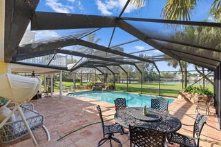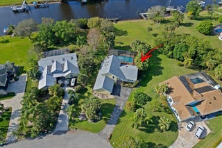 Available seasonal rental - Florida living at its finest with this 4 bedroom, 3 bath waterfront pool home with direct ocean access, including a private dock in the sought after community of Vikings Landing. Enjoy having one of the largest private lots of this quaint neighborhood situated on a wide deep water canal with direct ocean access with no fixed bridges. Bring your boat or jet skis and enjoy easy access to fine waterfront dining and entertainment right from your backyard. enjoy award winning snook fishing, beautiful mangroves in protected sections of the North Fork of the St. Lucie River, popular sandbars nearby, and of course Downtown Stuart with public docking, and the Manatee Pocket in Port Salerno just to name a few...This turnkey home is fully furnished with three levels of living space. The entry level offers living and dining rooms and a beautiful light and bright kitchen with skylights and large rear windows offering a focal entertainment space both inside and leading out to a screened pool patio adorned with Mexican tile with both covered and open patio spaces. Walk out to your private dock and catch the most beautiful sunsets or just enjoy the sprawling yard. The lower level offers a huge family room with a fireplace and built-in entertainment center providing a wonderful place for gathering. One bedroom, bath and laundry room also on lower level. The upper level has a spectacular primary bedroom and bath with a private spacious balcony with incredible water views. Two additional spacious bedrooms and bath also occupy the upper level. freshly painted inside and out, large driveway and side entry 2 car garage provides for plenty of parking space. Don't miss this opportunity to enjoy some Florida sunshine and all the amenities that surround this gorgeous home!