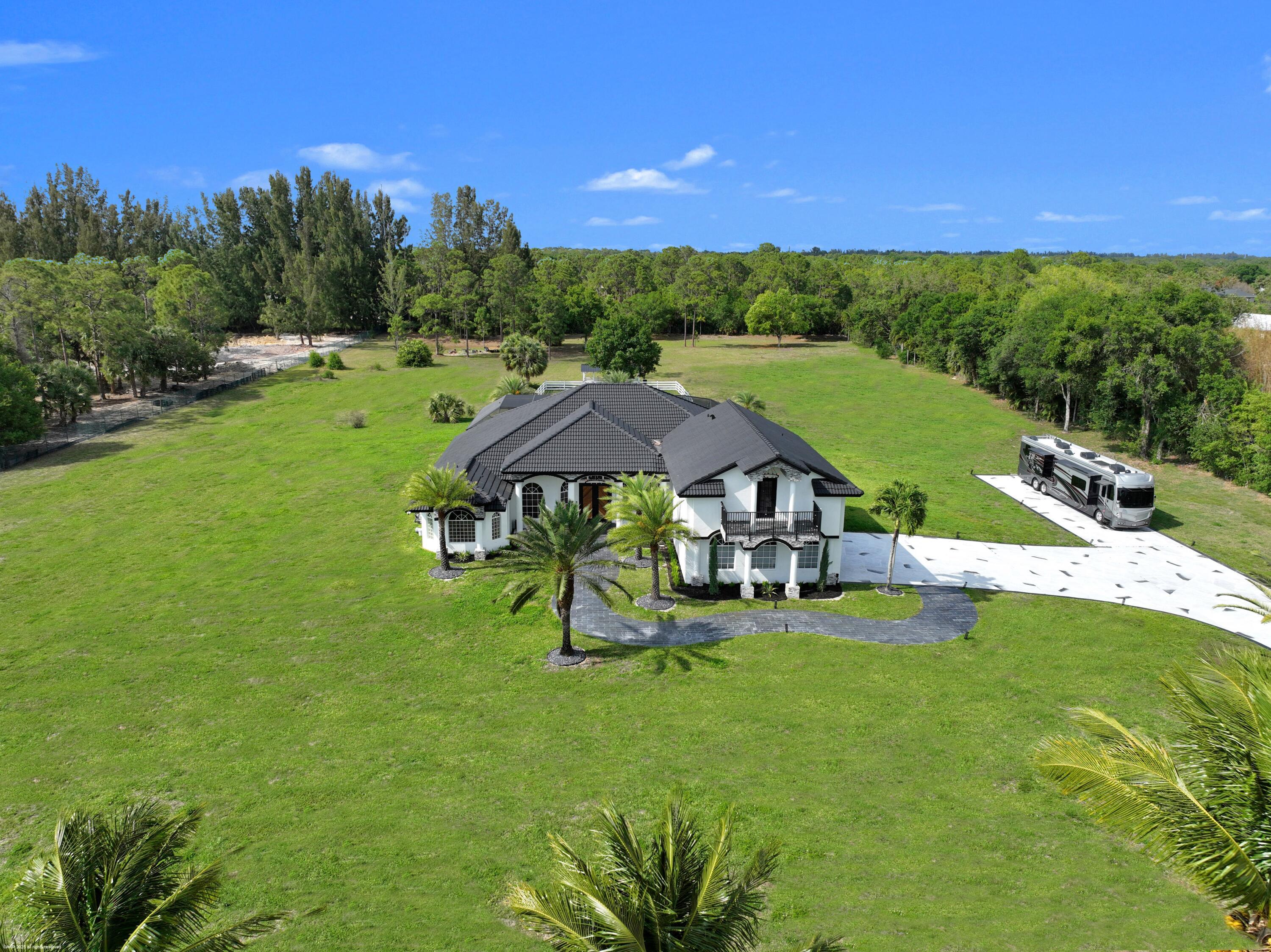 Motivated Seller! Reduced $150K! Remodeled 5Br home on 5 cleared acres, perfect for the active family or equestrians! The center-island kitchen features quartz counters & stainless appliances & opens to the family room w/ a marble entertainment wall & fireplace. The primary bedroom suite boasts sitting room & luxurious spa-like bathroom with dual vanities, new spa tub, rain & waterfall shower heads & 6 body sprays. Upstairs is a private junior suite with full bath and balcony. The new pool & patio is finished in a stunning slate tile & is completely screened. There is a new RV Pad w/electric & 500 gallon septic hookup. The lot offers plenty room to layout your equestrian facilities. Hack across the street to White Fences equestrian subdivision & horse shows! A must see!A private & peaceful location directly across the street from White Fences! Previously owned by well known professional athlete! Additional Features: 36" tile floors Formal Dining room Wine cooler All new bathrooms, featuring body sprays, rain showerheads, & Marble finishes. Upstairs bedroom suite was finished with new wood floors & new full bath with walk-in oversized shower and Onyx counters Office/Den Primary Bedroom suite with: TV/sitting room, porcelain accent wall & separate water heater. New Samsung front load washer & dryer Oversized garage - Approx. 20' deep. New pool in 2024 with saltwater, electric heater & spa. Slate decking and new screen enclosure. Bamboo finished ceiling at covered patio. New concrete RV pad and extended driveway with electric & septic hookups. Marine grade electrical. New entry gates a the driveway. New well pump and Kenetico water treatment system - Nov. 2024. New irrigation & additional lines added. Approximately have of the property is irrigated.