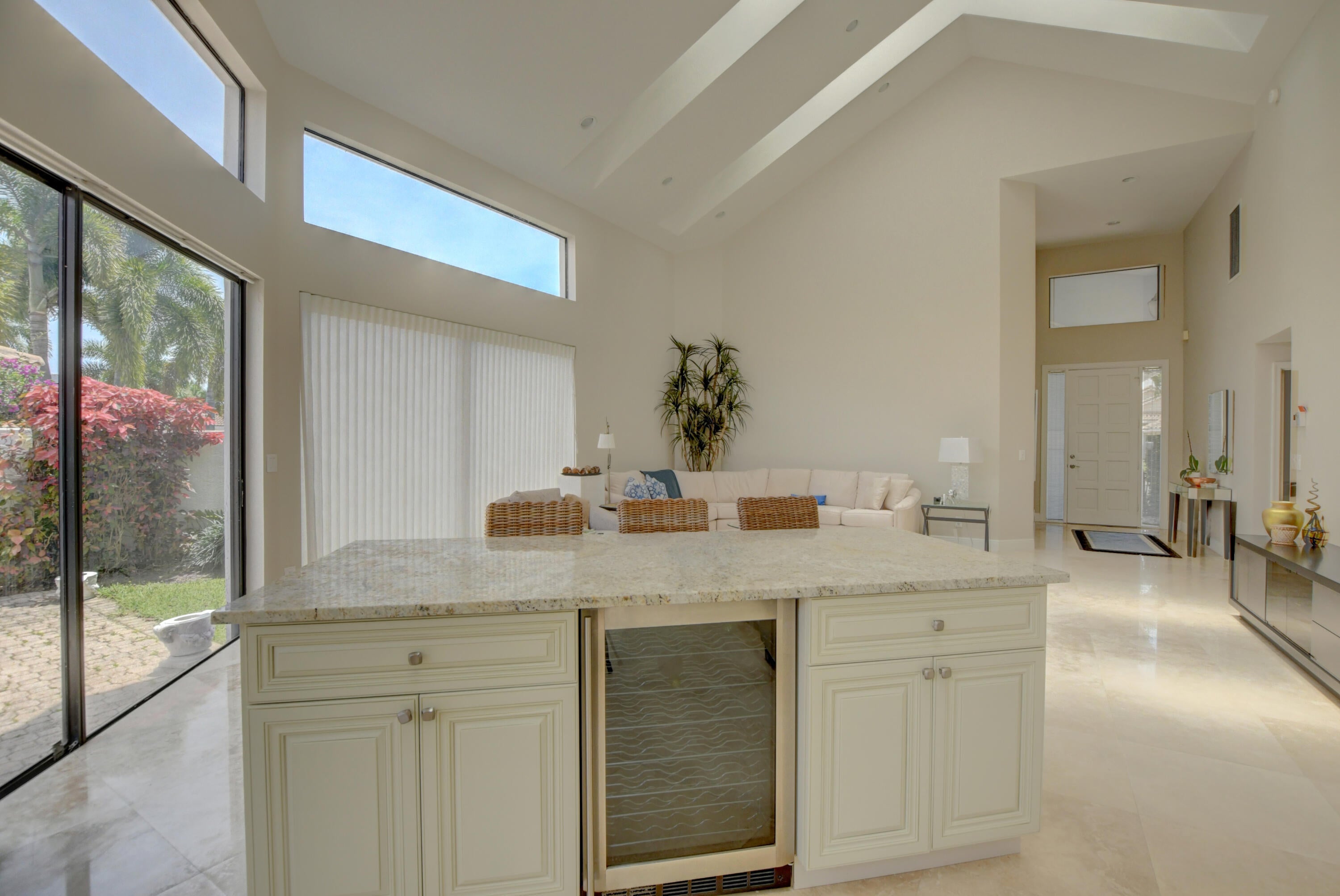 Beautiful 3 BR, 3BA home on a large pie shaped lot.Enter into a light and area great room and open kitchen. SS appliances and granite counters.Large island to work on. All baths renovated. Skylights throughout. Screened patio and open patio as well.Move right into to this amazing property.Come and enjoy the fabulous Polo Club lifestyle .Golf,Tennis,Pickleball and Social membershipsavailable. Mandatory membership.
