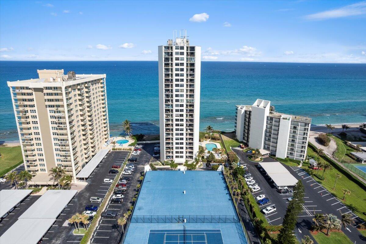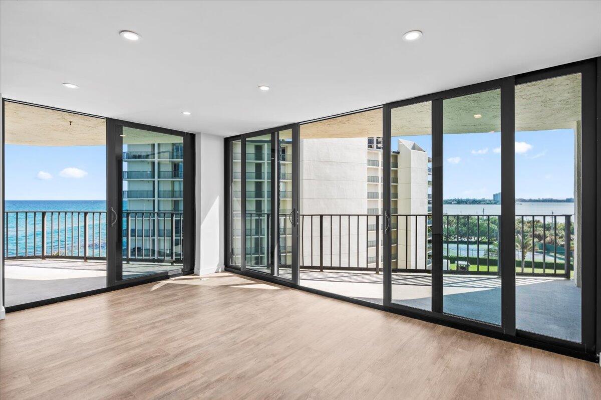 Move in and enjoy spectacular views from two private balconies in this turn-key unit which offers ocean and intercoastal waterway views. New flooring, and stylish remodeled Kitchen and full baths. Take advantage of on-site clubhouse, pool, tennis courts and private access to 800' of beach right outside your door. Garage parking, building concierge service and on-site management are a few of the amenities you'll find. Close to shopping, airport, and restaurants.