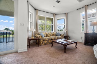 6-Bedroom Savannah Model in a private cul-de-sac with pool and fully fenced waterfront property. This expansive 6-bedroom, 5.5-bathroom residence offers the perfect blend of luxury, comfort, and modern efficiency, with one bedroom and a full bathroom conveniently located on the first floor--ideal for guests or multigenerational living. Tech and energy enthusiasts will appreciate 88 paid-in-full solar panels, Tesla power panels and power walls, a Tesla car charger, accordion shutters, and a Mr. Mosquito misting system. Inside, the bright, open layout is highlighted by sliders with 3 collapsible panels that connect indoor and outdoor spaces, a formal dining room, cozy breakfast nook and a chef's kitchen with granite countertops, matching backsplash, double ovens, and stainless steelappliances. Category 5 wiring throughout ensures high-speed internet in every room, and the laundry/mudroom adds convenience. Upstairs features a spacious loft ideal for a media room, gym, or lounge, plus an expansive primary suite with a covered balcony that extends across both the bedroom and loft. Additional features include a 3-car garage, ample storage, and more. Located near transportation, shopping, dining, parks, and a new state-of-the-art library, all within an A-rated school district.
