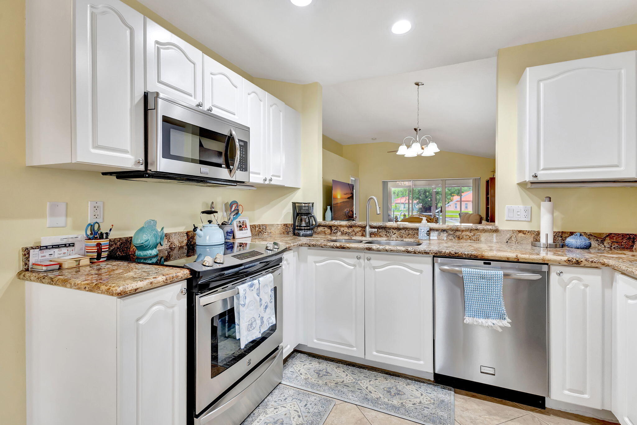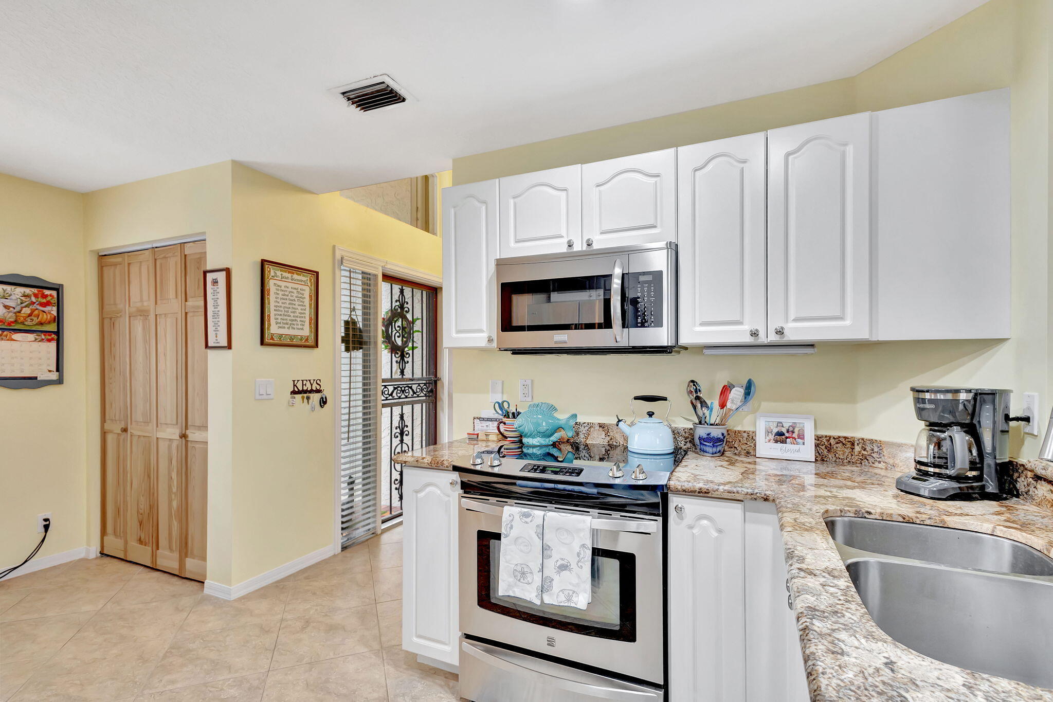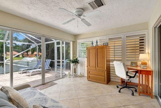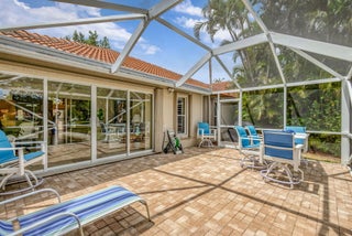 New Roof Coming :) Sweet Single Story Home with brand new screened patio overlooking serene lake. This Expanded Derby floor-plan has a bonus room with sliders to the rear patio. Located in a quiet gated community that is close to everything in the Palm Beaches. The Home has Vaulted ceilings, Tiled living areas & master bedroom, upgrade baths & Kitchen, newly installed pot lights, Granite kitchen counters, stainless steel appliances, an inside utility room, Accordion Shutters & More.. The Community is Gated with Roving Patrol, has a Clubhouse with Exercise Room & Spa Outside, 3 Pools (1 Heated In Winter), 3 Tennis Courts, 2 Racquetball Courts, Volleyball Court (Sand), Sports Field w/ Soccer Goals, Tot Lot & more. The HOA Fee's are $940 @ Quarter and cover PartialLawn Service, Basic Cable, Irrigation.Security & more. Up to 2 Pets are Okay with No Poundage Restrictions, Motorcycles are Okay But, Must be Garaged overnight per the HOA Documents. Boat & RV Storage is available. The Location is close to the Scripps Research Site, 2 Malls, 3 Major Grocery Stores, Downtown @ the Gardens, Cityplace, Beaches, Dining, Entertainment, I-95, The Airport, The Turnpike & more.