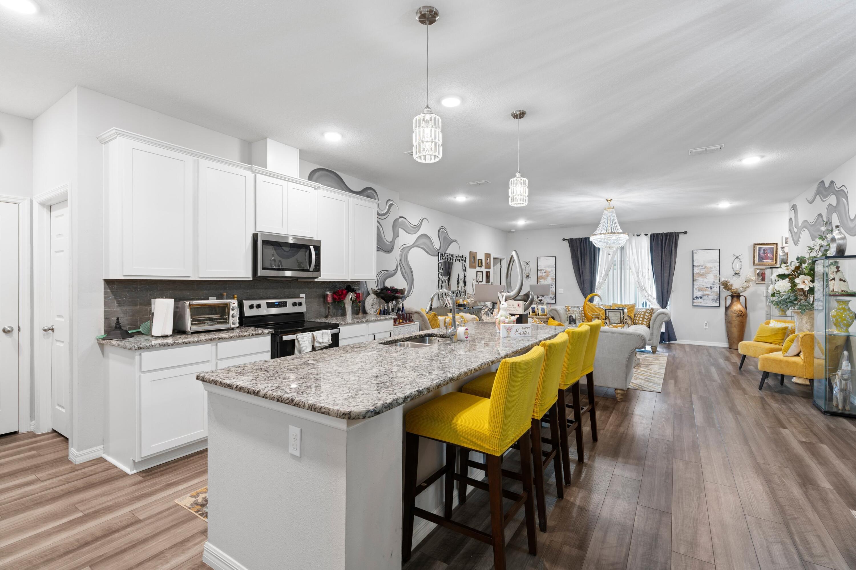 Come and tour this newly built, beautiful three-bedroom, three-bathroom Corner lot single-family home in the heart of Port Saint Lucie. The home features a large closed-in den that can be used as an additional bedroom or office, 3,591 square feet of living space, a huge living area with a vaulted ceiling, three-car garages, and a CBS home. Vinyl flooring is throughout the living room, and carpet is in all bedrooms. The roof is only three years old; all appliances are only three years old, and the water heater is only three years old. A gorgeous, oversized paver driveway welcomes your home. NO HOA Great location, close to Main Highways, beaches, restaurants, and shopping!