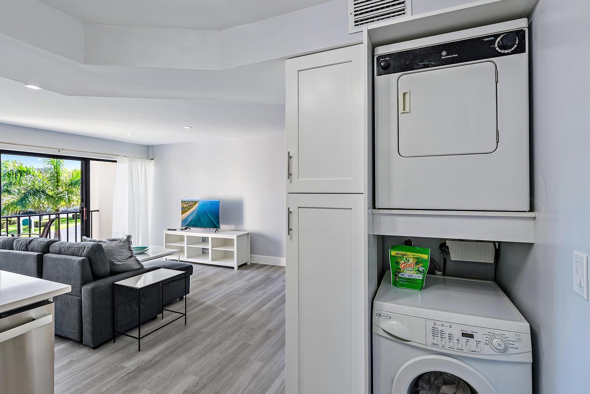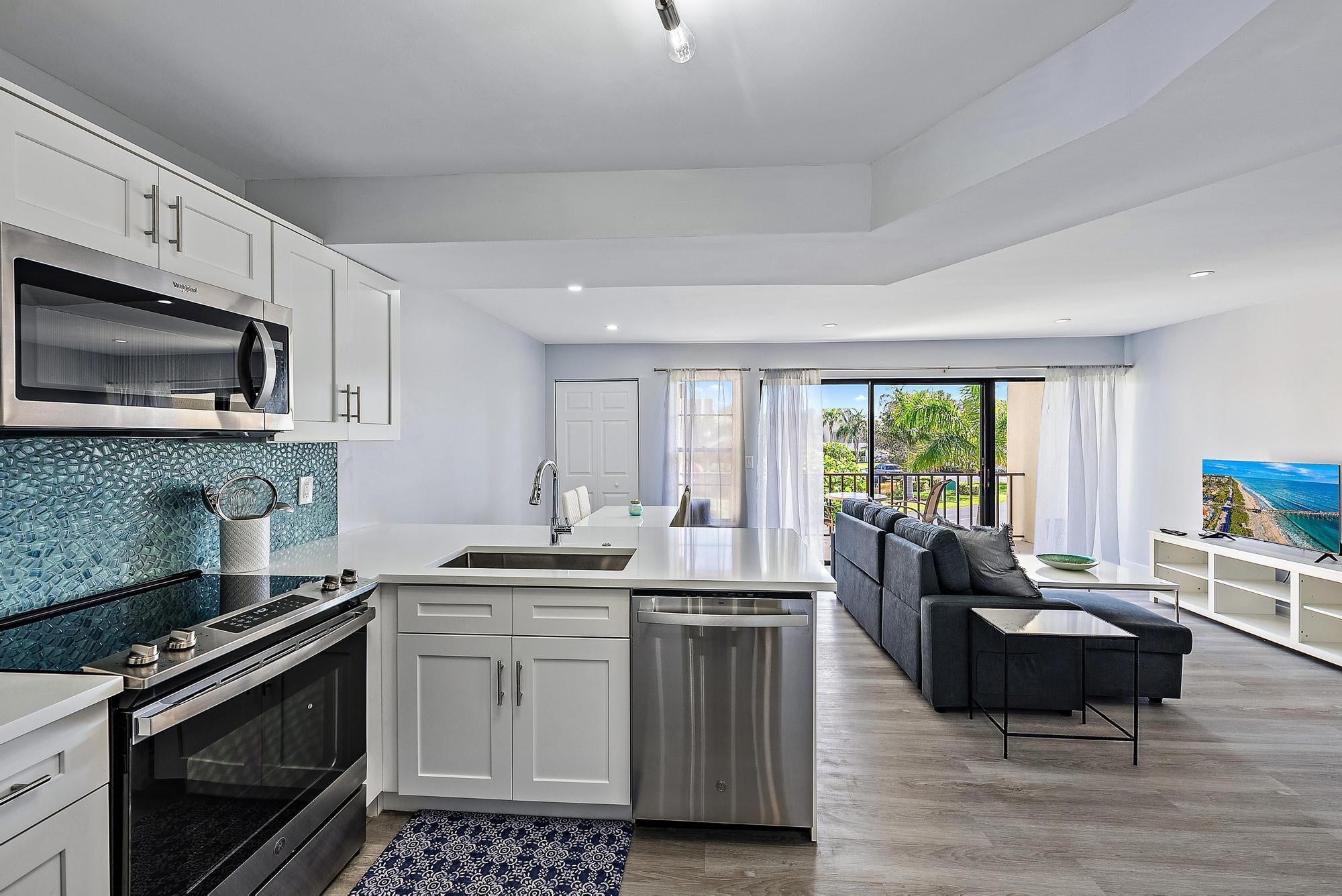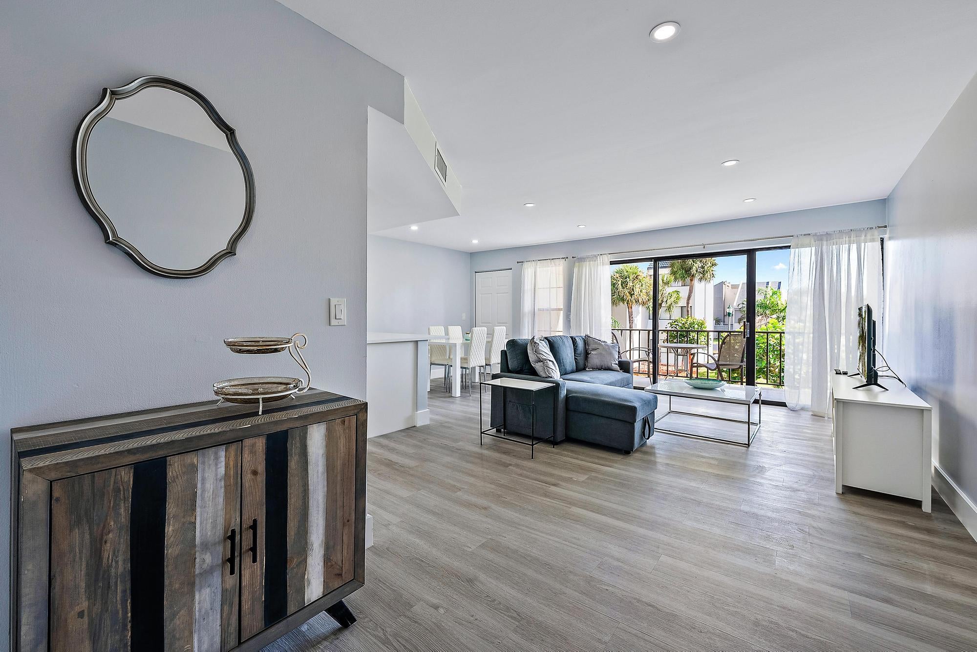 AVAILABLE FOR OFF-SEASON starting July 5, 2025! This newly renovated one-bed, 1.5-bath condo comes fully furnished & turn-key. The condo features LVP flooring throughout and a new kitchen with soft-close shaker-style cabinets, quartz counters, and new stainless appliances. Generous master bedroom with king bed and newly remodeled ensuite. The family room has sliders that open to a covered patio, the perfect spot to sip coffee and watch the sunrise. Excellent location in the desirable Jupiter Ocean & Racquet Club. The condo is steps from the community pool/clubhouse, one block from Jupiter Beach, & close to the best restaurants & shops in Jupiter, including Harbourside & the Riverwalk.