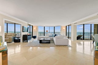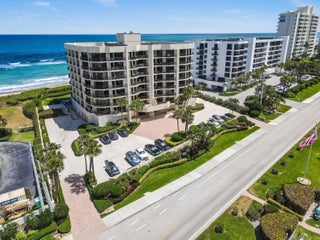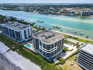 Come enjoy your season on Jupiter Island, a stunning Jupiter Island direct oceanfront residence! Situated in a boutique building, The Landfall - featuring breathtaking sweeping views of the coastline and showcasing panoramic ocean views. This residence has a stellar floor plan which maximizes the views that are offered throughout this three bedroom, three full bathrooms, a gracious grand foyer with a beautiful cedar trey ceiling, expansive living areas and newly renovated kitchen 'A' model home. The third bedroom is a thoughtfully designed space that can be utilized as a den or a true third bedroom depending on your needs.Exquisitely maintained and landscaped mangrove enhances the ocean-colored scenery from each room. Featured within this residence are electric shading on all of the windows, complete impact window and doors, elegant marble floors throughout social spaces and warm wood plank and tiles are laid diagonally in the bedrooms and bathrooms making this modern home welcoming. The kitchen has eat-in and formal dining options and modernized with stainless steel appliances, white quartz countertops, white cabinetry and a turquoise coastal decorative backsplash. Providing a luxury feel, there is crown molding and baseboard throughout lined around the neutrally painted walls. There is a designated laundry room with plenty of storage space in addition to the generously large walk-in closets throughout the residence. Landfall also offers garage parking, interior air conditioned hallways, an onsite manager, and a beautiful heated pool, located just steps to the beach. Intracoastal dock offers residents to enjoy boating, kayaking, paddle boarding, snorkeling and more!