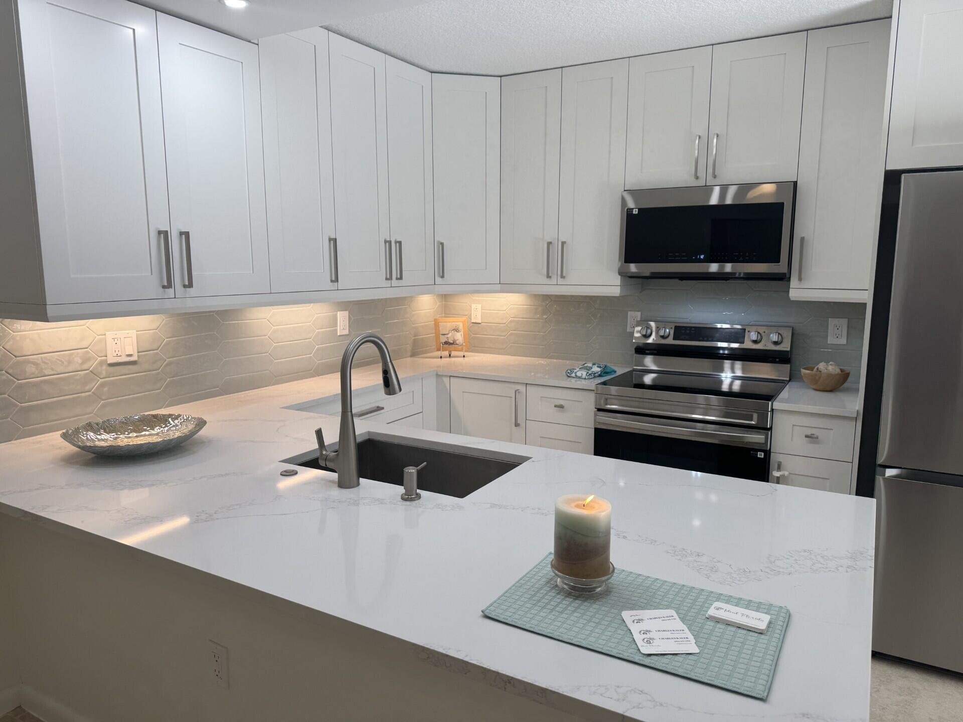 Seller motivated!Step into style and convenience with this fully renovated move-in-ready home. New hurricane impact sliding glass doors and front door, ensuring both safety and peace of mind. Inside, you'll find two new stunning en-suite bathrooms adorned with elegant, imported Spanish tile and seamless glass shower enclosure. The entire home has been freshly painted inside and out and boasts an all-new kitchen with imported handmade Italian tile, new cabinets, quartz countertops, and appliances, A/C & Water heater making it truly feel like new construction. Enjoy your morning coffee or evening unwind in your private courtyard and take advantage of two assigned parking spaces along with ample guest parkingLocated in the desirable Sandalwood community, you'll be surrounded by mature trees, and have access to resort style amenities like an Olympic-size pool, Racket ball courts, tennis/pickleball, and basketball courts. The low HOA covers cable TV, exterior building insurance, and more-offering outstanding value and worry-free living. Unbeatable Location: Just minutes from pristine beaches, Ample shopping, Top-rated restaurants, and all the vibrant entertainment Boynton/Delray Beach, and West Palm Beach has to offer. Don't miss this one!
