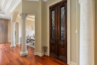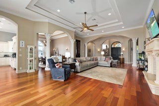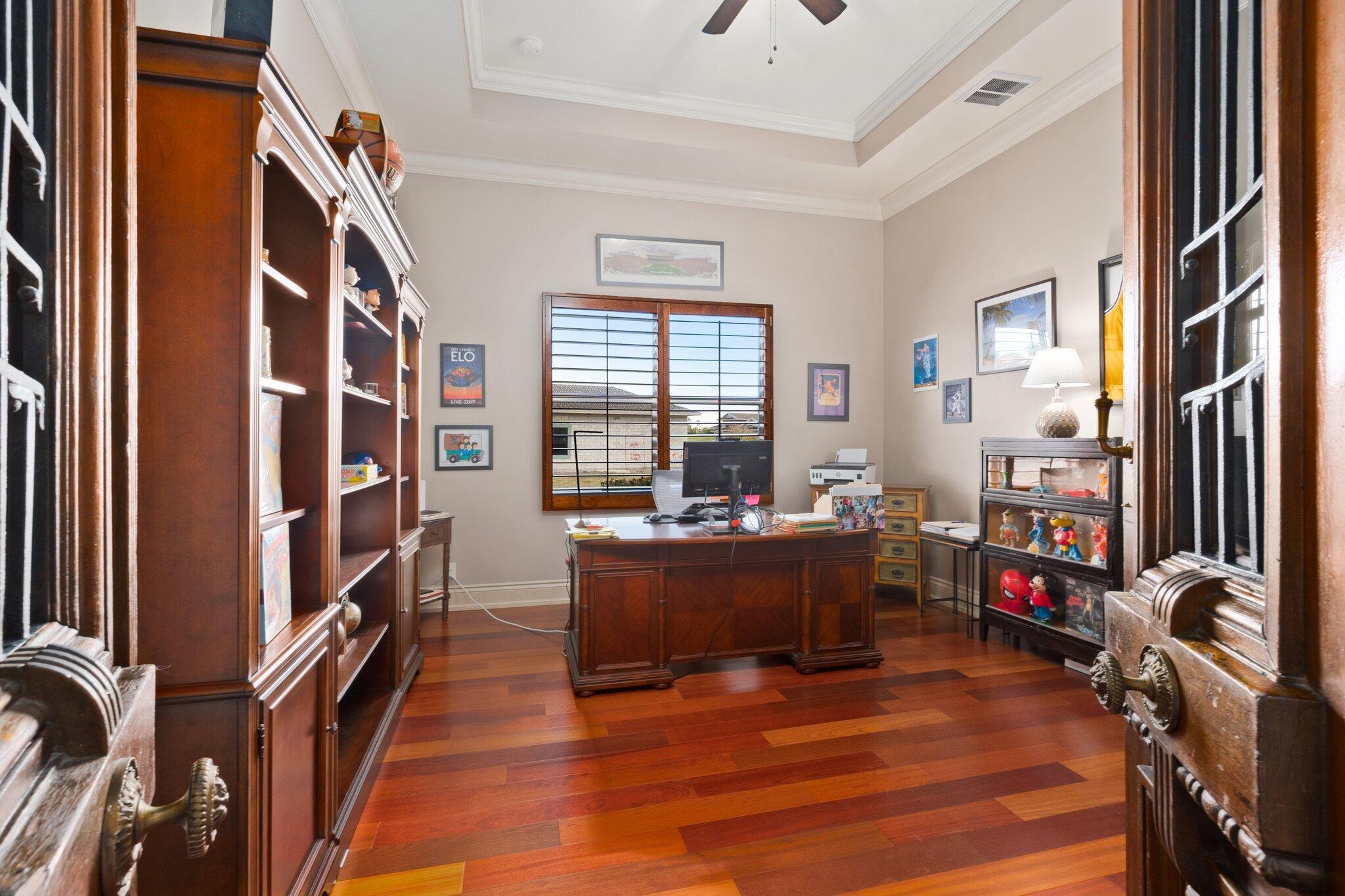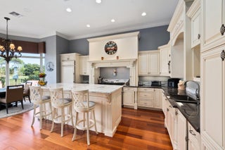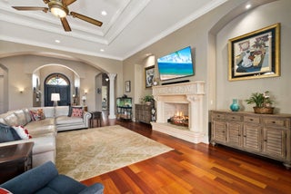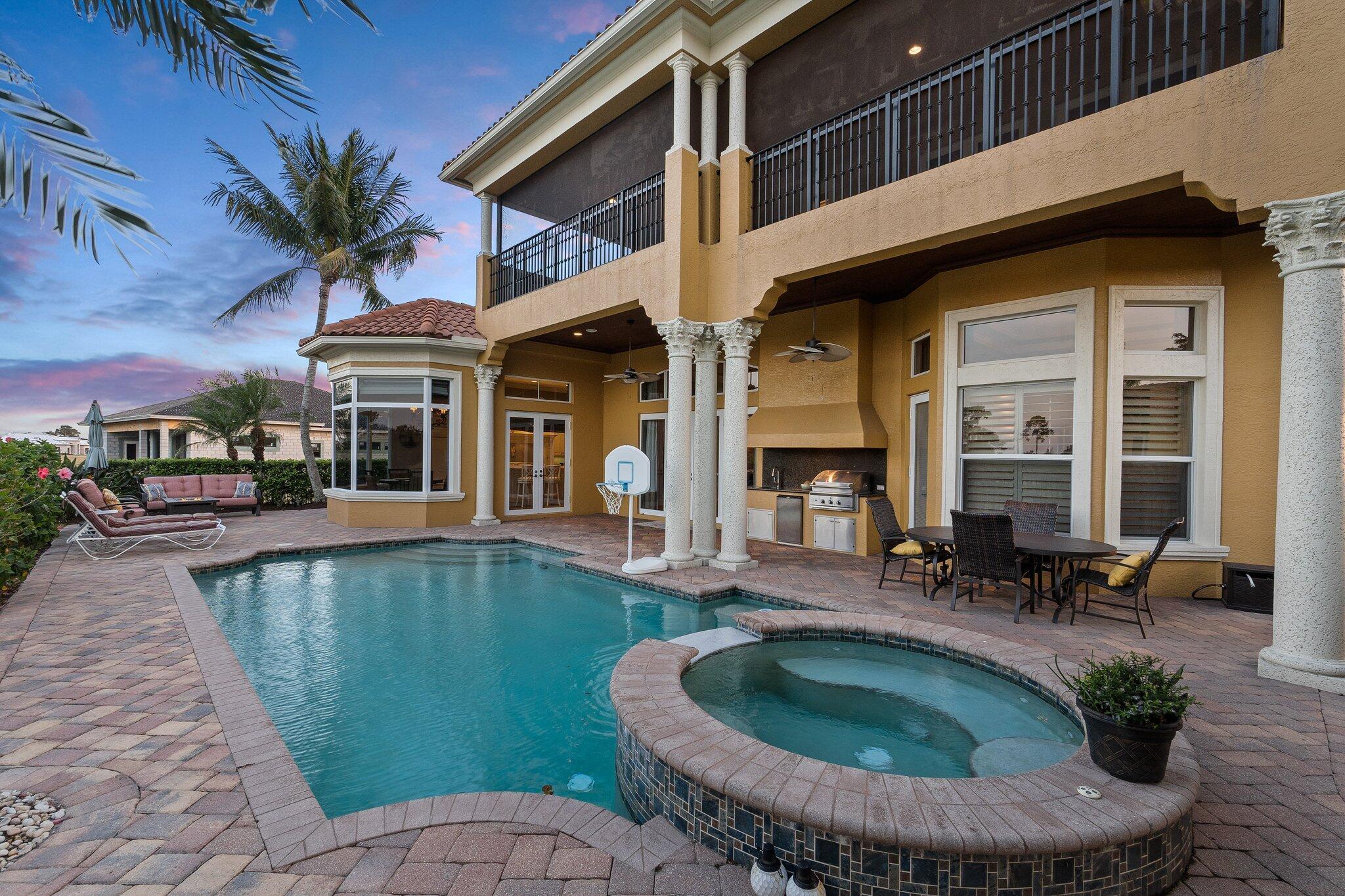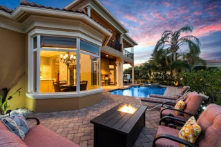 Your Luxurious Estate awaits within the Exclusive Golf Community of Tesoro. Beyond the Gates, lies a World of Resort-Style Living, where every day feels like a vacation. Each Home features a landscape of Natural Wooded Preserves, Lush Wetlands or Golf Course view. This Exquisite Mediterranean Home, will greet you w/ grandeur detail at every turn. As you approach the home, notice the flames of the Gas Carriage & Entry Pendant Light as they dance at dusk. Enter the ornate Imported Double Wood Doors, just beyond them discover the Soaring Coffered Ceilings, Chandeliers, that add a touch of opulence, as the Light glistens from the Hardwood Floors & Marble foyer. Continue to the Formal Living as the Gas Fireplace summons you in for a cozy evening by the hearth.Boasting 4 Bedrooms 4.5 Baths this Home features a Main Level Owner's Suite, Study, Chef's Kitchen, Balcony, Large Patio featuring a Summer Kitchen w/ Heated Pool & Spa. With nearly 5,000 Sq ft of Luxury living space, this home offers the perfect blend of elegance and comfort. Whether you're hosting extravagant soirées or simply enjoying a quiet evening at home, every moment in this exquisite estate is sure to be unforgettable. As you ascend the staircase to the upper level, you'll discover a loft space perfect for a Gaming Area, Playroom or in Home Gym. Step out onto the balcony and behold stunning sunrises & views of the Palmer Course's 3rd hole, a vista that will leave you breathless with its beauty. For the avid sports enthusiast, our community offers an array of amenities, including Bocce, On-Site Restaurant, Tennis, Pickleball, a Fully-Equipped Gym, a refreshing pool & spa. Want to perfect your golf game, utilize the 9,178 sq ft putting green . Speaking of golf, indulge in not just one, but Two Championship Courses designed to challenge and delight players of all skill levels. The Arnold Palmer Course that this home is nestled along is Fully Restored & Operational. Future Plans are underway for the full renovation of the Tom Watson Course. Experience the epitome of refined living in this unparalleled sanctuary where every day is a celebration of life's finest pleasures. Click the Video Tab of the Listing for the Virtual Tour of the Property. Don't Delay, this Property will not Last! Call for Your Private Showing Today.