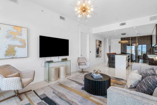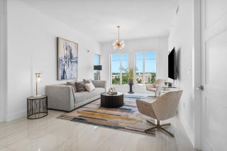 Experience stunning northeast ocean and northwest city views from this bright, beautifully furnished 9th-floor 2-bedroom, 2-bathroom residence in Boca Raton's premier luxury building, Tower 155. Offered turnkey, this home sits just above Mizner Park, offering true walkable living with easy access to restaurants, shops, the beach, and everyday conveniences like the post office and salon. The elegant interior boasts floor-to-ceiling windows, soaring 10-foot ceilings, sleek Italian porcelain flooring, high-end custom cabinetry, premium appliances, a wine fridge, and an open-concept kitchen and living area.