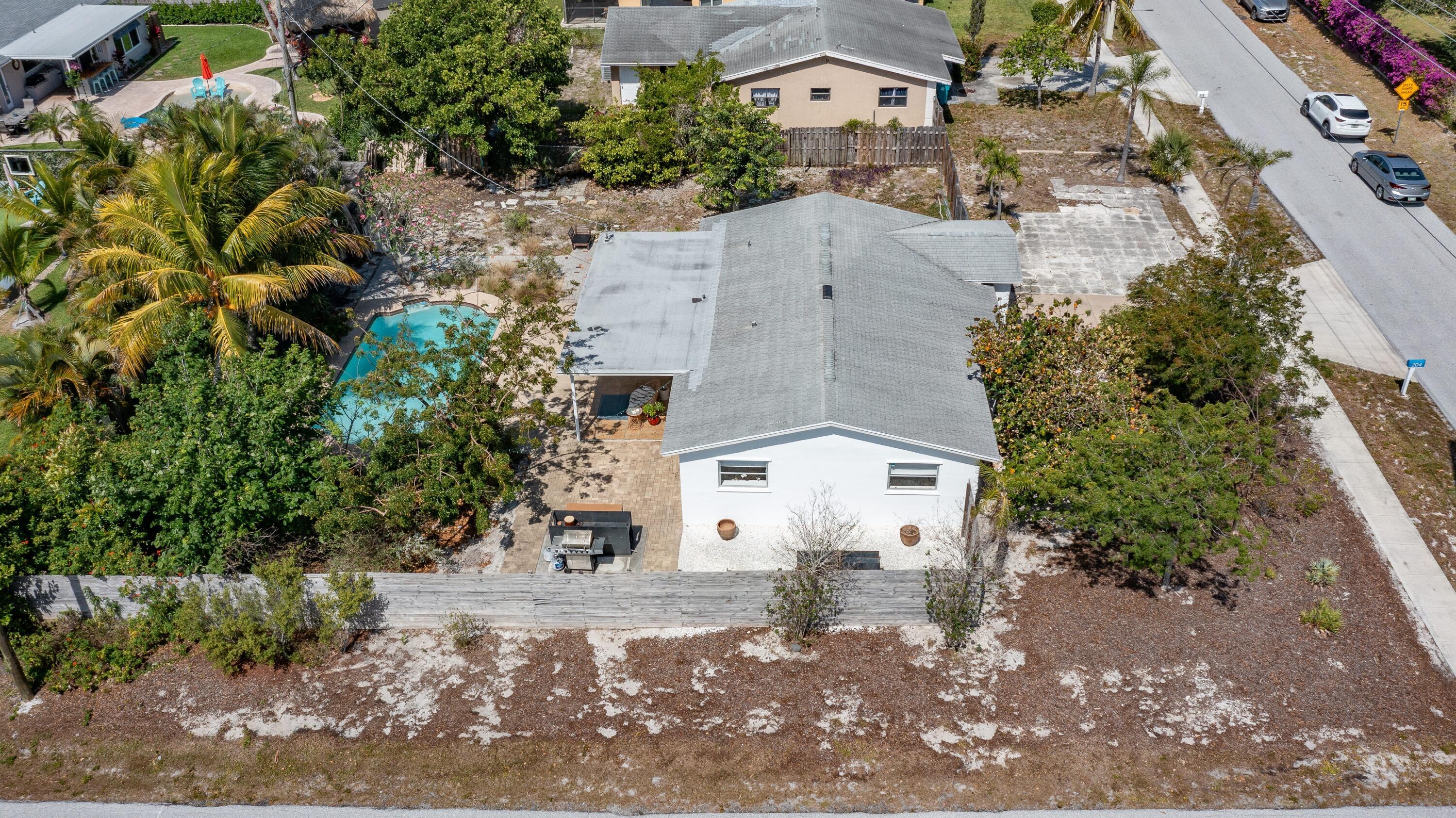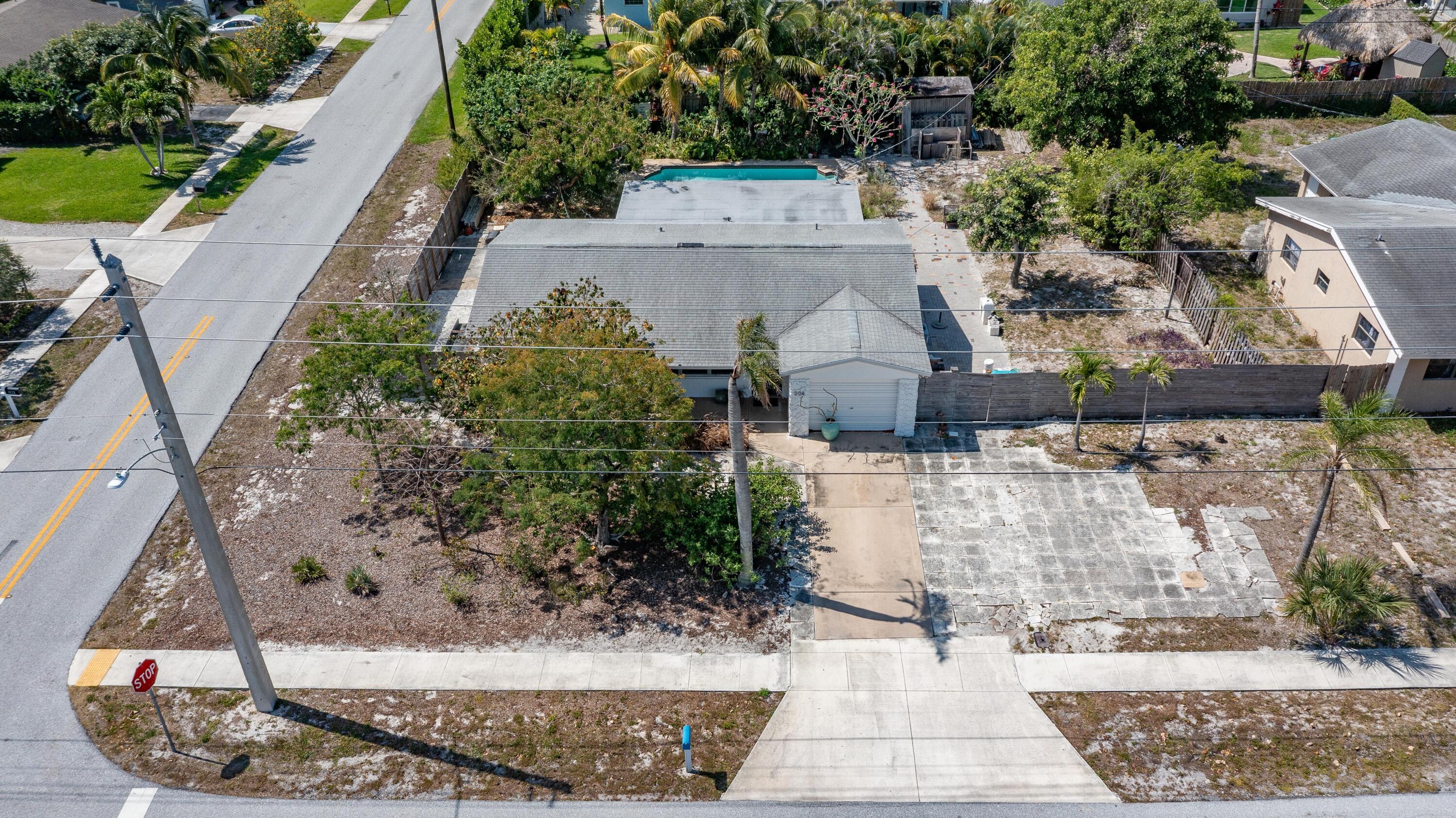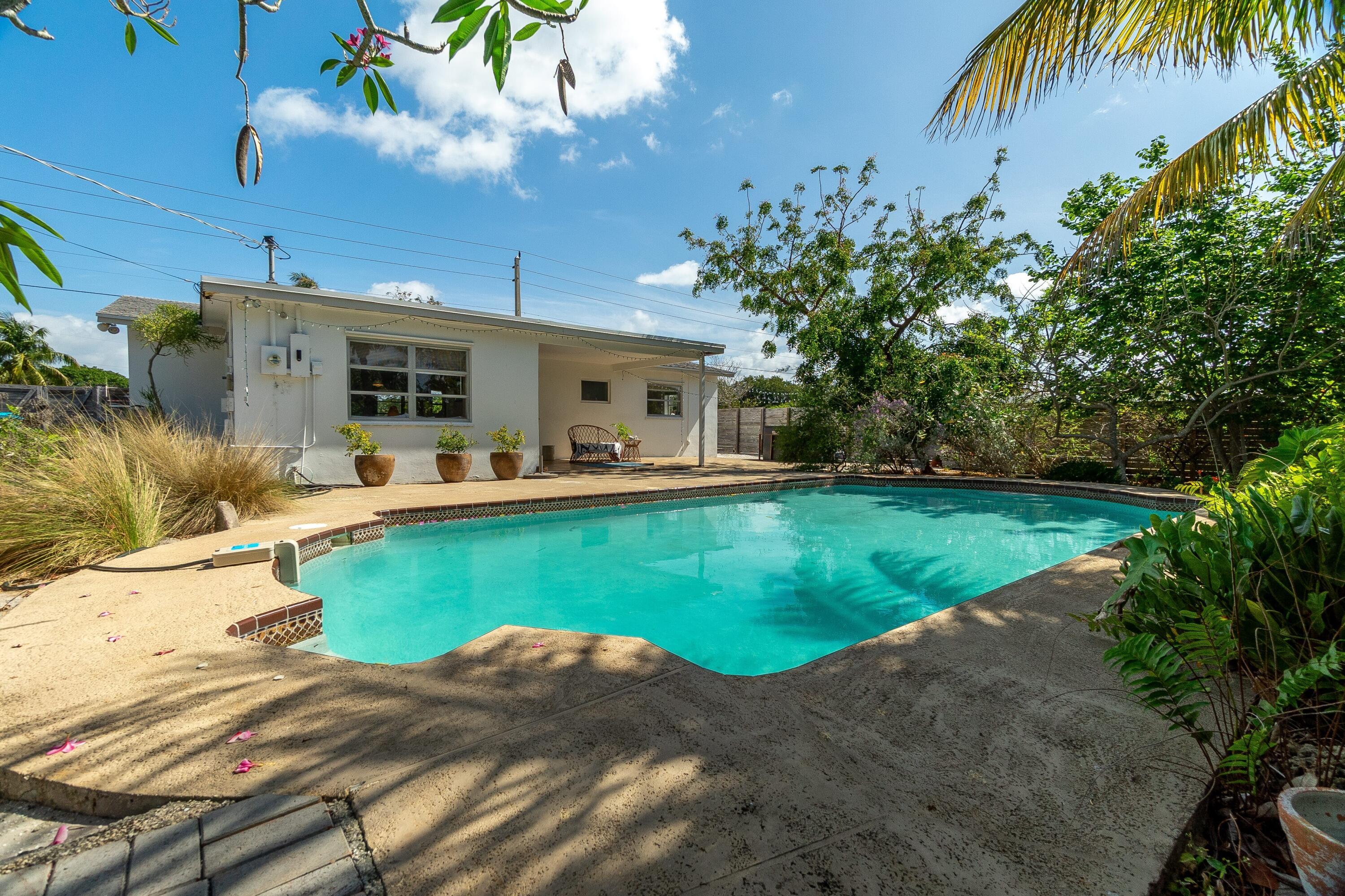 Double Corner Lot with planning and zoning abilities to build out in Downtown Boynton! Wonderful 1-story Pool Home with 2 Bedrooms plus Den, 1.5 Baths and 1-car Garage in a No HOA neighborhood close to Marina and beautiful beaches! Easy I-95 Access for commuters, Tri-Rail station 3.1 mi. and Palm Beach Int'l Airport just 14.3 mi. away from home. Walk/Jog/Bike 1.3 miles to the nearest Beach Access! Updated kitchen and bathroom vanity. Tile & Wood flooring makes it easy to maintain. Relax under the covered patio overlooking the peaceful tropical pool and your Native Florida Yard. This type of yard conserves water and provides habitats for wildlife & pollinators. Inside Laundry room with half bath/shower. Ample parking for vehicles, Boat/RV or other toys in addition to large fenced yard