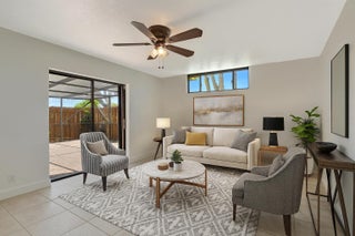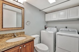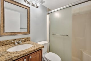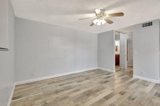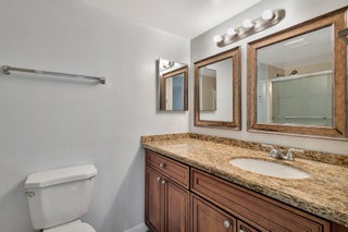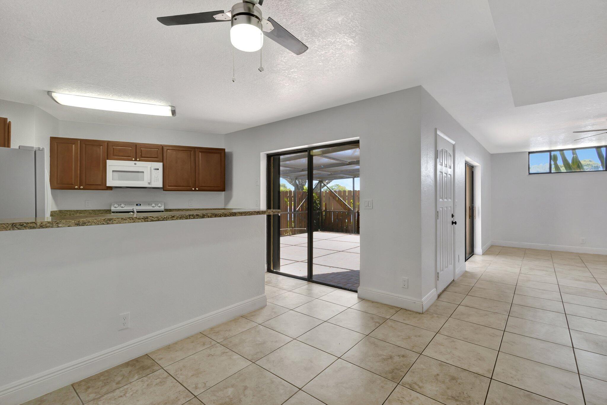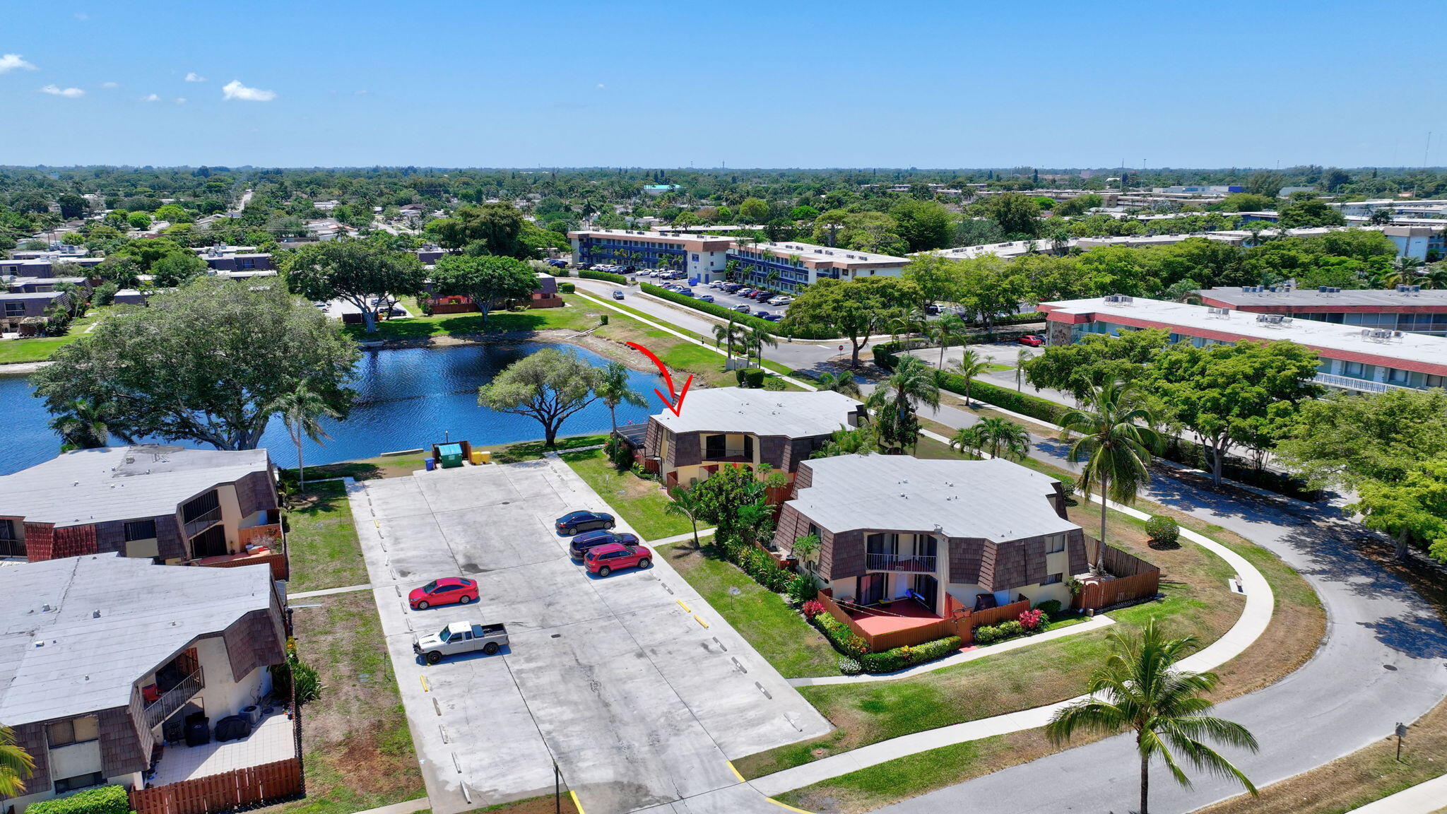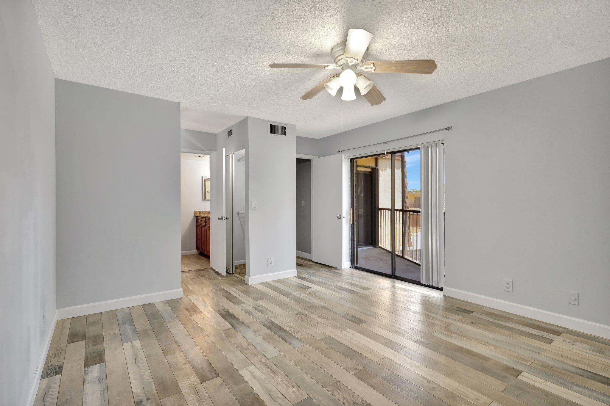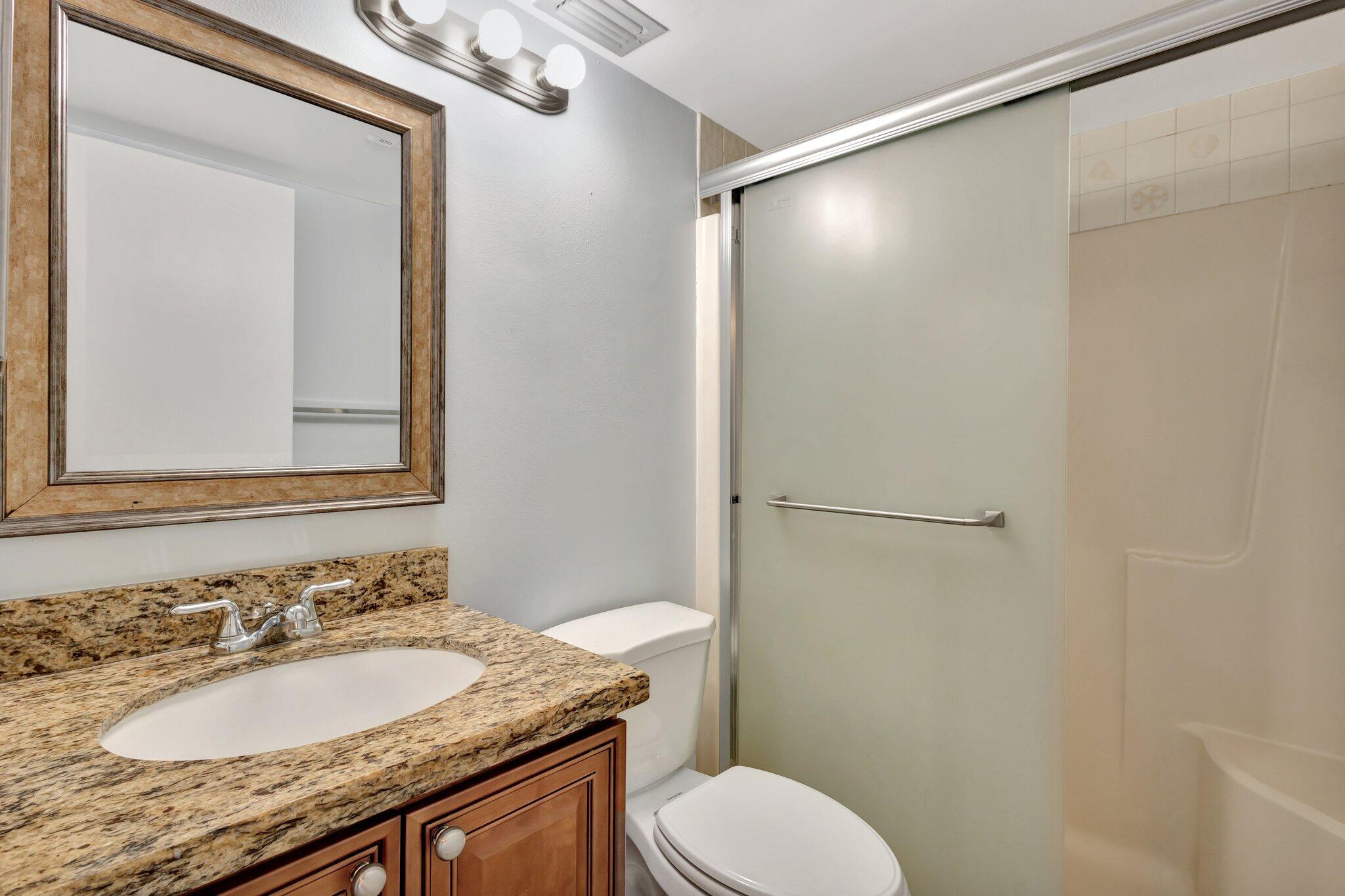 Move-in ready townhouse with 2 master suites upstairs, each with private balconies and beautiful lake views. Downstairs offers an open floor plan with large tile flooring, newly painted walls, and new carpet on the stairs. Modern wood-look laminate flooring upstairs. Kitchen features wood cabinets, granite countertops, breakfast bar, and newer appliances. New dishwasher and refrigerator. Half bath w/washer/dryer. Sliders off the kitchen and living room lead to a fully fenced, screened private courtyard w/ brick patio is perfect for outdoor dining and entertaining. Accordion shutters, 2 assigned parking spaces, and pet-friendly (1 dog or 1 cat). Community includes a new gym, pool, tennis, pickleball, and clubhouse. Great location! New roof in 2022! Move in ready and waiting for new owners.