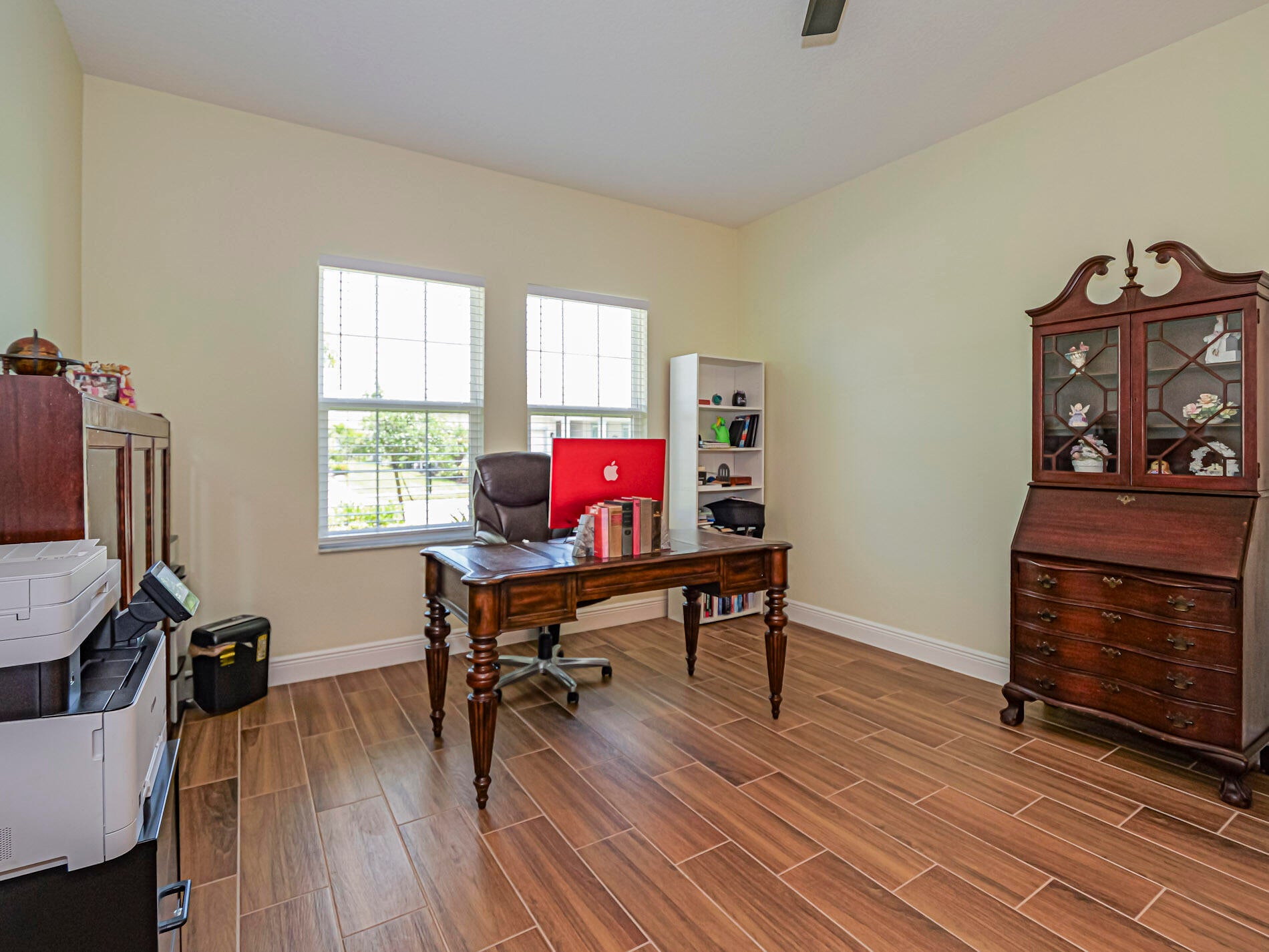 Come see this beautiful Marquesas model located in the most prestigious 55+ community in Vero Beach. This wonderful 3/2 with a large den home features all impact windows, chef's kitchen with a large island, water softener system, great room, extended screened patio with preserve views, wood like plank tile throughout the house, luxurious primary bath, natural gas, extended garage and so much more. Resort style clubhouse features fitness center, pool, pickleball, and game rooms. Low HOA includes all lawn care. This is Florida living at its best.