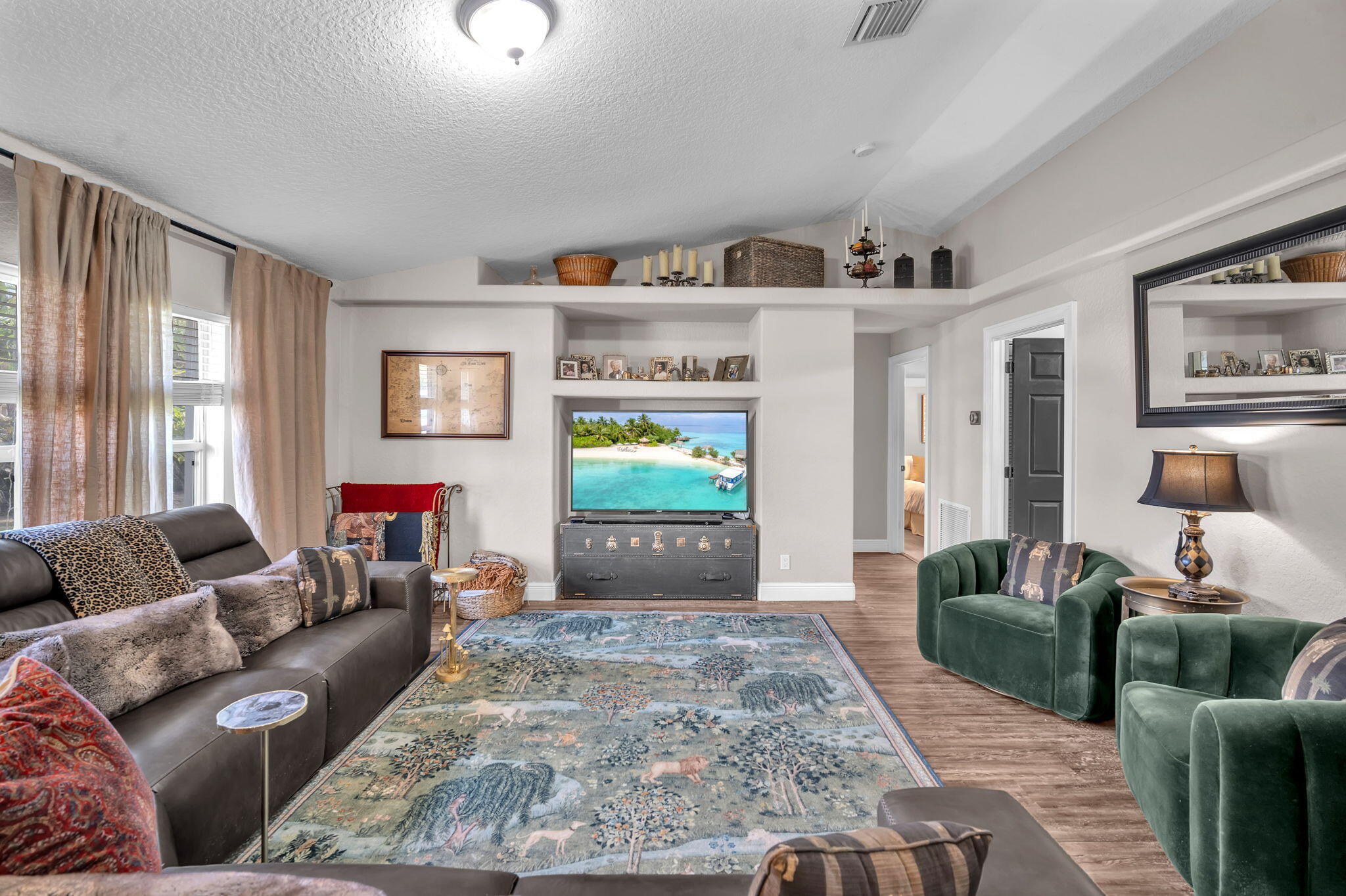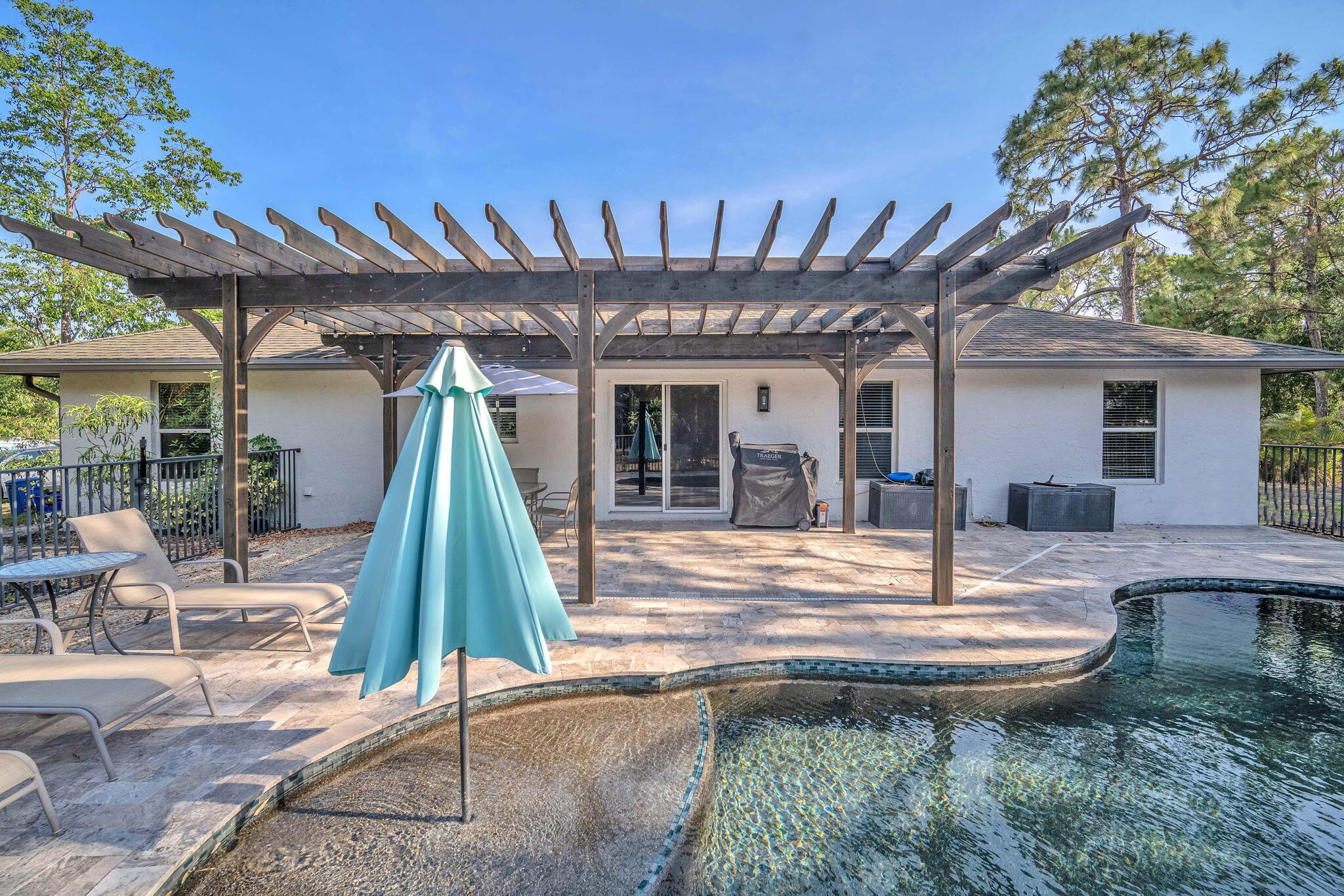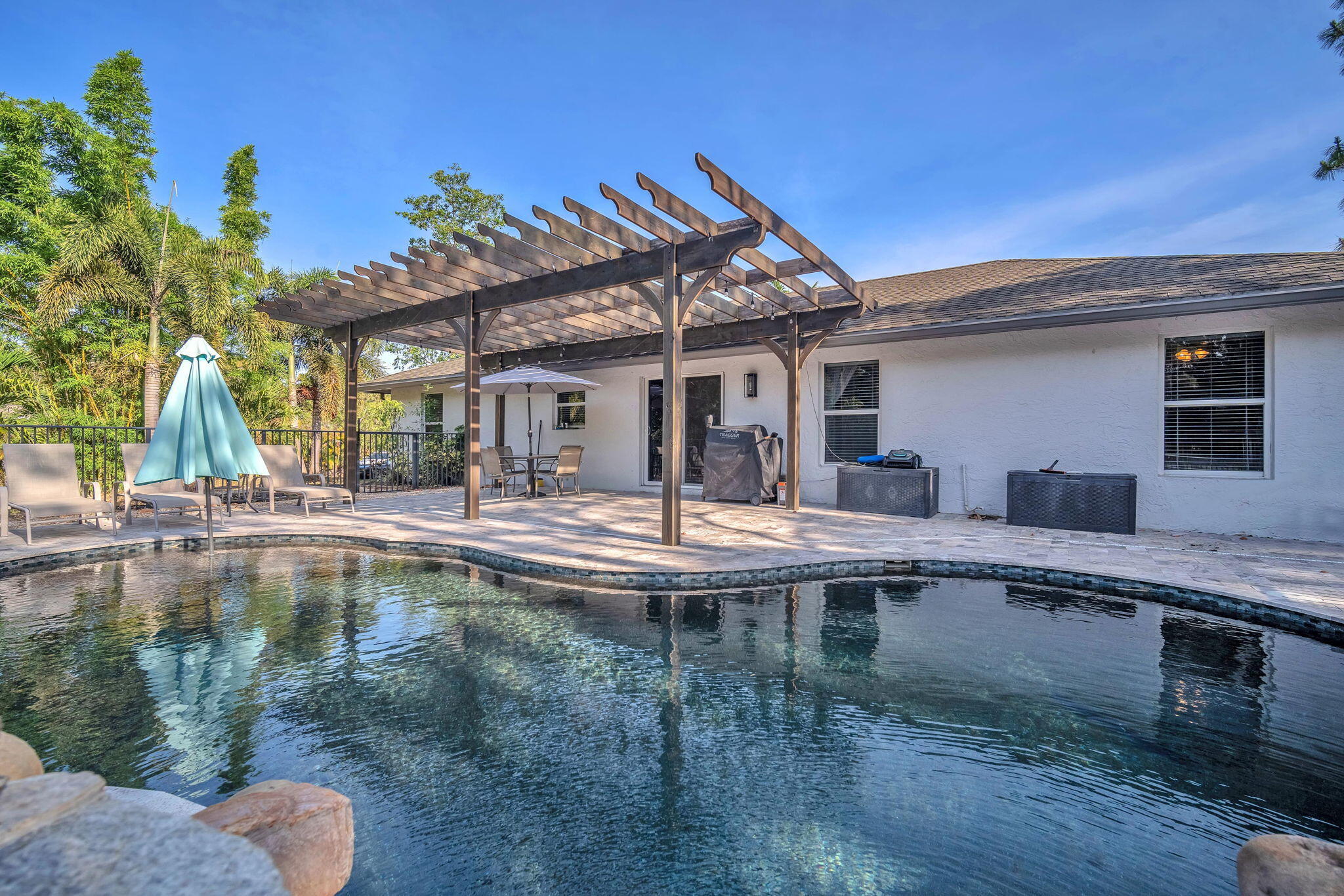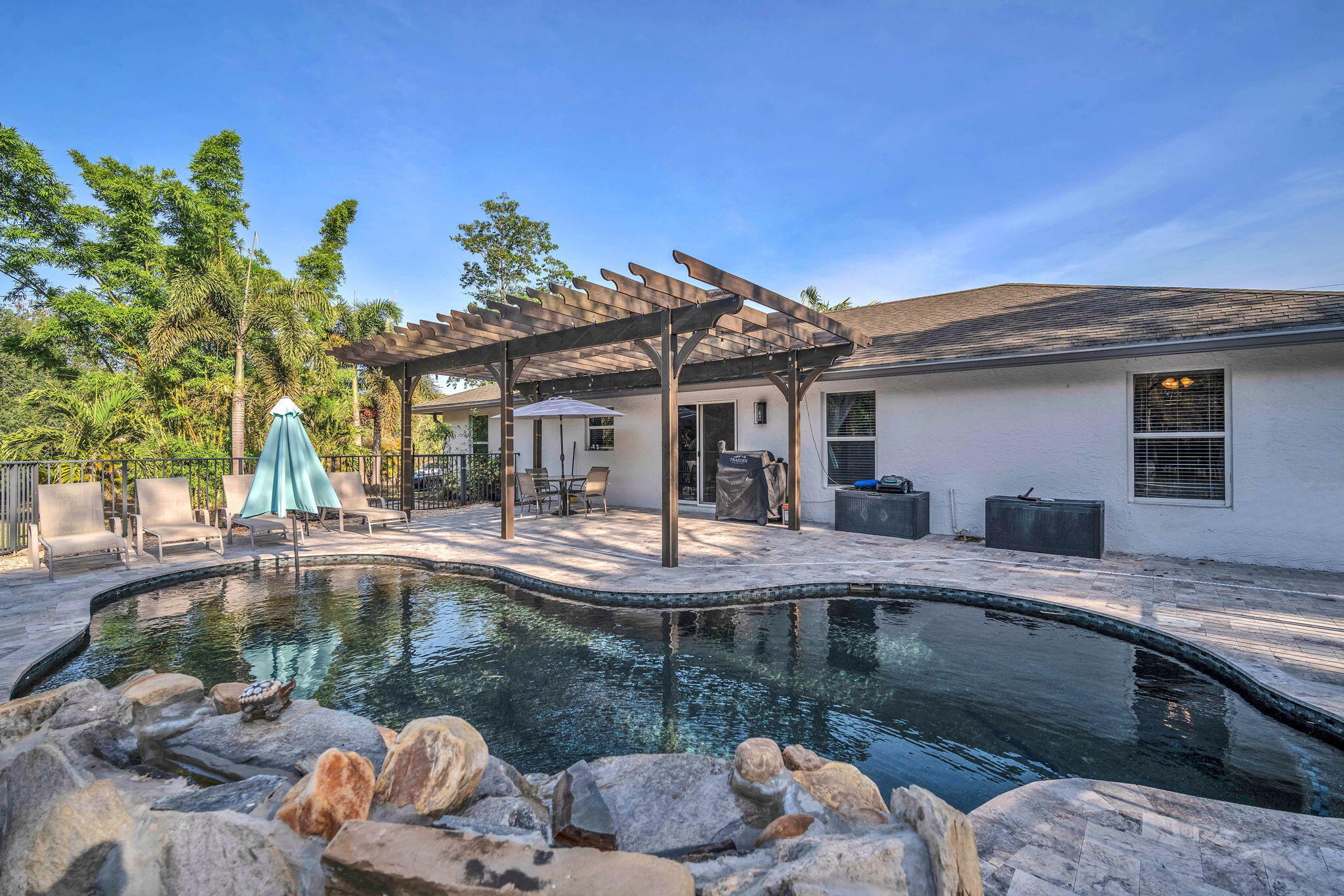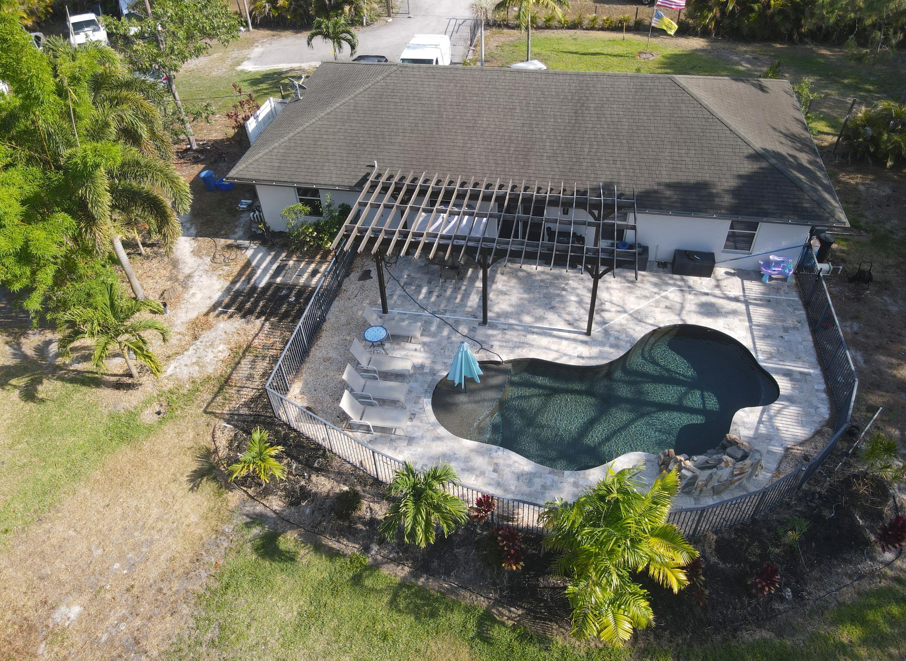Welcome to your Loxahatchee oasis! Well-kept 4BR/2BA plus bonus room on 1.29 acres with low maintenance and insurance costs. Enjoy a new saltwater pool with waterfall, Pebble Tec finish, sun deck, travertine patio, and pergola overlooking the fenced yard. Updates include water heater, 5-yr AC, new driveway, gutters, powered shed, and partial impact protection. Lease to owned 10% down at $5,500/mo! ''Seller has reduced the price to their rock-bottom number and is motivated to sell, aiming to close within 30 days.'' front and sliding door. The water system has been upgraded to a peroxide-based setup, and the irrigation system is now controlled remotely with a wireless rain sensor. Inside, the kitchen features wood cabinets, granite countertops, and brand-new Samsung appliances. There's waterproof vinyl flooring in the kitchen and main living areas, carpet in the bedrooms, and updated bathrooms with granite-topped vanities and new fixtures. With fresh paint inside and out, this home is ready to move in and enjoy.
