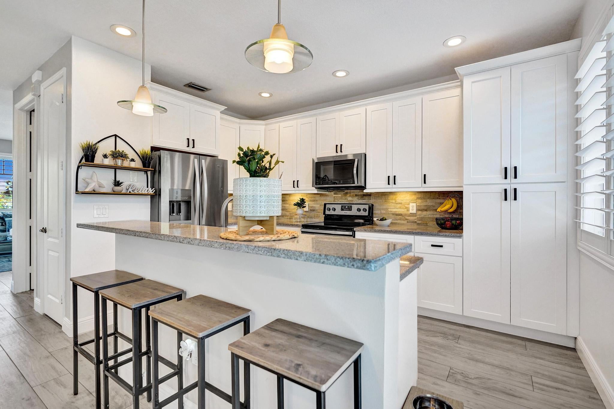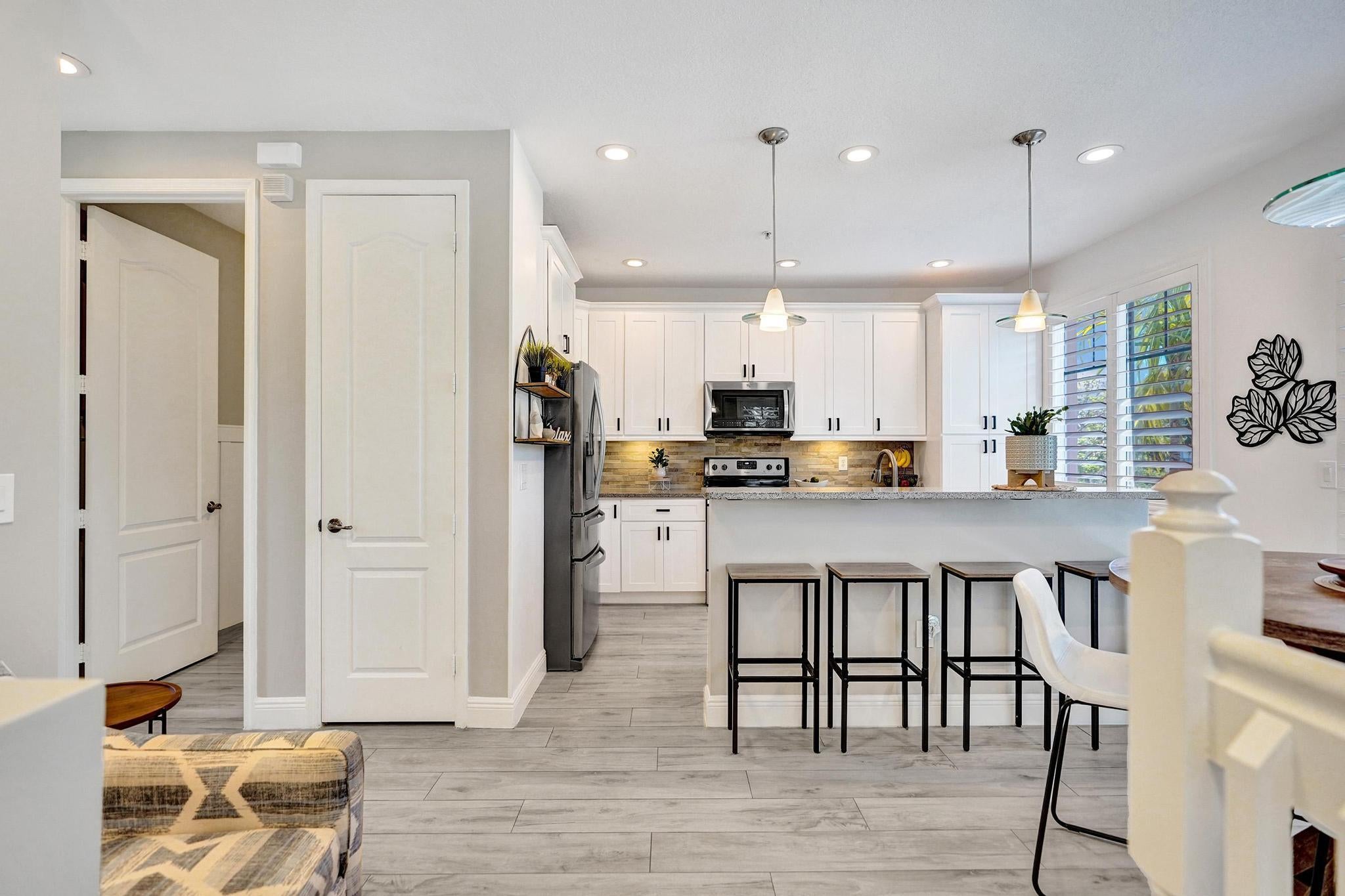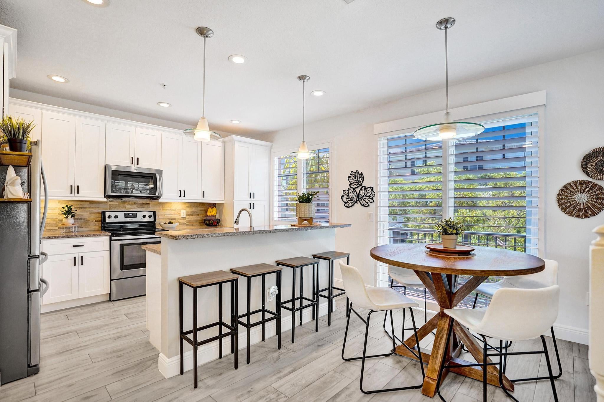 One-of-a-kind stunning Tri-Level remodeled Townhome, 3-bedroom 3.5 bath 2 car garage corner unit located in one of the most desirable communities in East Boca Raton, 1.25 miles to the beach and 3.1 miles to Mizner Park, downtown Boca Raton. Walking distance to FAU and LYNN University. Property features extra windows with lots of natural lighting, Townhome offers newer gourmet kitchen with granite countertops, newer stainless-steel appliances and beautiful wood cabinetry, gorgeous new flooring throughout, all remodeled bathrooms, newer A/C and W/H! Owner who has kept this home in excellent condition with a Gorgeous view of the pond and the pool area. Private walkway to your front door with gorgeous, lush landscaping all around!Community offers two heated pools and spa just recently renovated, Fitness center area with new equipment, two peloton bikes, treadmills, elliptical, free weights and Manager on-site. A rated schools! WONT LAST