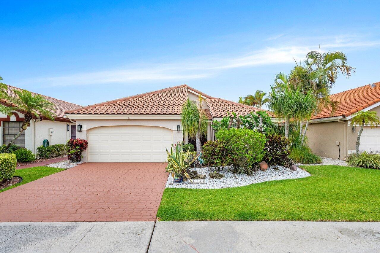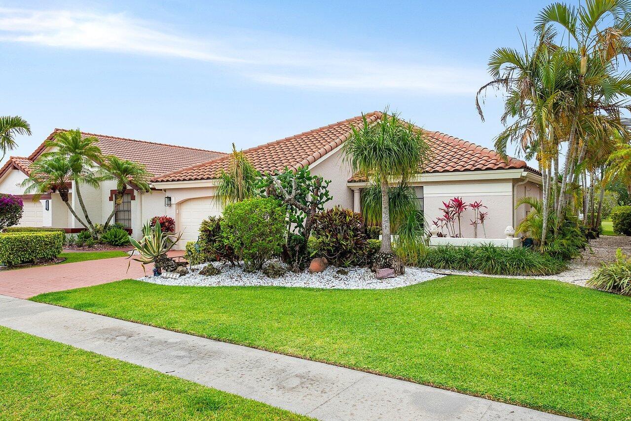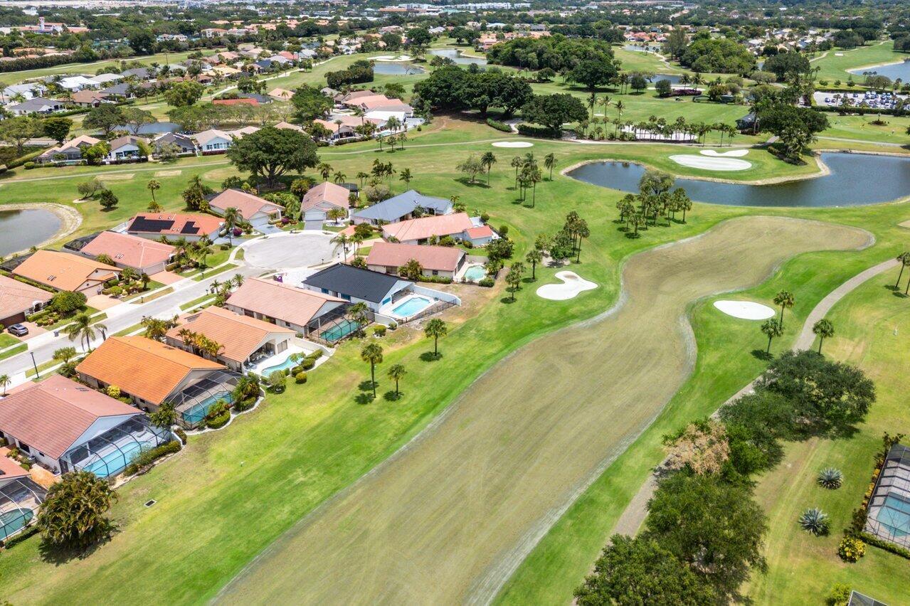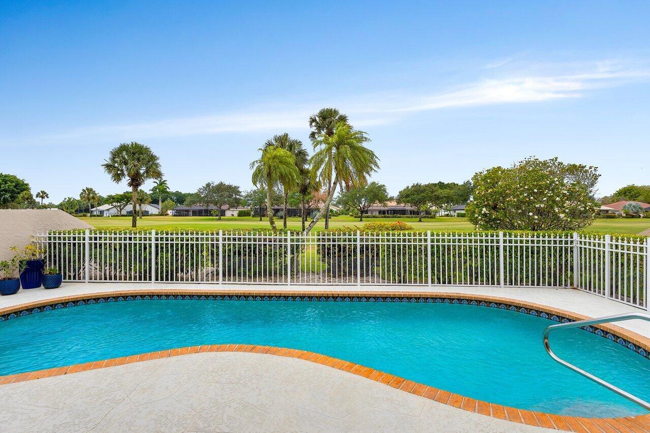 Located in the highly sought-after Boca Woods Country Club, this 3 bed/2 bath home is tucked away on a quiet cul-de-sac street. One of the few models featuring a unique front entry, this home welcomes you to a spacious split floor plan. Step outside to your private patio and pool, and enjoy peaceful fairway views, a truly serene setting perfect for relaxing or entertaining. Recent upgrades include remodeled bathrooms (2025) hurricane-rated garage door & fresh exterior paint. Boca Woods is an all age Country Club Community which offers resort style amenities, including two championship golf courses, Har Tru tennis courts, pickleball courts, state of the art fitness center, spa, game room, fully renovated clubhouse with fine dining and much more! Mandatory Country Club membership required.