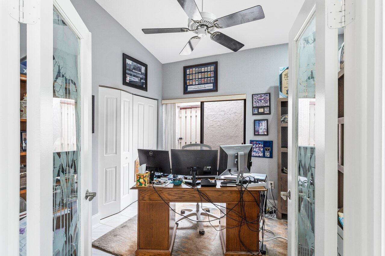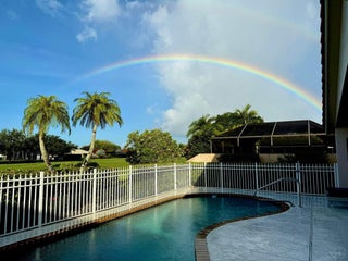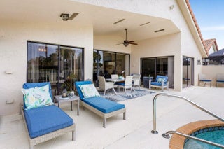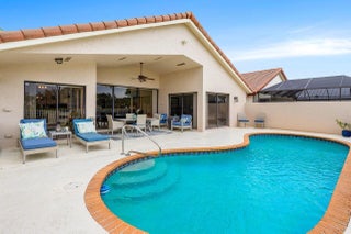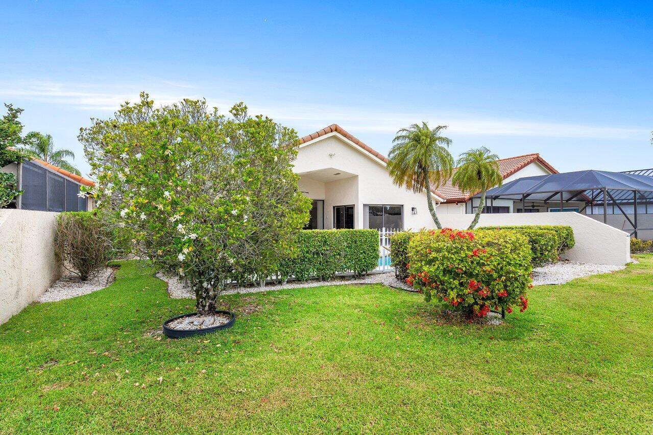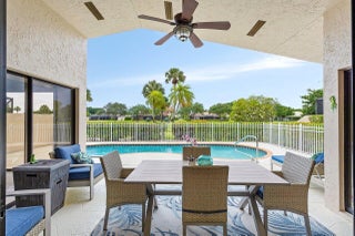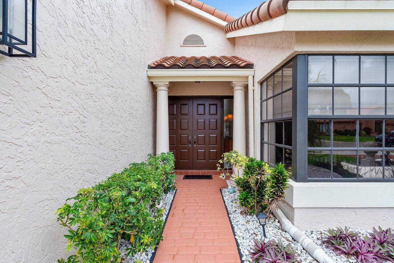 Located in the highly sought-after Boca Woods Country Club, this 3 bed/2 bath home is tucked away on a quiet cul-de-sac street. One of the few models featuring a unique front entry, this home welcomes you to a spacious split floor plan. Step outside to your private patio and pool, and enjoy peaceful fairway views, a truly serene setting perfect for relaxing or entertaining. Recent upgrades include remodeled bathrooms (2025) hurricane-rated garage door & fresh exterior paint. Boca Woods is an all age Country Club Community which offers resort style amenities, including two championship golf courses, Har Tru tennis courts, pickleball courts, state of the art fitness center, spa, game room, fully renovated clubhouse with fine dining and much more! Mandatory Country Club membership required.