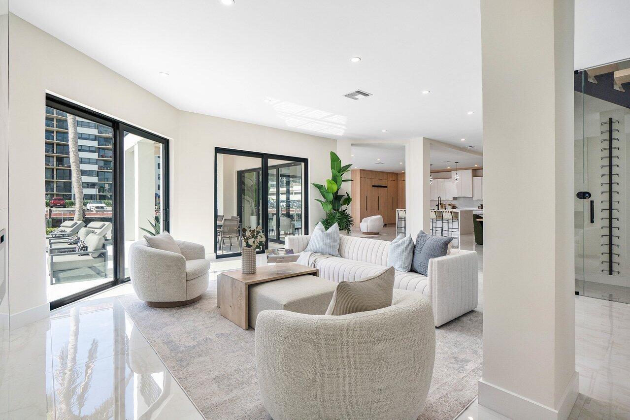 Welcome to this fully renovated waterfront home in East Boca Raton's highly sought-after Boca Keys community. With 90 feet of water frontage and a 40-foot dock just two homes from the Intracoastal, this residence blends modern design with thoughtful, high-end updates throughout. Inside, you'll find a seamless combination of porcelain tile and white oak flooring, a custom floating staircase crafted from white oak with open risers, and a dedicated wine cellar. The home is outfitted with code-compliant PGT hurricane impact windows and doors, ensuring top-tier storm protection. The kitchen has been completely remodeled, featuring premium cabinetry, quartz countertops, top-of-the-line appliances, and a stylish designer backsplash. Step outside to enjoy a rebuilt marble pool deck, a brand-newpaver driveway, and a newly constructed balcony with sleek modern railings, waterproof materials, and upper-level access ideal for soaking in waterfront views. A new roof adds the finishing touch, making this home truly move-in ready. Perfectly positioned just 10 minutes from Mizner Park and 15 minutes from Town Center Mall, this property offers both exceptional convenience and a serene waterfront lifestyle.