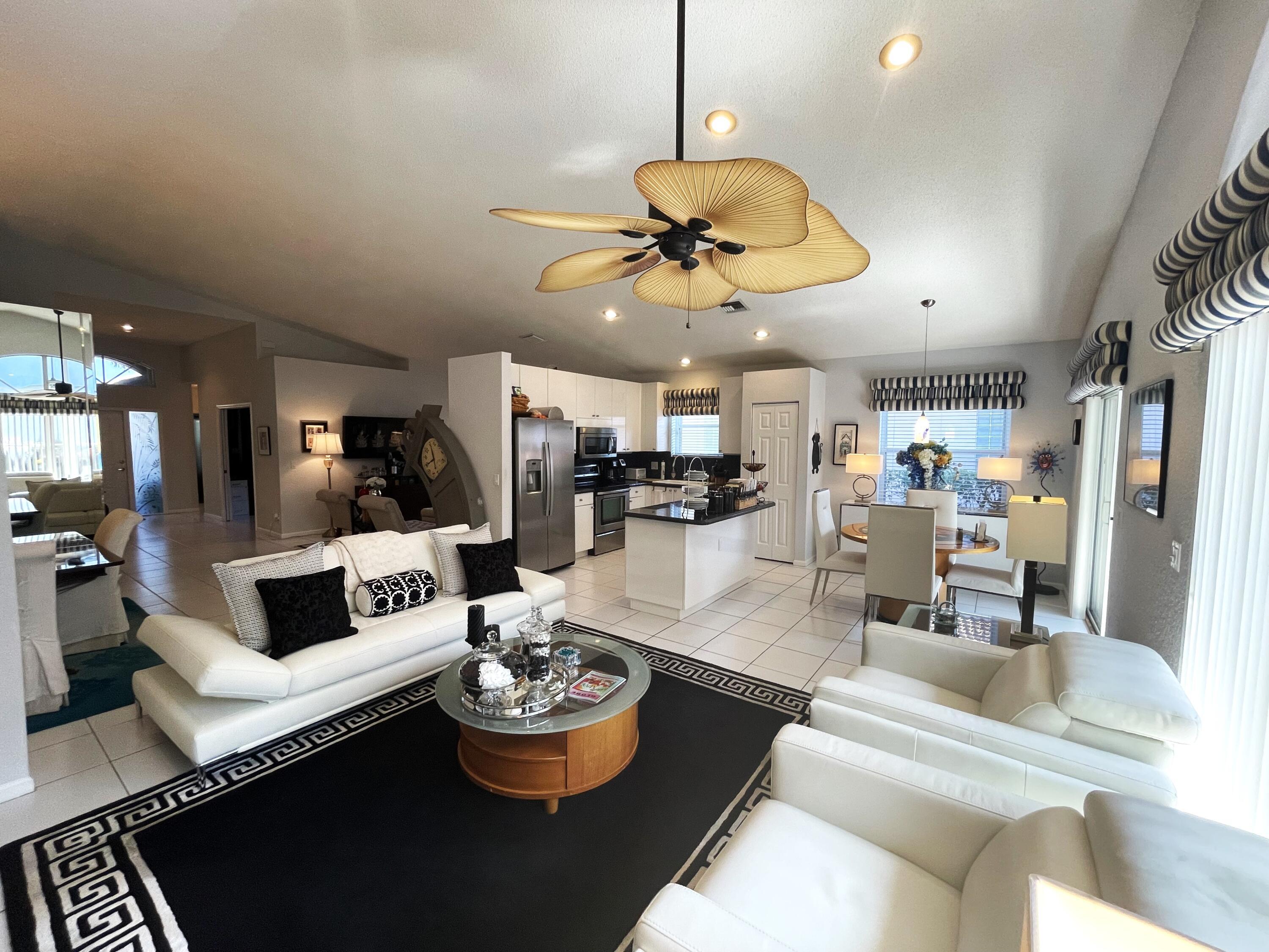 Affordable, Active Living with Resort-Style Amenities! - Warm and inviting 3-Bed, 2-Bath Home in the 55+ Manned Gated Community, The Grove. Welcome to this well-maintained 3-bedroom, 2-bath home on a cul-de-sac in a desirable 55+ manned gated community offering comfort and a vibrant social lifestyle. This residence features a lush front entrance with long driveway, vaulted ceilings, walk-in closet, a formal dining room, granite countertops, pull out drawers, instant hot water, welcoming screened front porch, and a spacious enclosed patio, perfect for relaxing or entertaining. Equipped with accordion shutters and an exterior generator connection, you'll enjoy peace of mind and convenience year-round.Live affordably with low monthly maintenance fees.The lawn care, cable TV, security monitoring, irrigation, and even painting of the outside of the homes are all included in the maintenance fee. Enjoy a wide range of resort-style amenities designed for an active lifestyle: The Grove amenities include: Pickleball & Tennis, Heated Pool, Jacuzzi & Sauna, Putting Green, Bocce, Library, Arts and Crafts, and Billiards. The large Ballroom is used for events and social gatherings. Fun recurring events include the annual show, Franks & Fun, and Bingo. Ideally located near shopping, banks, medical facilities, and major highways, everything you need is within easy reach. Don't miss the opportunity to enjoy move-in-ready convenience and active living in a friendly and welcoming community! Easy to see! A quick closing is available. Some furniture is negotiable.