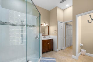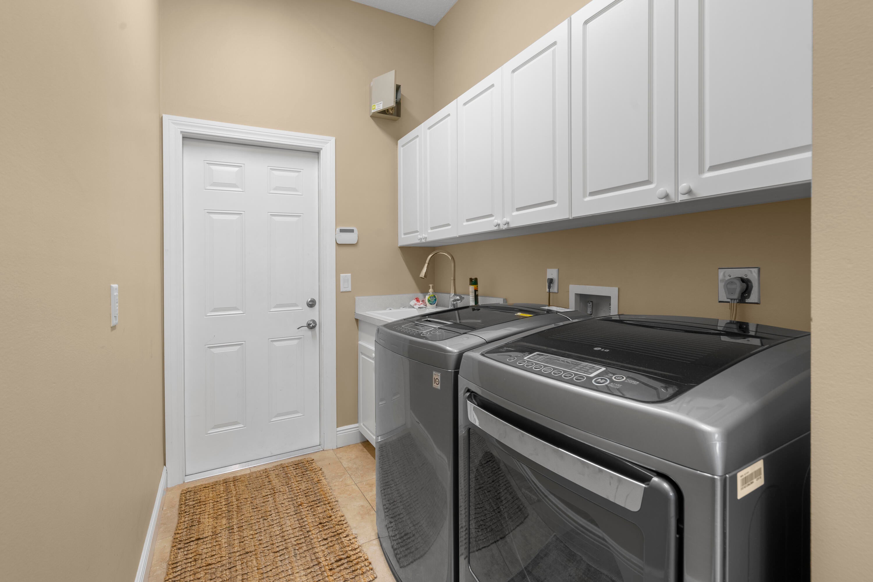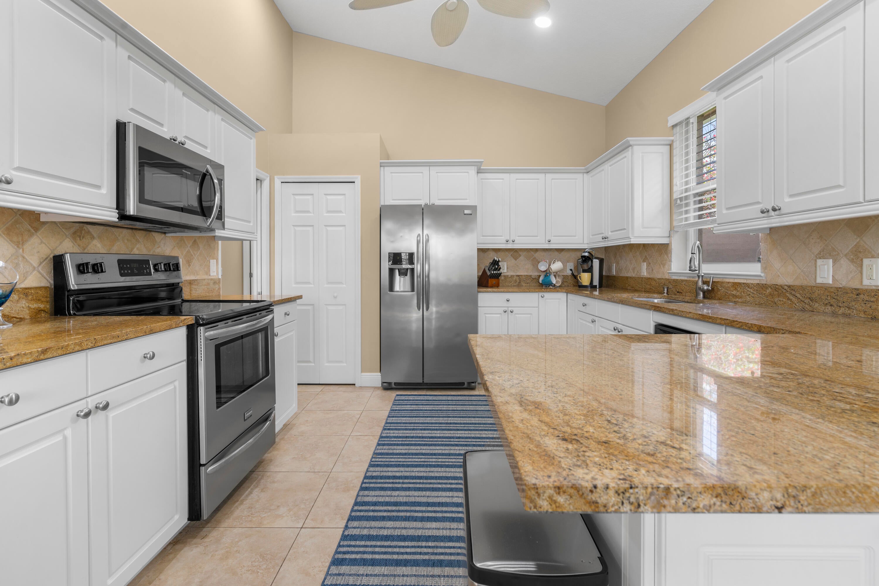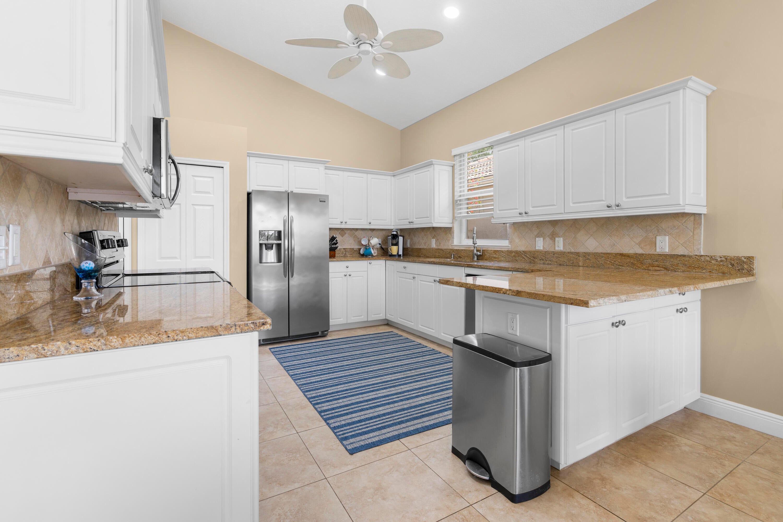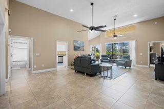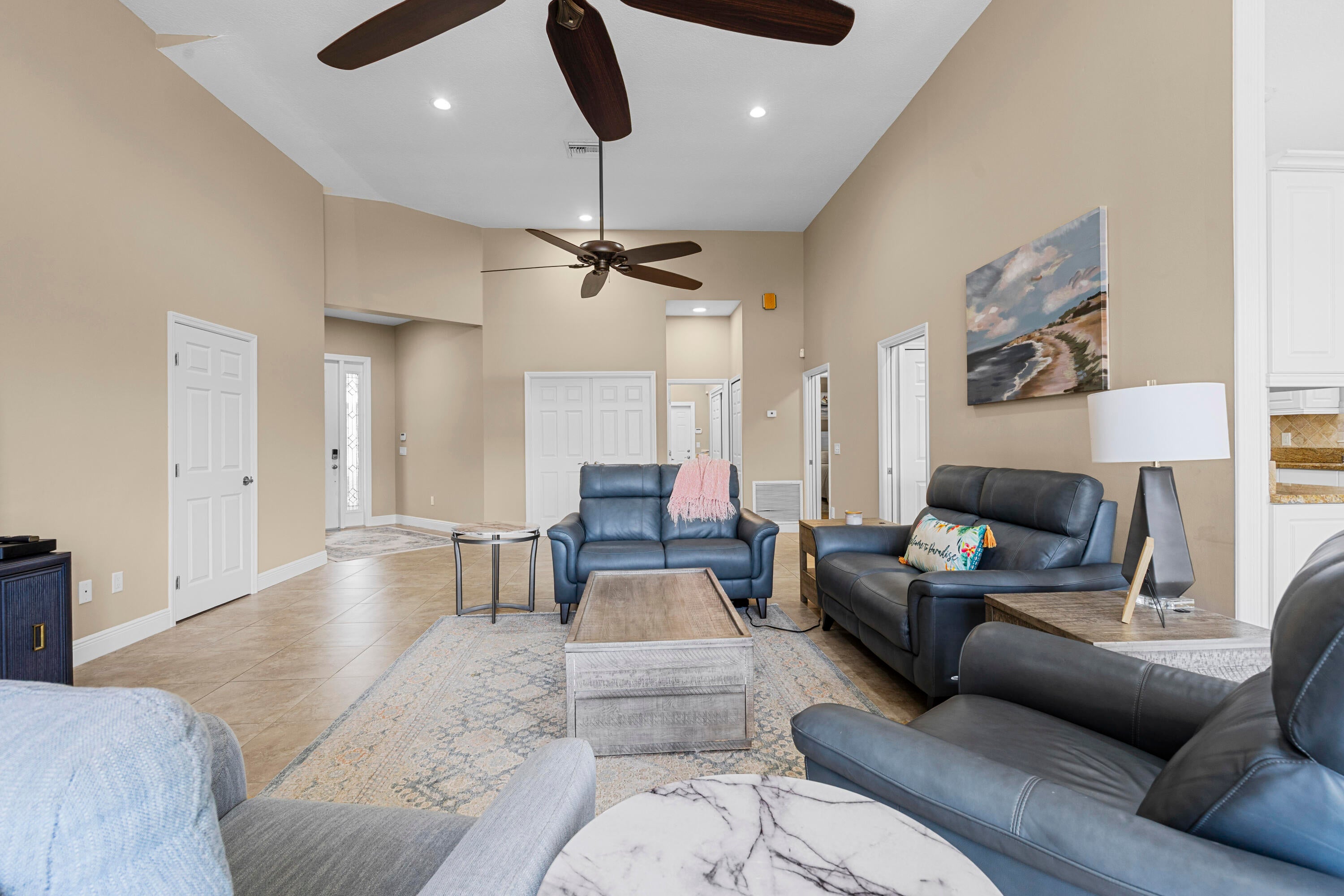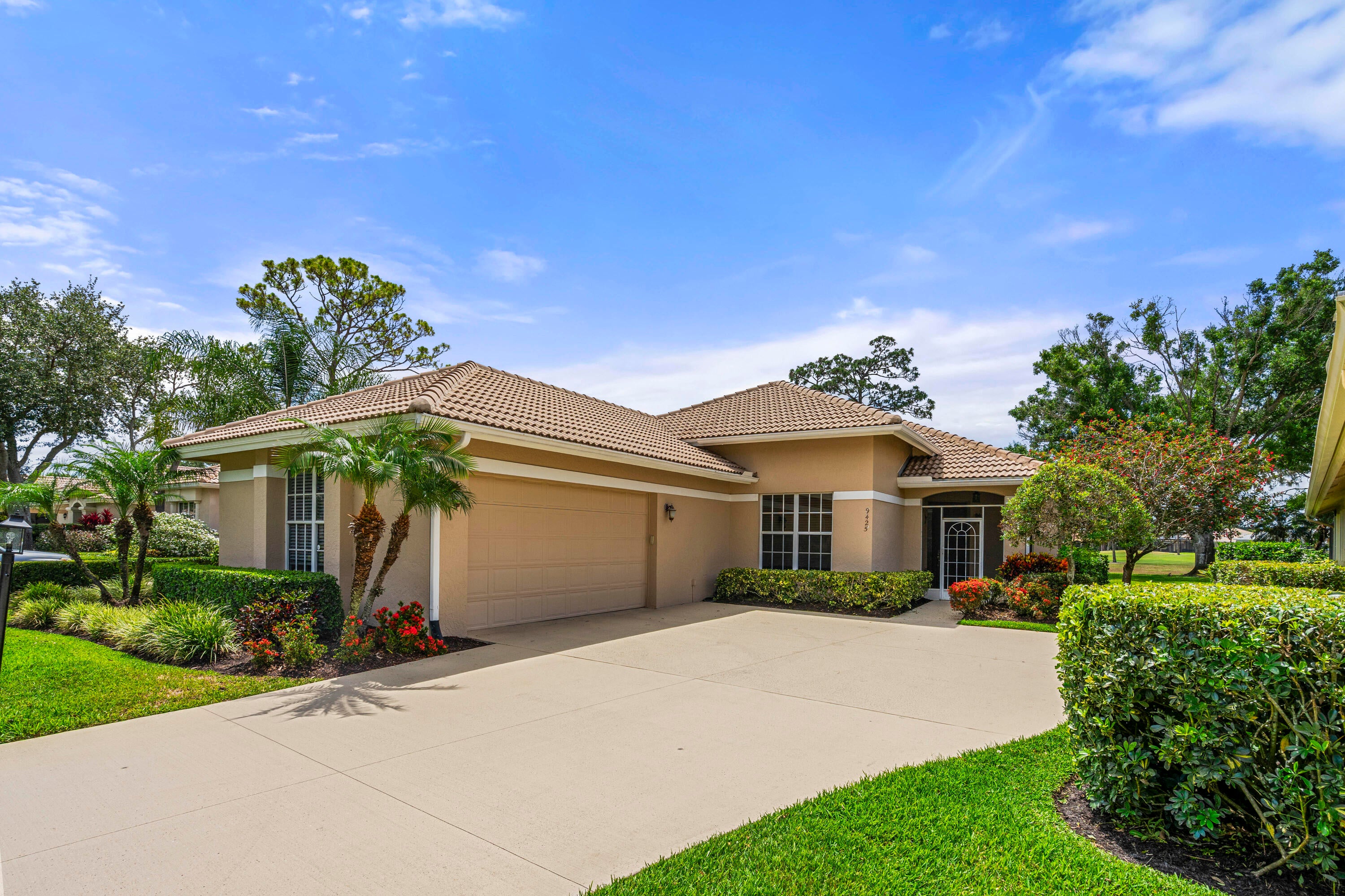BRAND NEW TILE ROOF TO BE INSTALLED!! Spacious 3BR+Den/2BA/2+CG home with GOLF VIEWS and oversized screened patio! This expanded 'Sawgrass' floor plan features many wonderful upgrades including tile flooring t/o, high vaulted ceilings, oversized garage with hobby room, screened front entry, new WH, neutral interior paint, updated lighting & fans, updated bathrooms and more. The kitchen has white cabinetry, granite counters, SS appliances, a dining area and access out to the screened patio. Master bedroom with golf views, access to the patio, dual closets with custom organizers and a serene ensuite with dual vanities, frameless glass shower, soaker tub and water closet. Two additional bedrooms share a hall bathroom and the den could be used as a home office or additional bedroom.The laundry room has storage closets, cabinetry and a utility sink. The oversized garage has a hobby/storage room that could be used as a workshop or just for additional storage. Lounge, dine and relax on the large, screened patio while watching the golfers go by. No direct rear neighbors allow for open golf views. Just a short cart ride from the Legacy Golf & Tennis Club and the PGA Golf Club, both with optional memberships (no mandatory fees!). HOA dues include basic cable, internet, common area maintenance, guarded security and access to the community clubhouse (The Island Club). PGA Village is an amenity rich community with COUNTY ONLY TAXES surrounded by multiple golf courses where membership is optional. Activities at the Island Club include pickleball, tennis, exercise rooms, a resort style pool, billiards, playground, library, card rooms, clubs, ballroom and more. A short drive to Stuart, Jensen Beach, Vero beach, airports, shopping, dining, Mets spring training facility, beaches and more. WONDERFUL OPPORTUNITY TO OWN A HOME WITH A NEW ROOF! Call today to view!