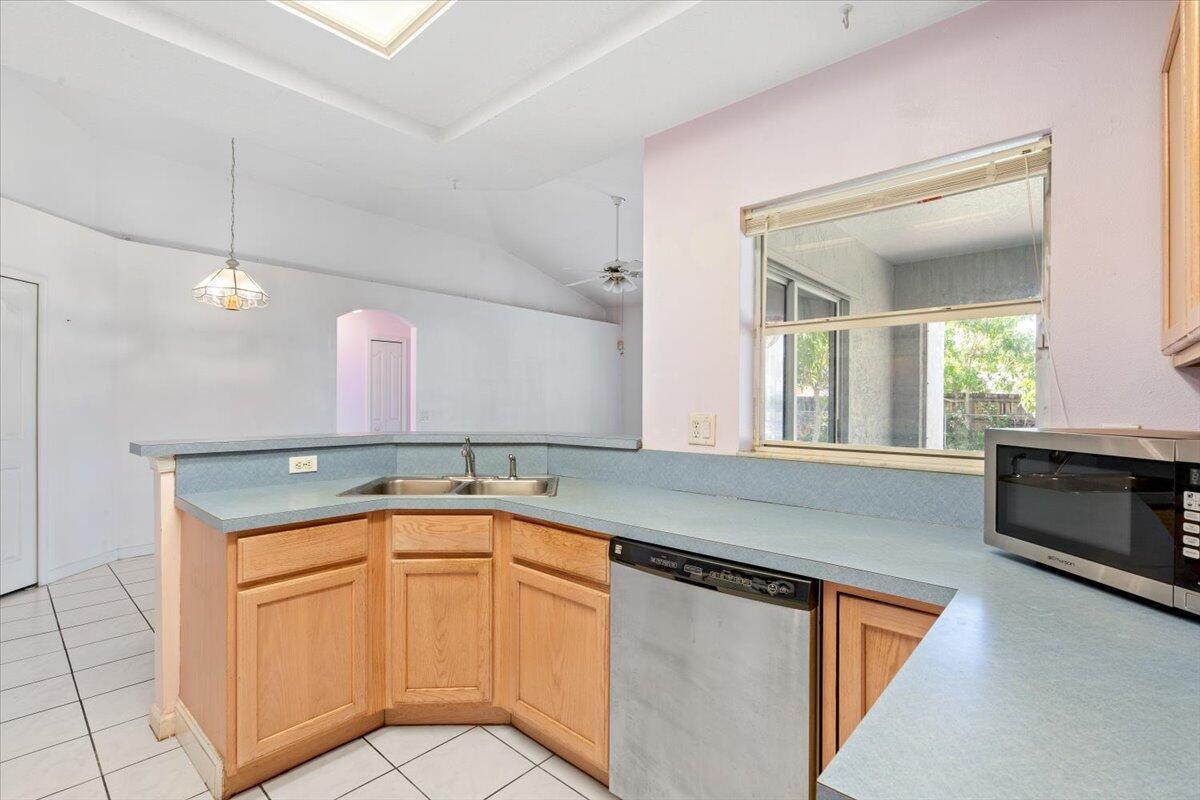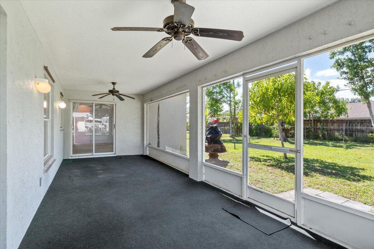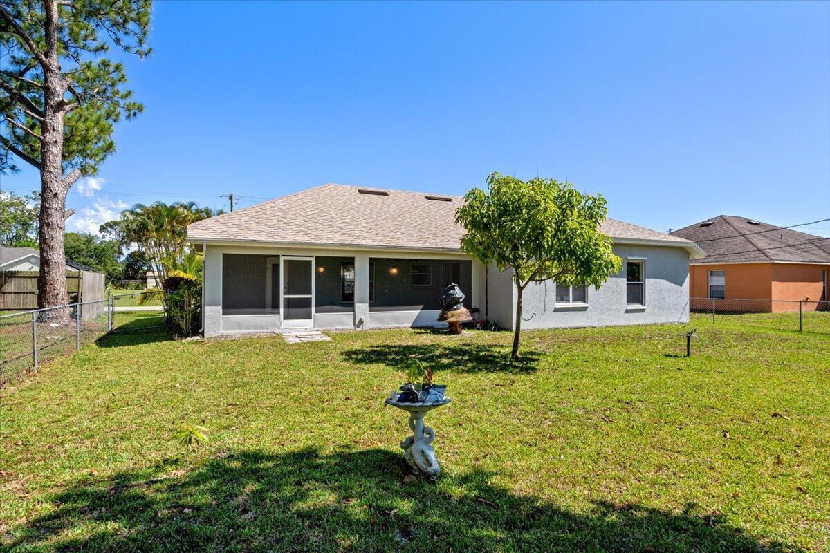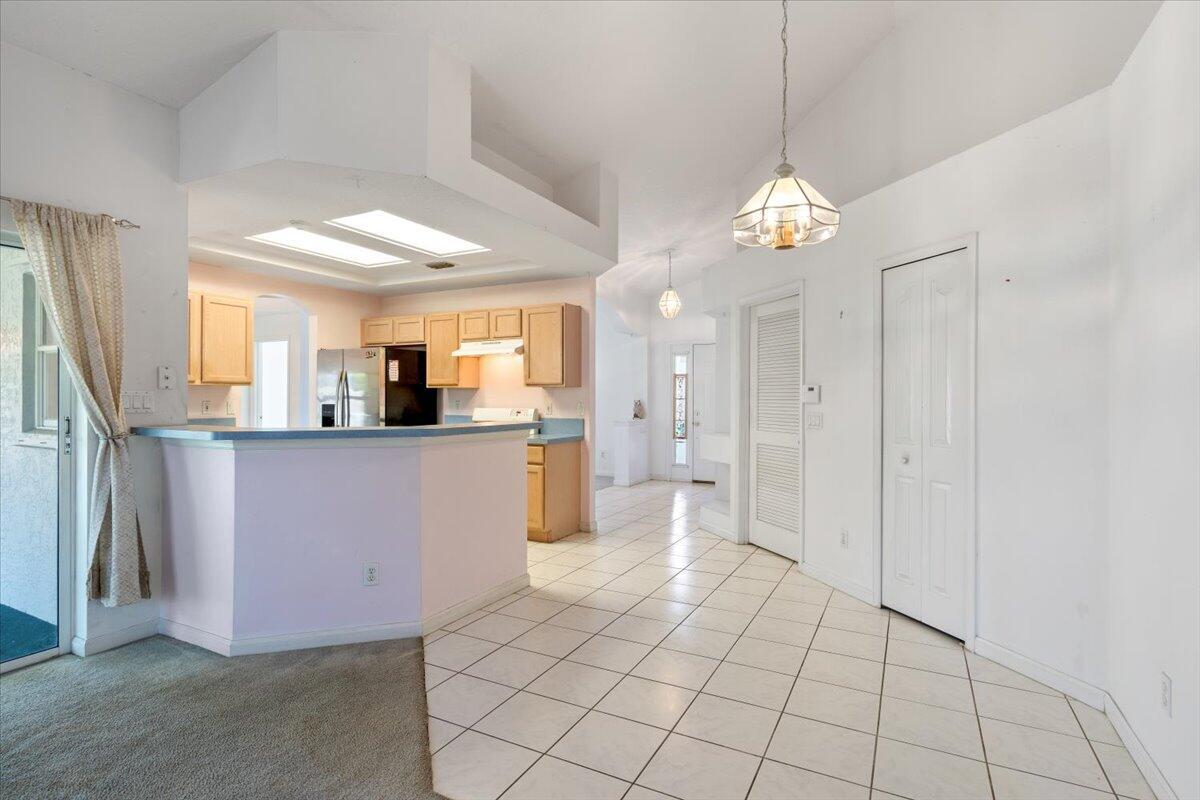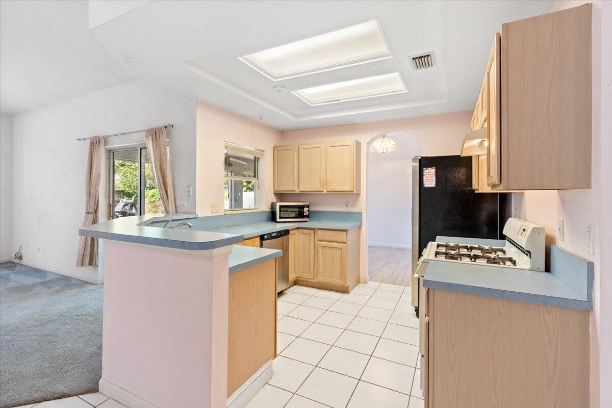 JUST REDUCED $25K! Located in central Port St Lucie, this 3-bedroom, 2-bathroom home is ready and waiting for its next owner to add their personal touch and make it their own. With rising insurance costs, you'll be pleased to know that the roof was replaced in early 2023. The 120 gallon propane tank services the range, water heater, and dryer. Featuring a formal living, den, formal dining area, and eat-in kitchen, there's room for everyone to have their own space. The special details such as plant shelves with outlets, vaulted ceilings, niches for decor, and arched doorways make this home a great canvas for your updates and decor options. Formal living area and primary bedroom have been upgraded with beautiful wood-look plank tiles. Carpet and tile flooring in remaining areas.Step outside onto the oversized covered and screened back patio (27'8" x 9'9") with pass through window from the kitchen. There is a cabana door to the guest bathroom, as well. Fenced back yard to keep your loved ones and furry friends safe. Call and schedule your private showing today!