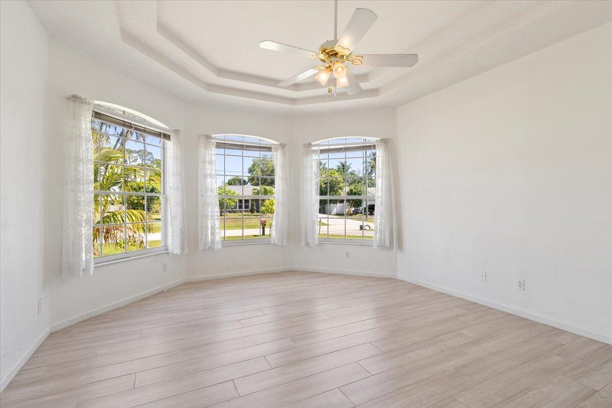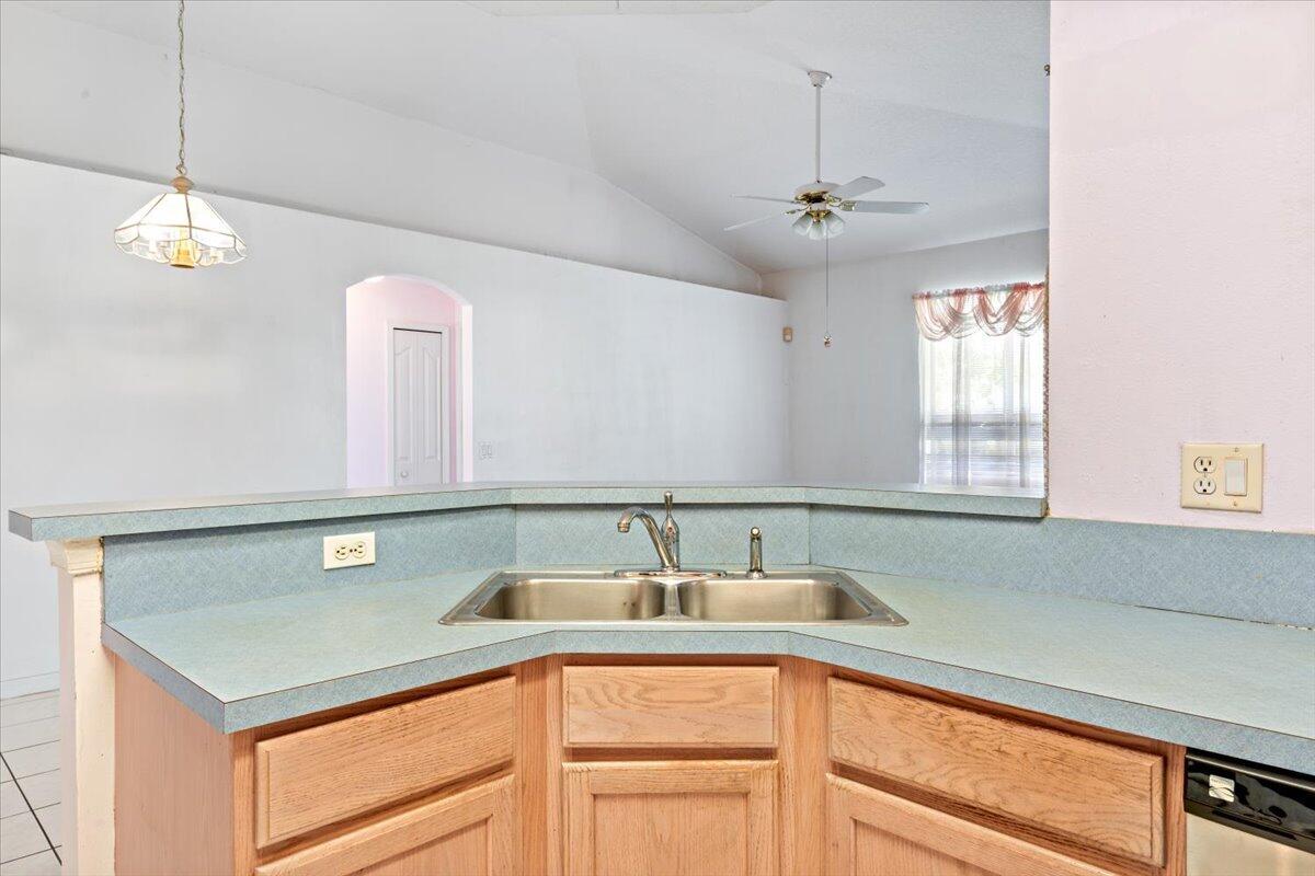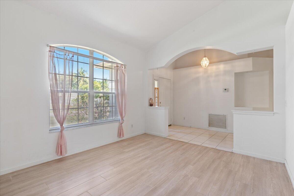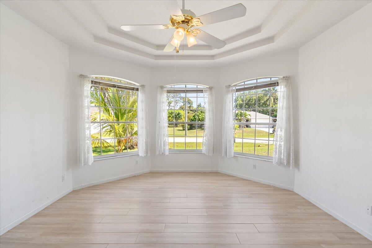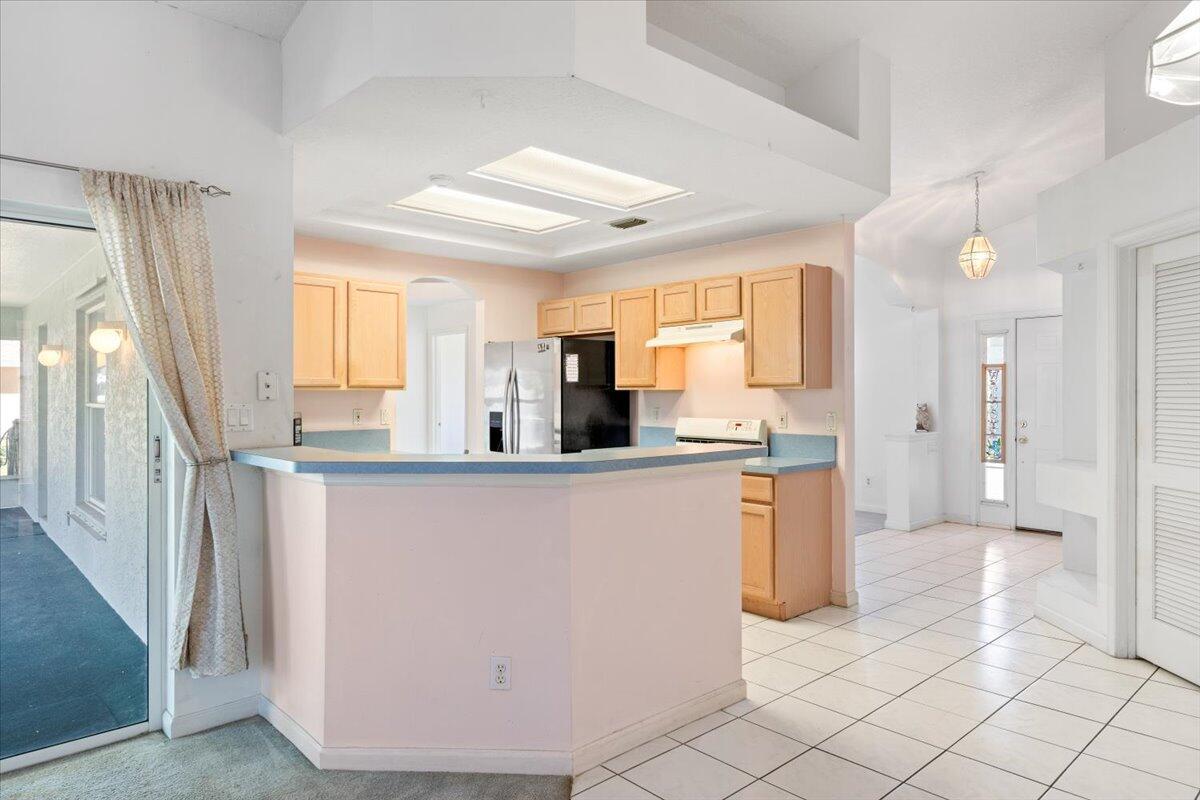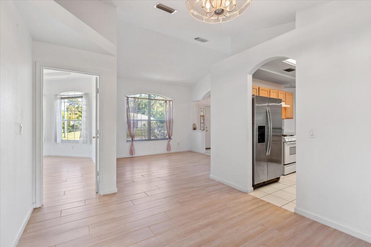 JUST REDUCED $25K! Located in central Port St Lucie, this 3-bedroom, 2-bathroom home is ready and waiting for its next owner to add their personal touch and make it their own. With rising insurance costs, you'll be pleased to know that the roof was replaced in early 2023. The 120 gallon propane tank services the range, water heater, and dryer. Featuring a formal living, den, formal dining area, and eat-in kitchen, there's room for everyone to have their own space. The special details such as plant shelves with outlets, vaulted ceilings, niches for decor, and arched doorways make this home a great canvas for your updates and decor options. Formal living area and primary bedroom have been upgraded with beautiful wood-look plank tiles. Carpet and tile flooring in remaining areas.Step outside onto the oversized covered and screened back patio (27'8" x 9'9") with pass through window from the kitchen. There is a cabana door to the guest bathroom, as well. Fenced back yard to keep your loved ones and furry friends safe. Call and schedule your private showing today!