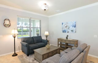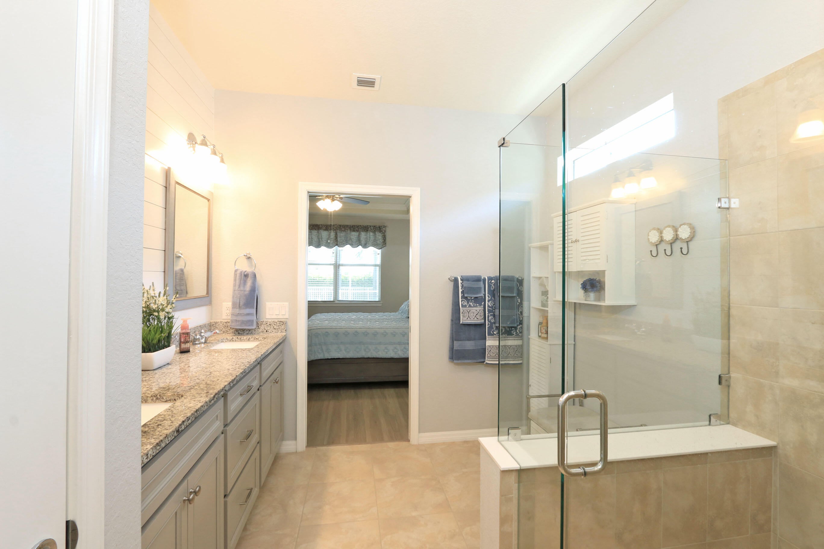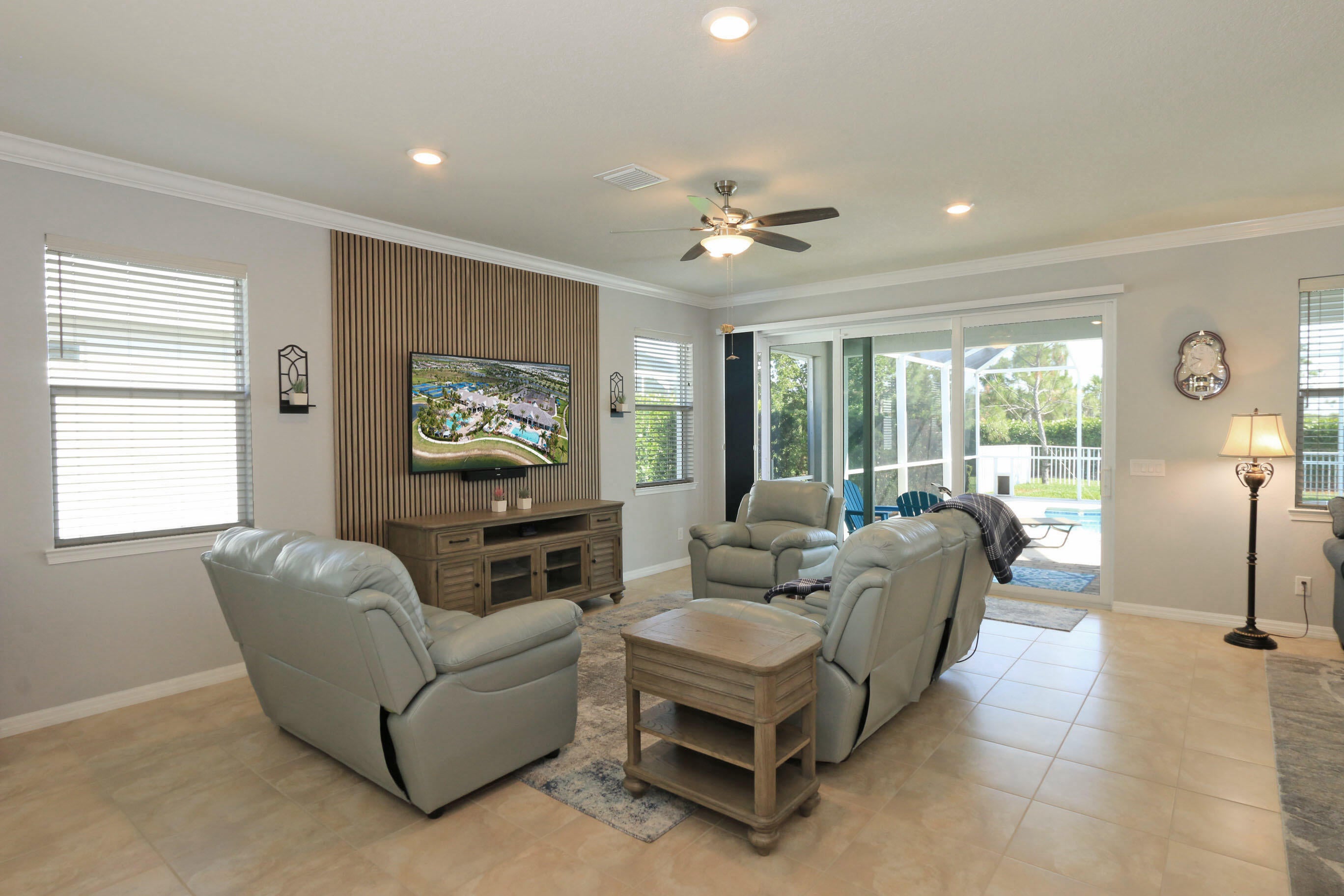 Gorgeous Extended Summerwood Model Pool Home in Del Webb at Tradition. Why wait to build when this home is ready to move into. Huge Open Floor Plan. This 3 bedroom plus den home boasts an upgraded kitchen with built ins, extended island, pull out drawers and large pantry. The Great Room is perfect for entertaining. 65 inch mounted TV in Livingroom stays. The Master bedroom is so inviting with a decorative accent wall along with a Master Bath that has a wall with shiplap and custom mirrors over the dual sinks. Enjoy peace while relaxing on your screened patio and pool area. Fenced backyard perfect for pets. Active 55+ Community with Lifestyle Director, 2 Pools, Gym, Pickleball, Bocce, Tennis, Walking Trail, Dog Park and lots of clubs and shows to enjoy.