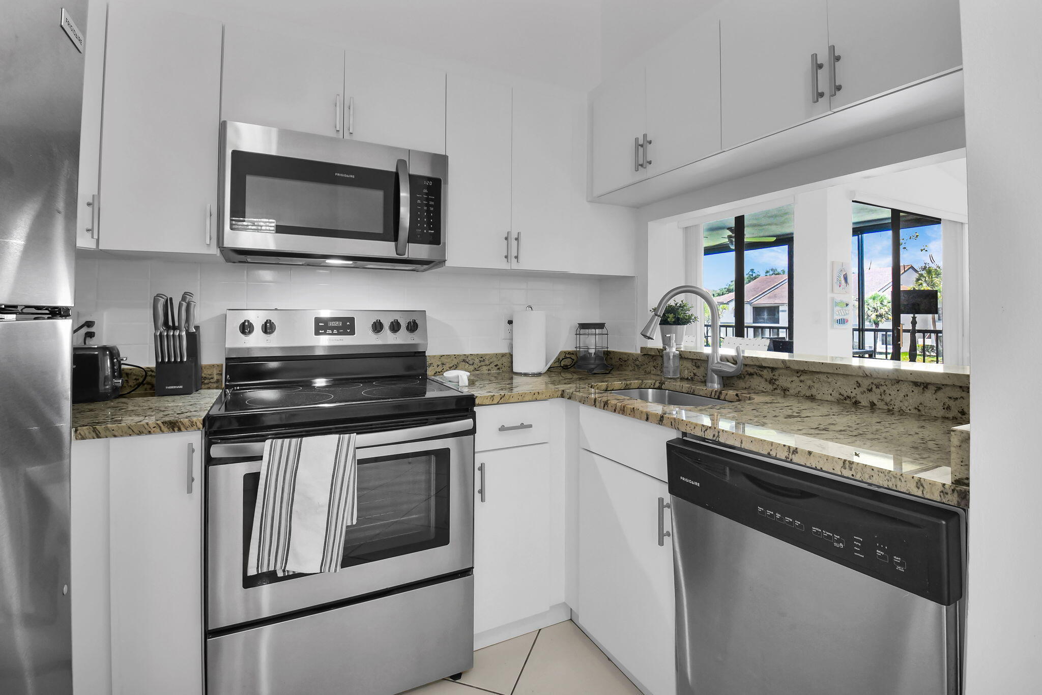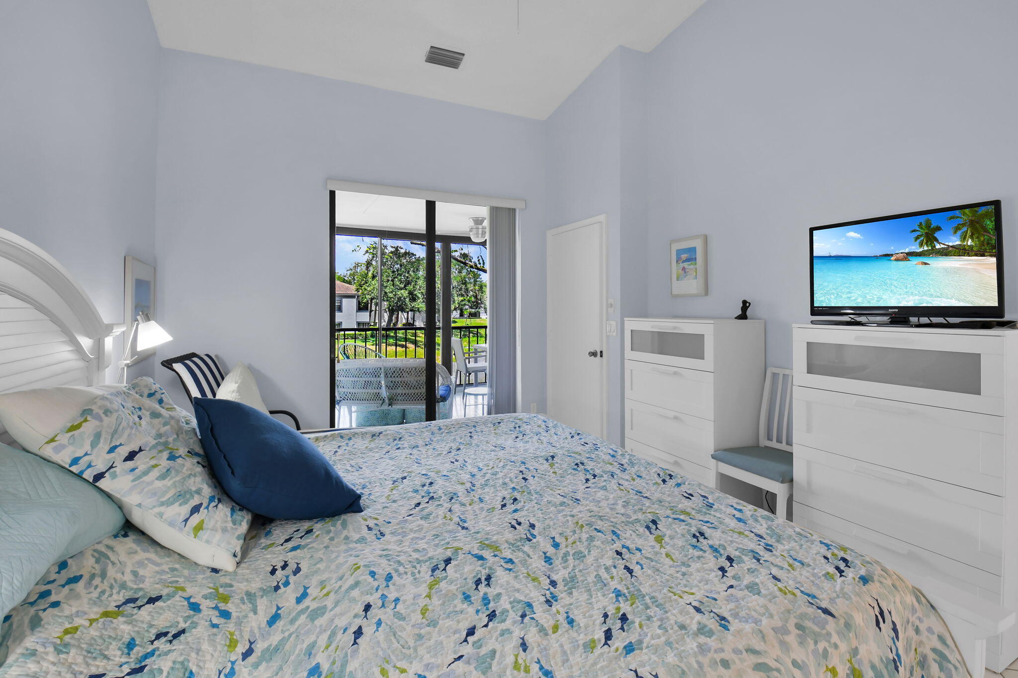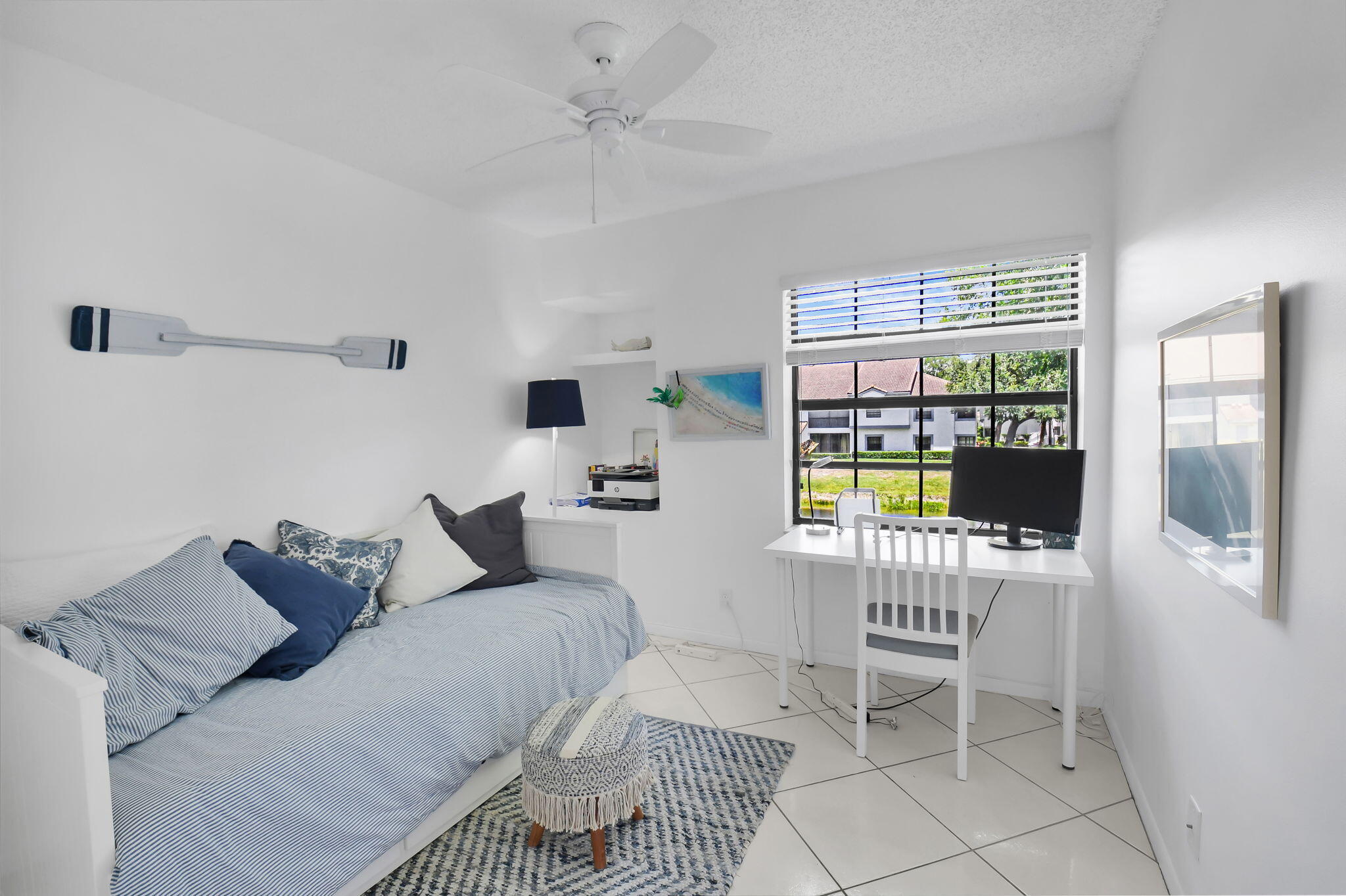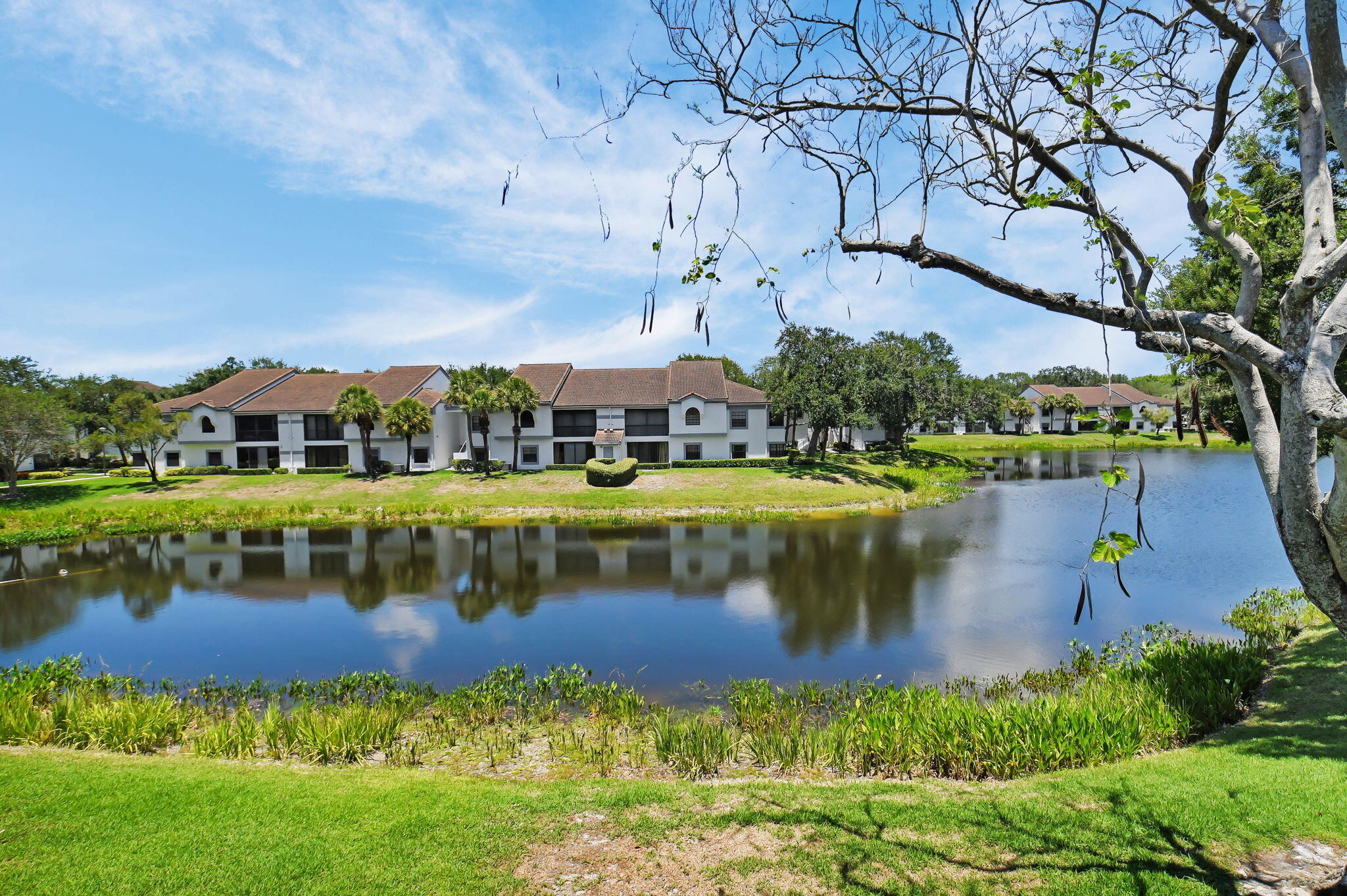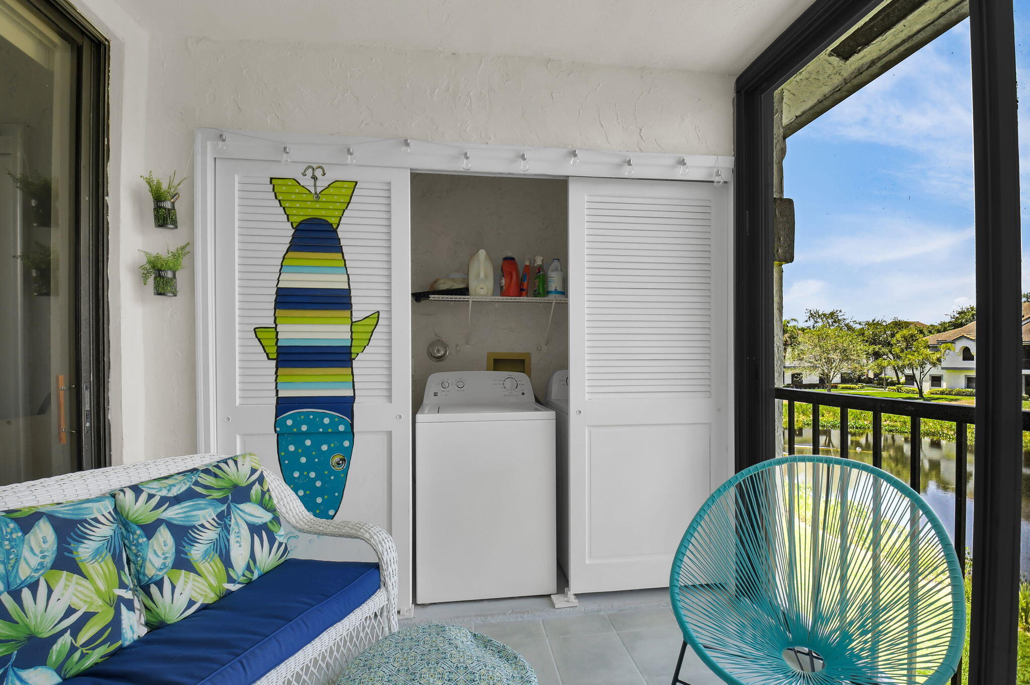 Discover your perfect getaway or forever home with this charming 2nd floor condo that offers picturesque lake views, a cozy beach-inspired ambiance, and turn-key convenience. It's ready for you to move in, fully equipped with tasteful furniture and everything you need for year-round living or a dream vacation retreat. Enjoy the serene beauty of the lake from every window. Whether you're sipping your morning coffee or unwinding after a long day, the tranquil water views bring a sense of peace and relaxation to your everyday life. The entire home is unified with sleek ceramic tile that not only enhances the aesthetic but also provides durability and easy maintenance. The eat-in kitchen boasts granite countertops, stainless-steel appliances, and ample cabinet storage.It's a space where style meets practicality. With three bedrooms, this condo is ideal for accommodating family, guests, or creating a dedicated home office space. The beachy motif throughout the home adds a light and inviting touch to every room. The master bathroom has been thoughtfully updated with granite countertops and a frameless walk-in shower. The updated second bathroom features a new toilet and a modern vanity with granite countertops. The glass and screen-enclosed balcony is an inviting space where you can soak in the lake views year-round, rain or shine. It's perfect for enjoying a good book, dining al fresco, or simply relaxing while surrounded by nature. Don't miss your chance to own this quaint condo in a community that discerning buyers place at the top of their list! Platina offers care-free, resort-style living at its very best! AT&T FIBER OPTIC HIGH SPEED INTERNET is INCLUDED IN THE CONDO FEES along with DIRECT TV, PEST CONTROL, ROOF MAINTENANCE and WATER. All you pay for is electricity! The active 20,000 square foot clubhouse is stunning! Cafe open for breakfast and lunch now offering take-out meals, card rooms, fitness center with stationary bicycles in a solarium overlooking the pool area. Relax in one of the satellite pools or at the enormous free-form main pool and spacious sundeck. Tennis, handball and pickleball courts. There is also an art room with a kiln! With shows, bingo, and an array of clubs, you will not be bored! 24-hour guard gated community. Convenient access to I-95 and the Florida Turnpike. Close to shopping and wonderful restaurants. DON'T FORGET TO VISIT THE CLUBHOUSE.