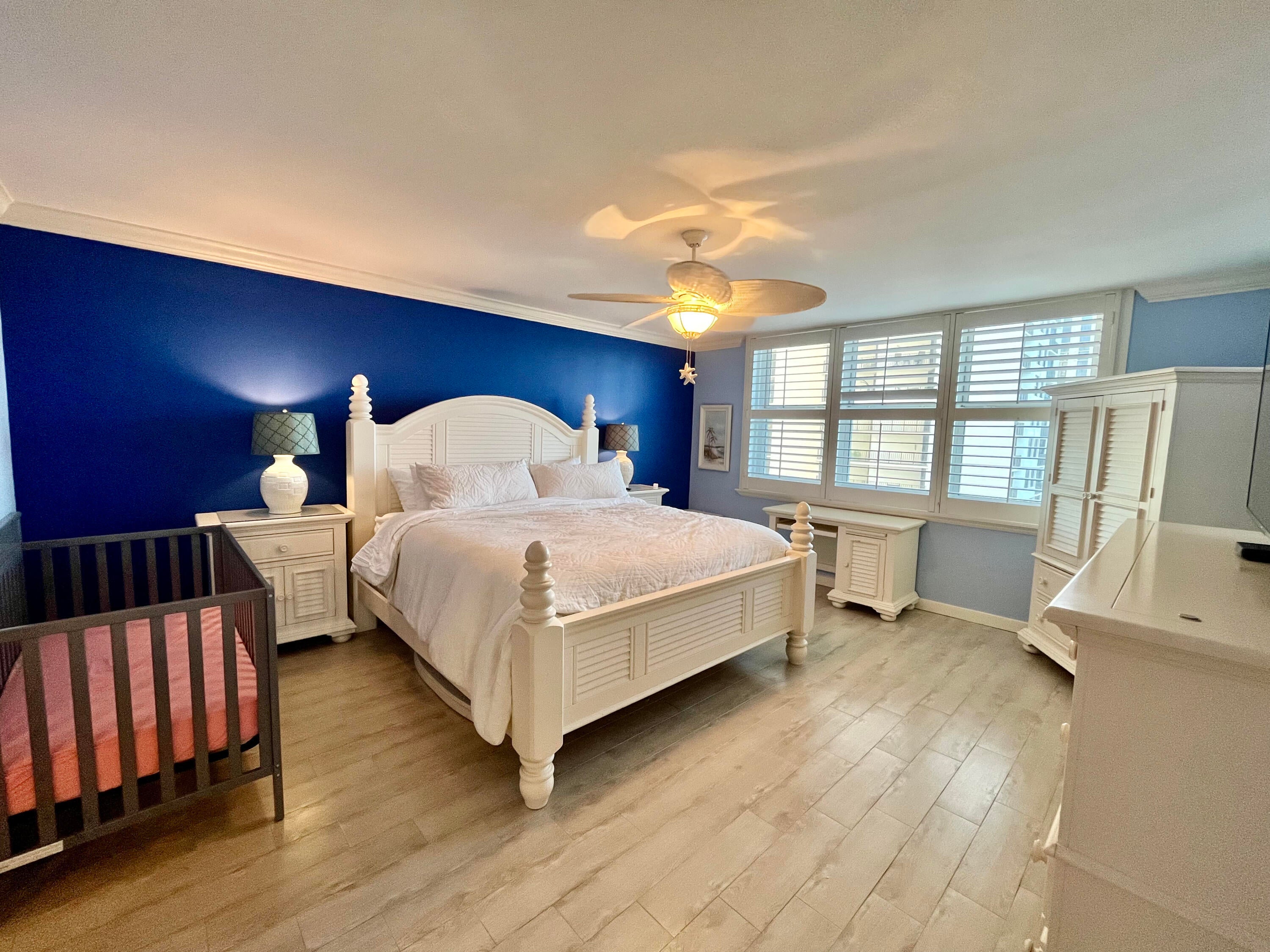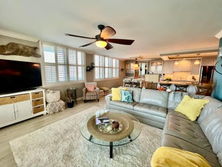 Pristine updated 2/2 Southwest Corner Unit available for Seasonal Rent. Unit is turnkey and has all the bells and whistles. Updated open kitchen concept overlooking the ICW and into the living/dining room. Impact glass sliding doors and windows throughout. Cozy but large bedrooms with King size bed in the master and Queen size pullout in the guest room. Crib if needed. TV's in all bedrooms. Builtin closets for easy storage of personal items. Renovated bathrooms featuring rain showers and jacuzzi tub. Stackable washer/dryer in unit. Covered parking space right by the front door. The bldg features a circular pool overlooking the oceans edge. Beautiful private beachfront access on Singer Islands private beaches. Bldg features a large fitness room, billiards, community room and kitchen...