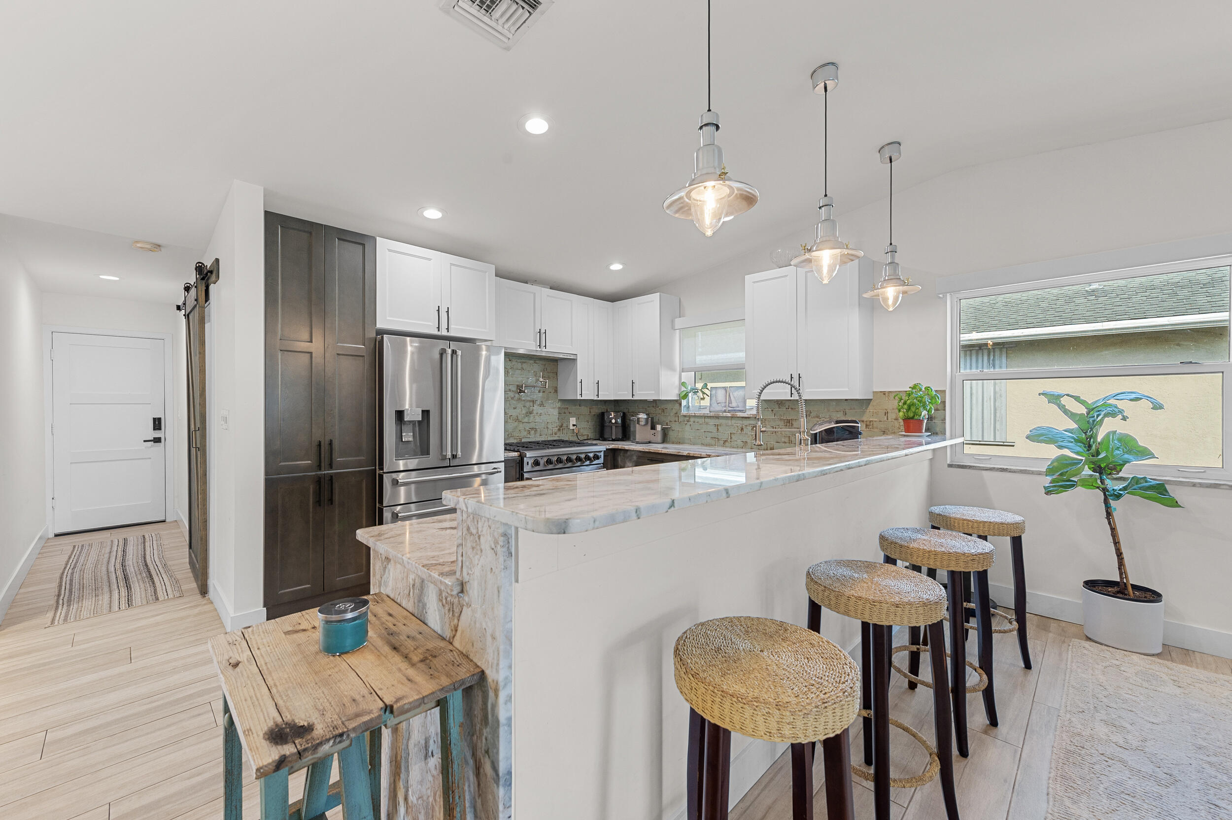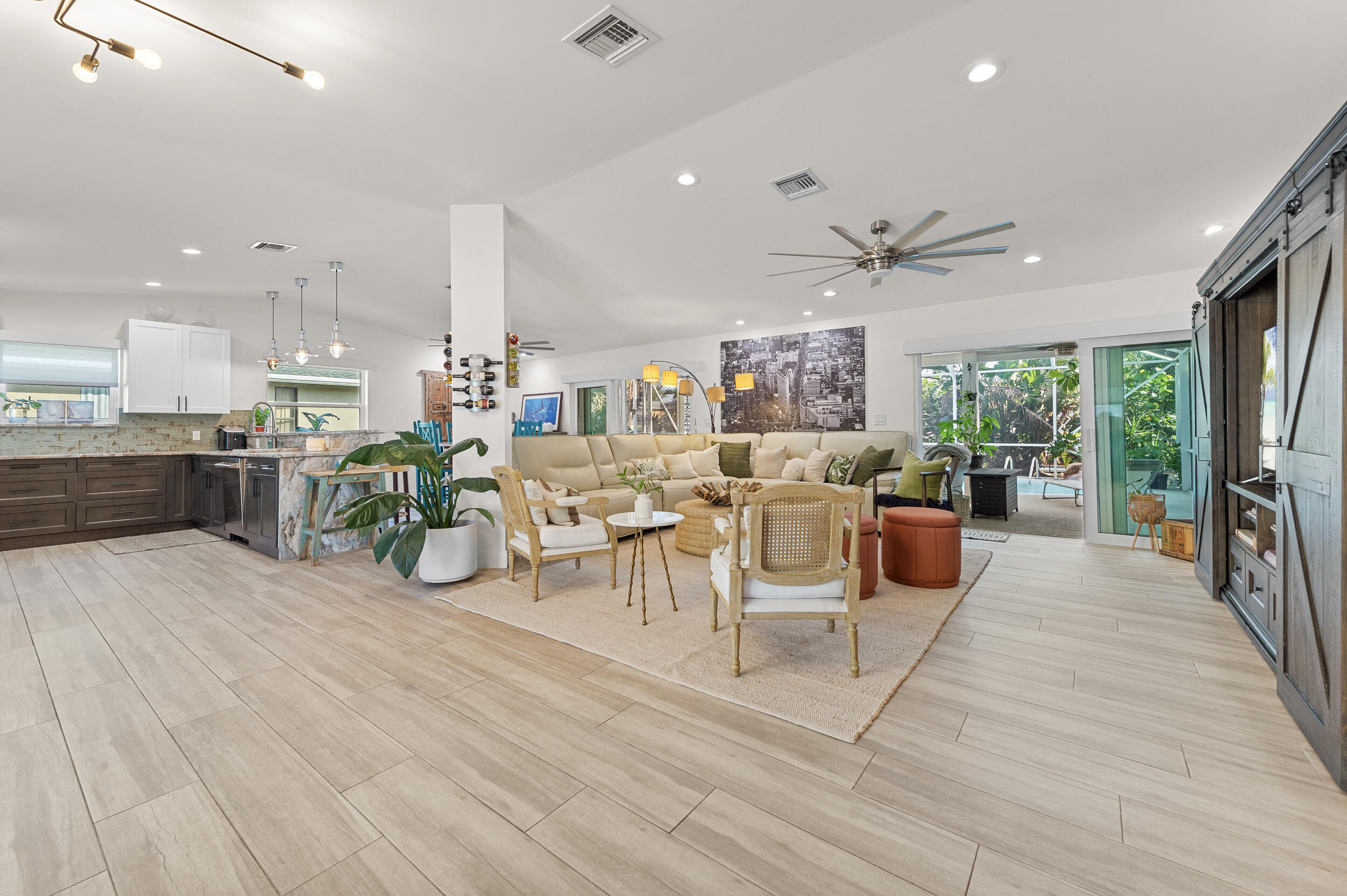 Experience Port Saint Lucie's waterfront living at it's finest. Best value for this completely renovated screened-in pool home with 2 boat spaces and 1 lift for a boat up to 36 ft! Here you can enjoy boating with ease and you're only 30 minutes to the inlet! The home offers 3 bedrooms, 3 baths, and a 1-car garage with an extended driveway. The kitchen is equipped with granite countertops and stainless steel appliances. Enjoy the open concept living/dining area overlooking the private pool and large patio, or take in the stunning riverfront views. This is a hurricane ready home with impact windows and doors throughout and a recently replaced metal roof! This turnkey home is fully furnished with the option of being unfurnished with an annual lease.
