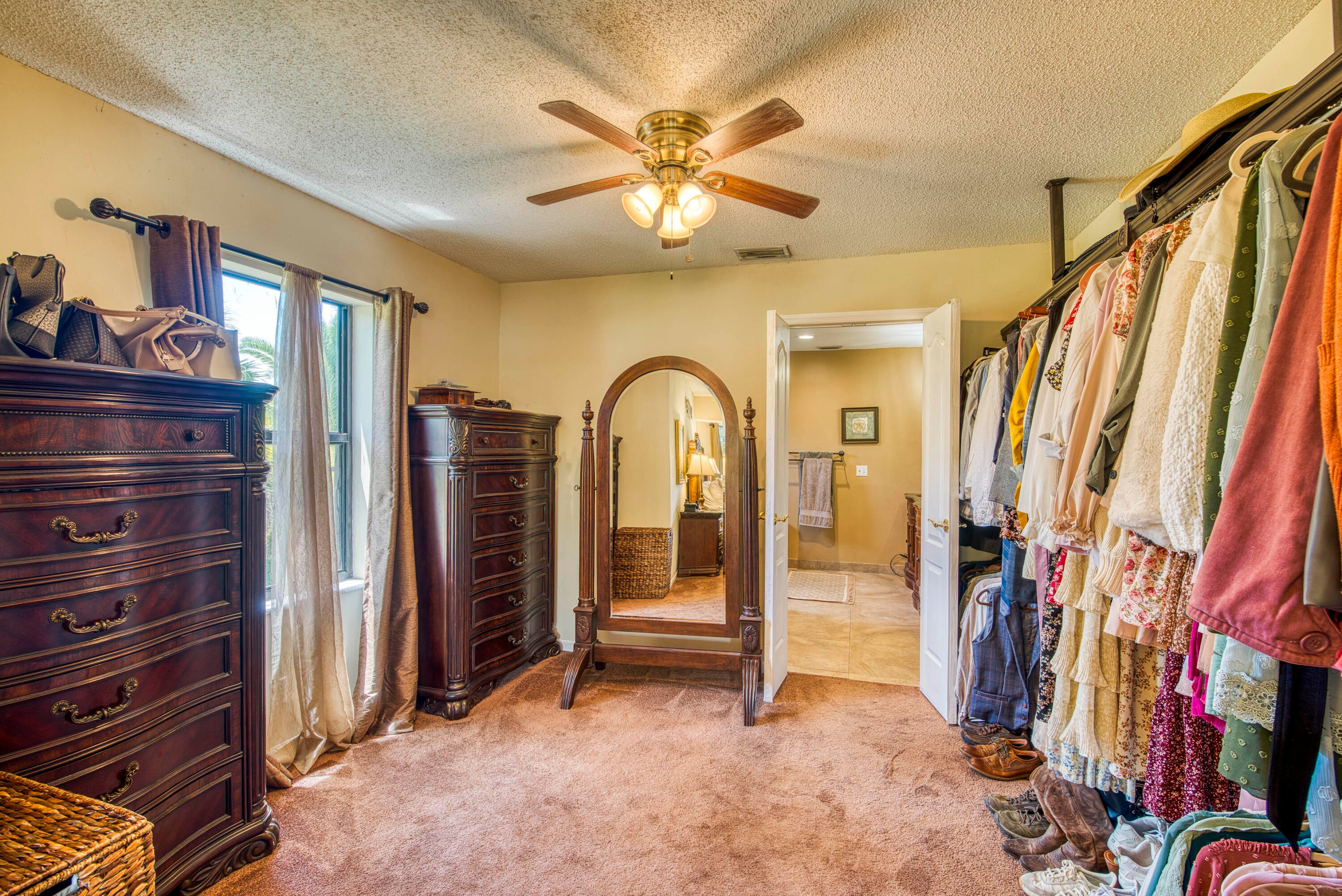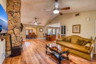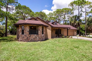 Nestled on the eastern edge of The Acreage, you can find this woodsy 3-bedroom, 2-bathroom slice of tranquility and peace sitting on 1.25 acres filled with trees, a fire pit and angelic sitting areas. Enter this warm and cozy home that is meant for entertaining with a huge living room, stone fireplace, open kitchen and separate dining enclave that opens to the back yard. Have breakfast, lunch or a dinner party ''alfresco'' opening the double doors with a drapery-screen. Each bedroom feels private with the primary bedroom encompassing a huge dressing area that sits between the bedroom and primary bath. The home features a whole-home Reverse Osmosis system that reaches every tap and has a 320-gallon holding tank. Whether you are entertaining, or want to feel cozy and secluded, this home hasall that you'll want.
