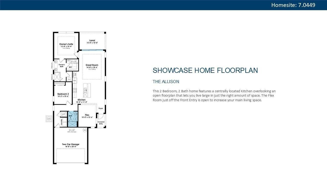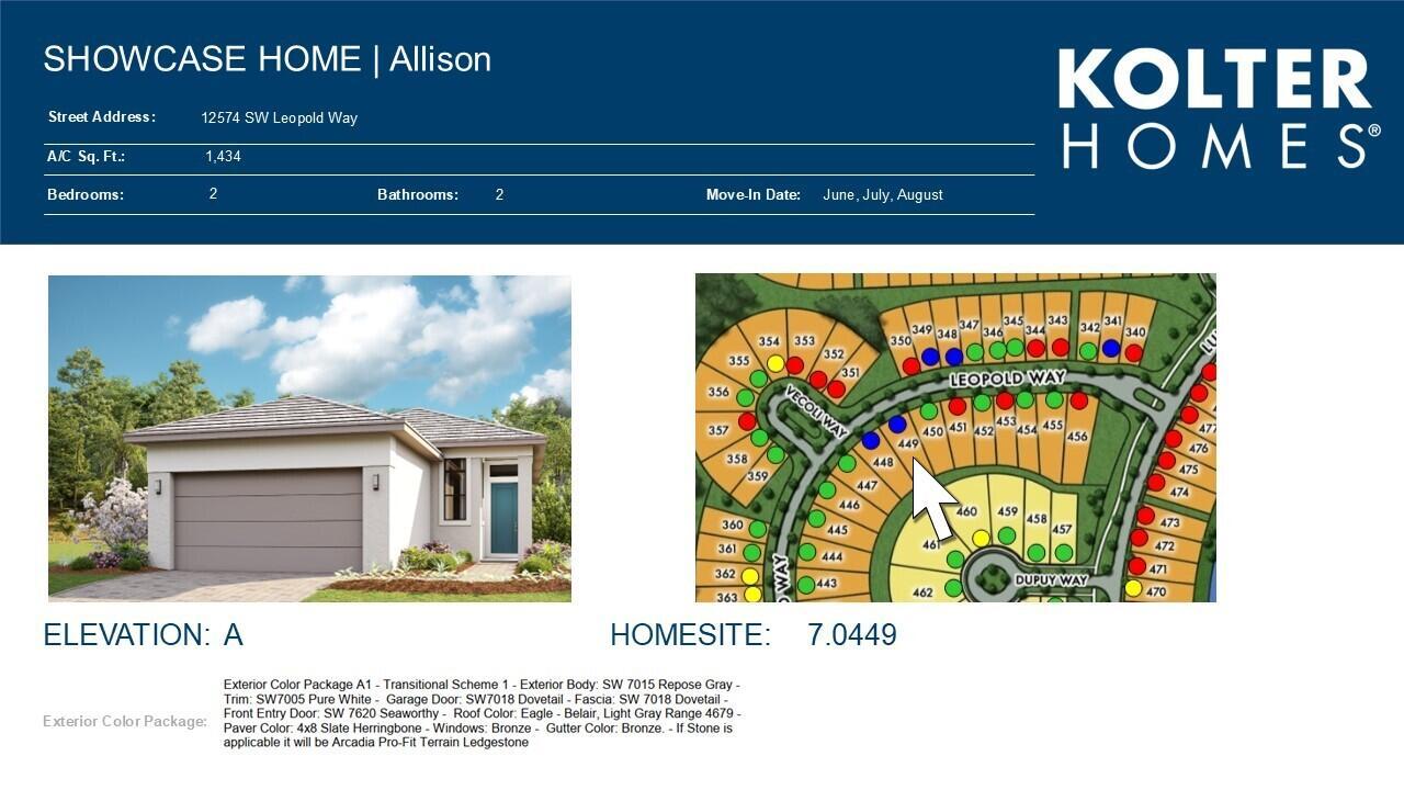 **NEW CONSTRUCTION** Home will be available in June. Model photos used for reference. The Allison floor plan features 2 Bedrooms plus a versatile Flex Room, perfect for an office or guest space, 2 bath, and 2-Car Garage. With an open-concept layout, the home maximizes natural light and flow, creating a welcoming atmosphere. The kitchen is a chef's dream, boasting upgraded cabinets with crown molding, Quartz countertops, GE appliances, and under-cabinet lighting, adding both elegance and functionality. The Great Room has 12' wide x 10' tall sliding glass doors bring in abundant sunlight and provide easy access to outdoor living.The Owner's Suite Bath offers a spa-like retreat, featuring a frameless shower enclosure in brushed nickel finishes for a sleek, contemporary look. The secondary bath is upgraded with a walk-in shower instead of a tub, delivering a modern touch for guests or family members.