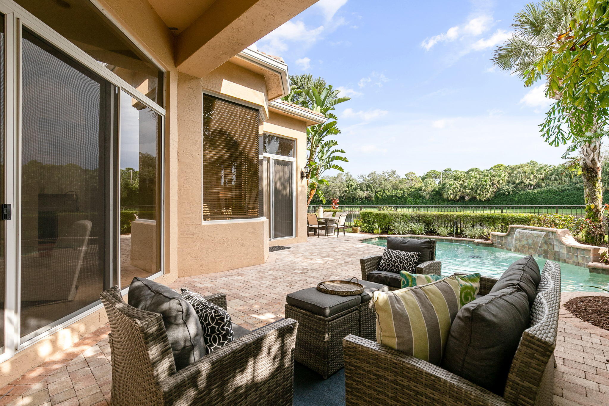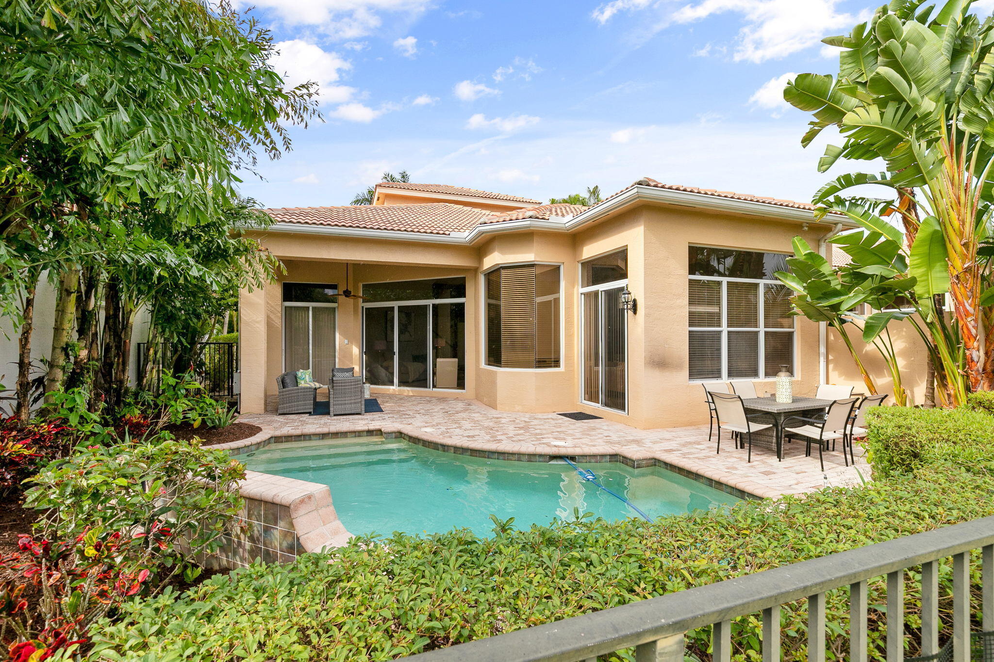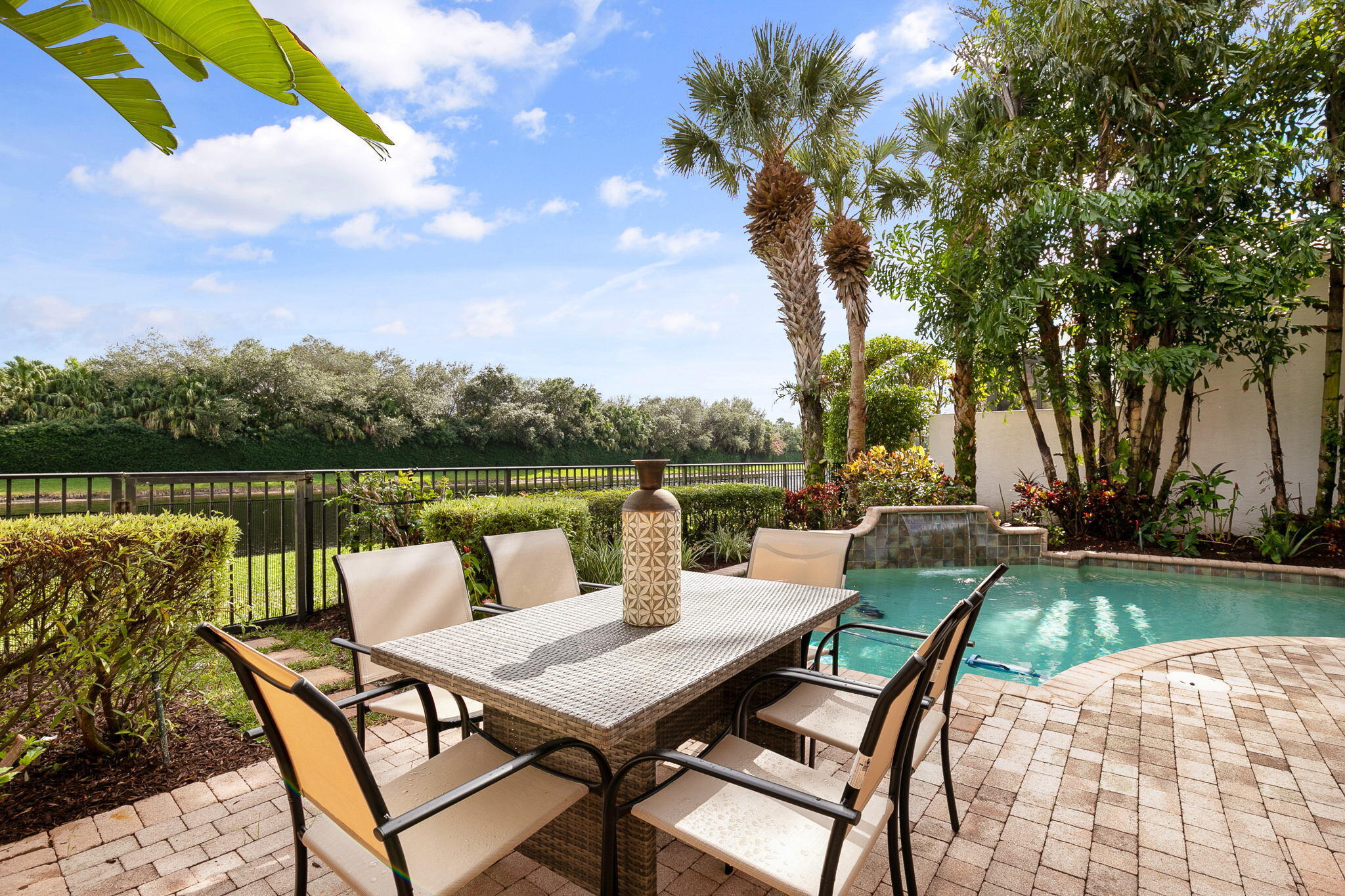 Updated modern furniture, turnkey accessories, updated landscaping. Sweeping water views, 4 bdrm, study and 2nd level loft home, in Mirasol Country Club Community. Bright and open floor plan with formal living and dining, 1st level guest suite, office and family room open to the kitchen, ground level master suite with large walk-in closet, master bath with double vanity. 2nd level loft with 2 bedrooms and bath. Spacious patio surrounded by lush landscaping, inviting pool and spa perfect for relaxing and entertaining. Enjoy Sport Membership Privileges at Mirasol Country Club with two champion golf courses, state of the art practice range and facilities, 15 clay tennis courts, full-service spa, aquatics center, fitness center, family sports complex, walking and biking, grandclubhouse, a variety of dining options, special interest clubs, year-round social events and much more.
