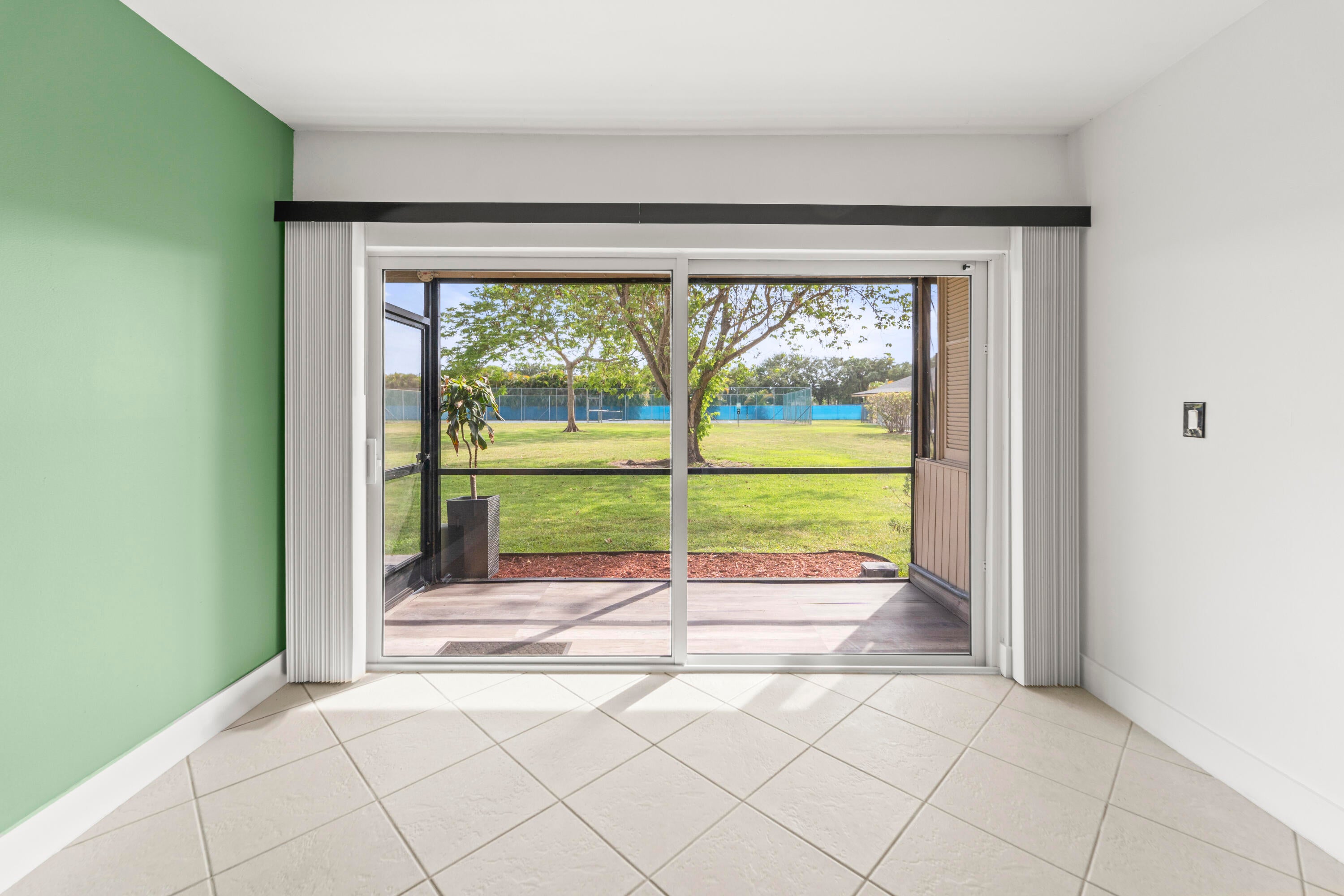 Move-in ready and beautifully updated 2BR/2BA + bonus room in Village Green! This first-floor home was fully renovated in 2021 with new plumbing, electrical, and energy-efficient appliances. Impact windows, doors, and sliders added in 2024, plus fresh interior paint and a new roof in 2025.The community has a fresh new look with updated stucco, grey exterior paint, and modern lighting. Enjoy a private porch overlooking the tennis court and pool. Bright open layout, natural light, and modern finishes throughout.All condo assessments are paid in full. HOA includes cable, water, and exterior insurance. Great all-ages community with A-rated schools, close to shopping, dining, and major roads.