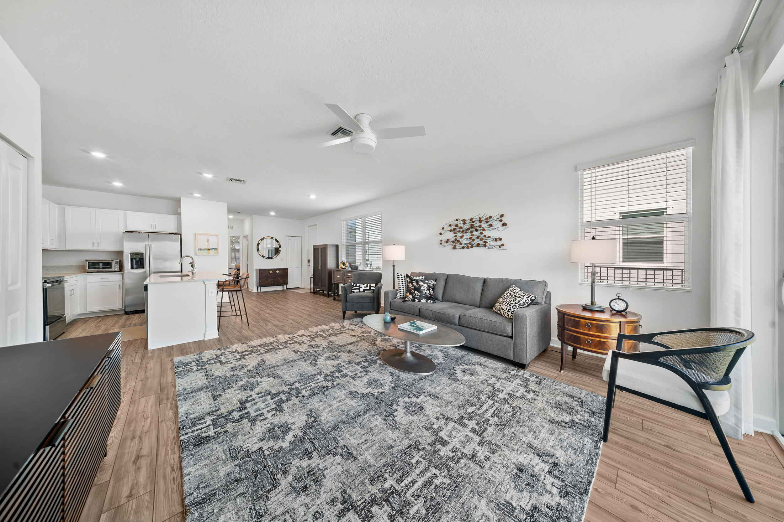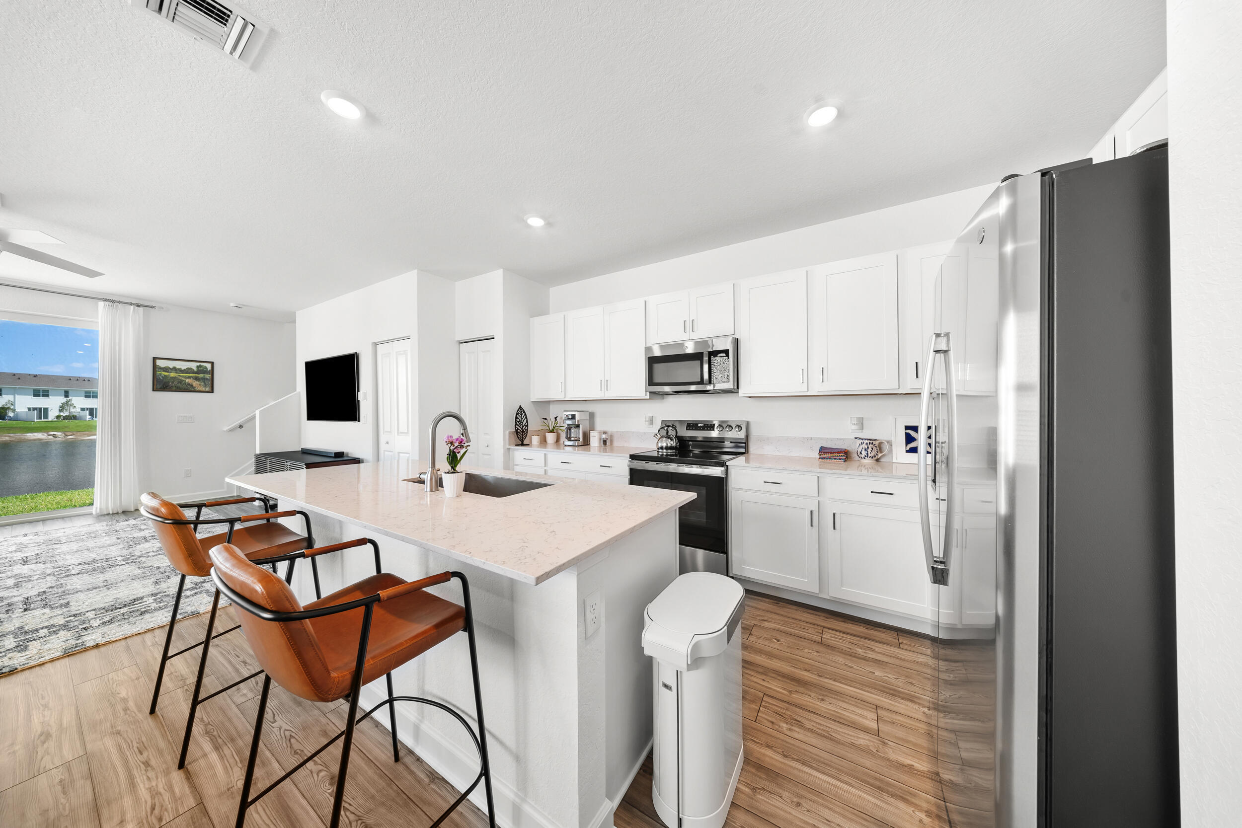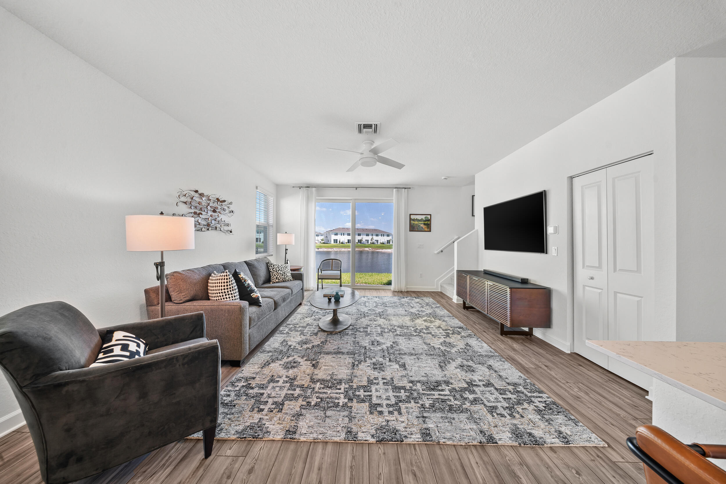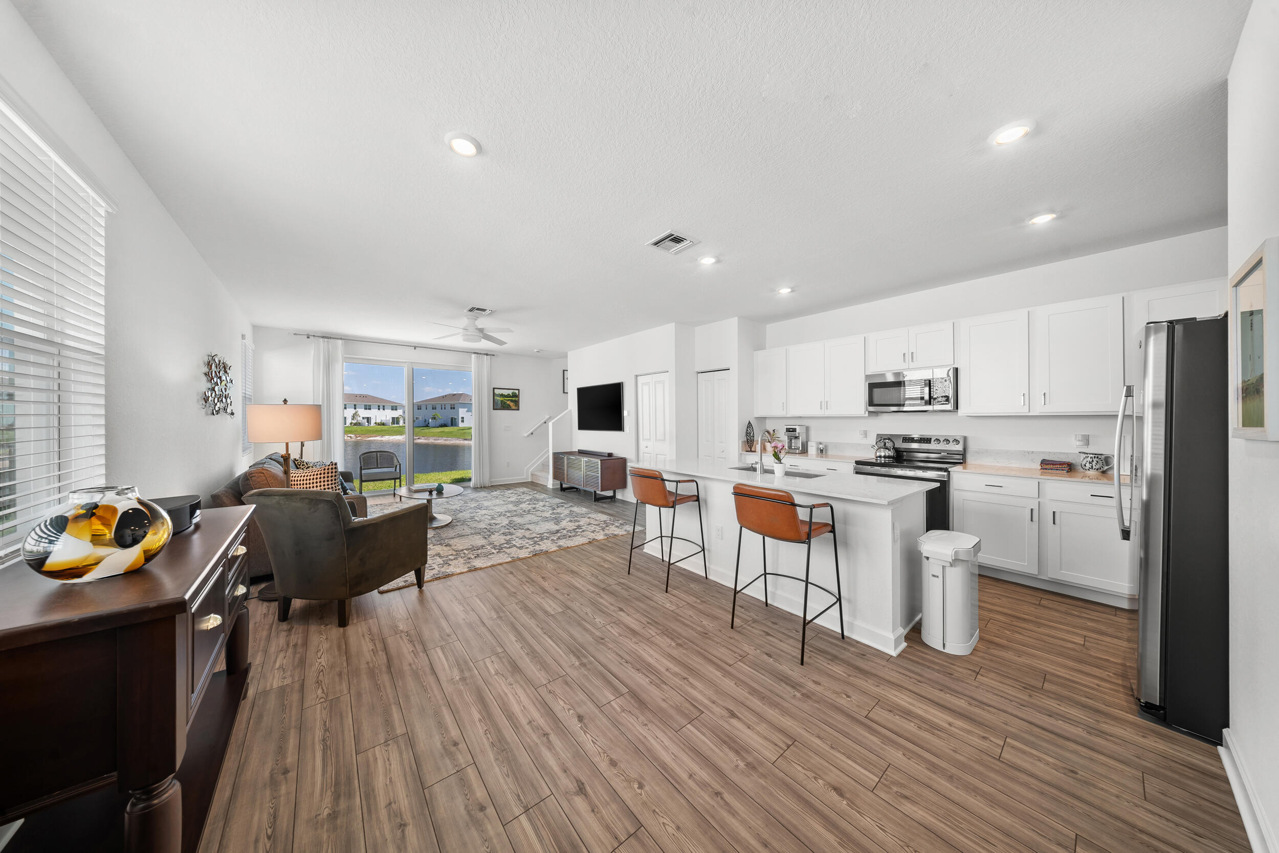 Step into style, comfort, and peace of mind with this nearly-new 3-bedroom, 2.5-bath Lennar townhome in the gated community of Veranda Landing. Built in 2024, this 1,821 sq ft residence offers open-concept living with a sleek modern kitchen, stainless steel appliances, quartz countertops, and a spacious living/dining area that opens to a private patio with tranquil lake views.The seller has added thoughtful upgrades throughout, including custom blinds, elegant curtains with matching rods and finials, dimmer lighting, ceiling fans, stylish new faucets, a dining room chandelier, and an epoxy-finished garage floor for a clean, polished touch.Enjoy the best of Port St. Lucie living in Veranda Landing, where residents have access to a gated entry, community pool, and lakeside relaxation areas all just minutes from I-95, the Turnpike, shopping, golf, and beautiful Atlantic beaches. With its modern features, curated upgrades, and serene lakefront lot, this home offers the perfect blend of lifestyle and location.