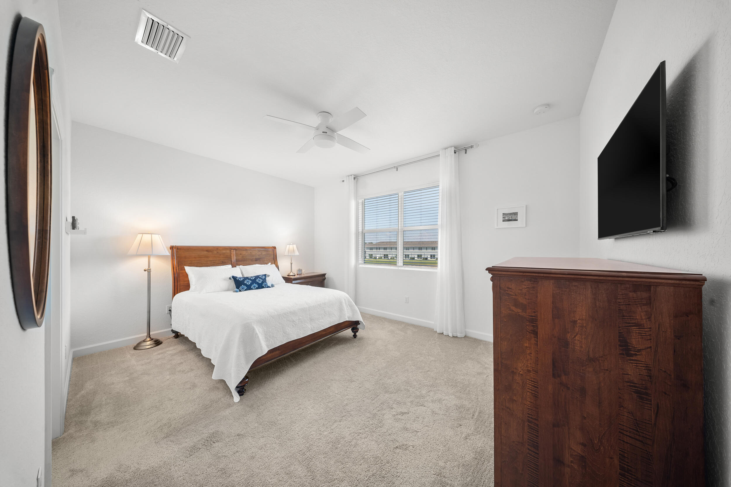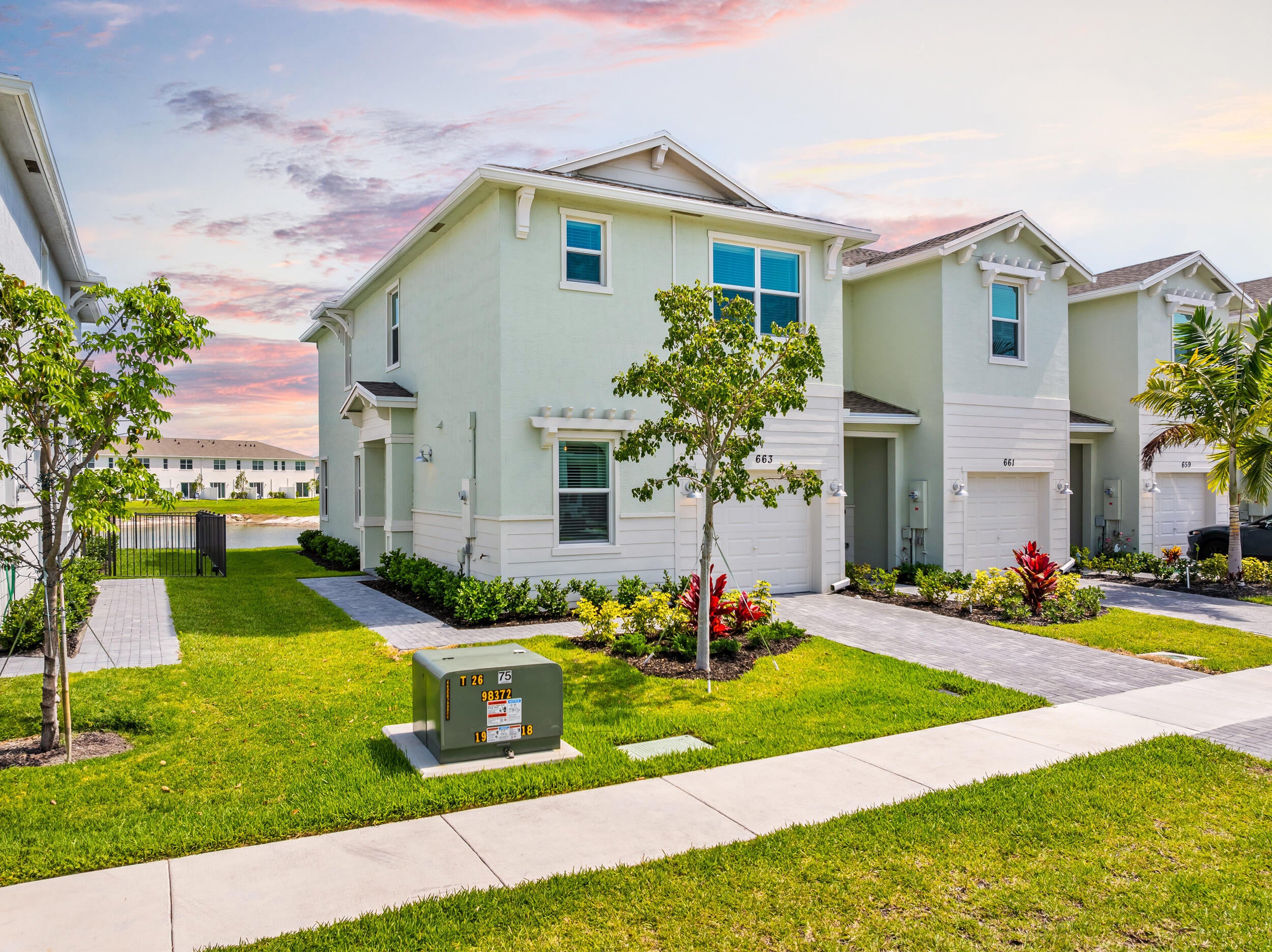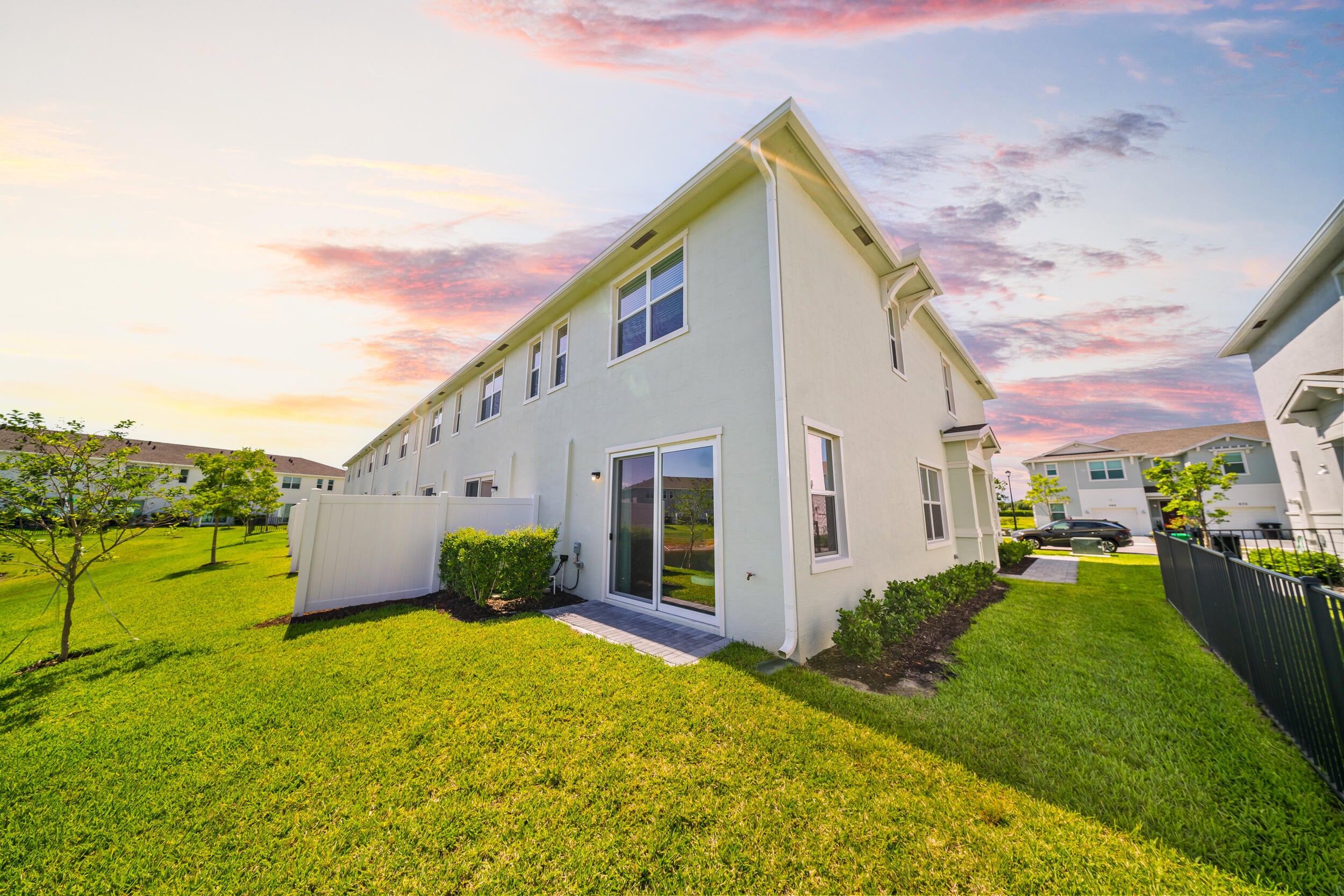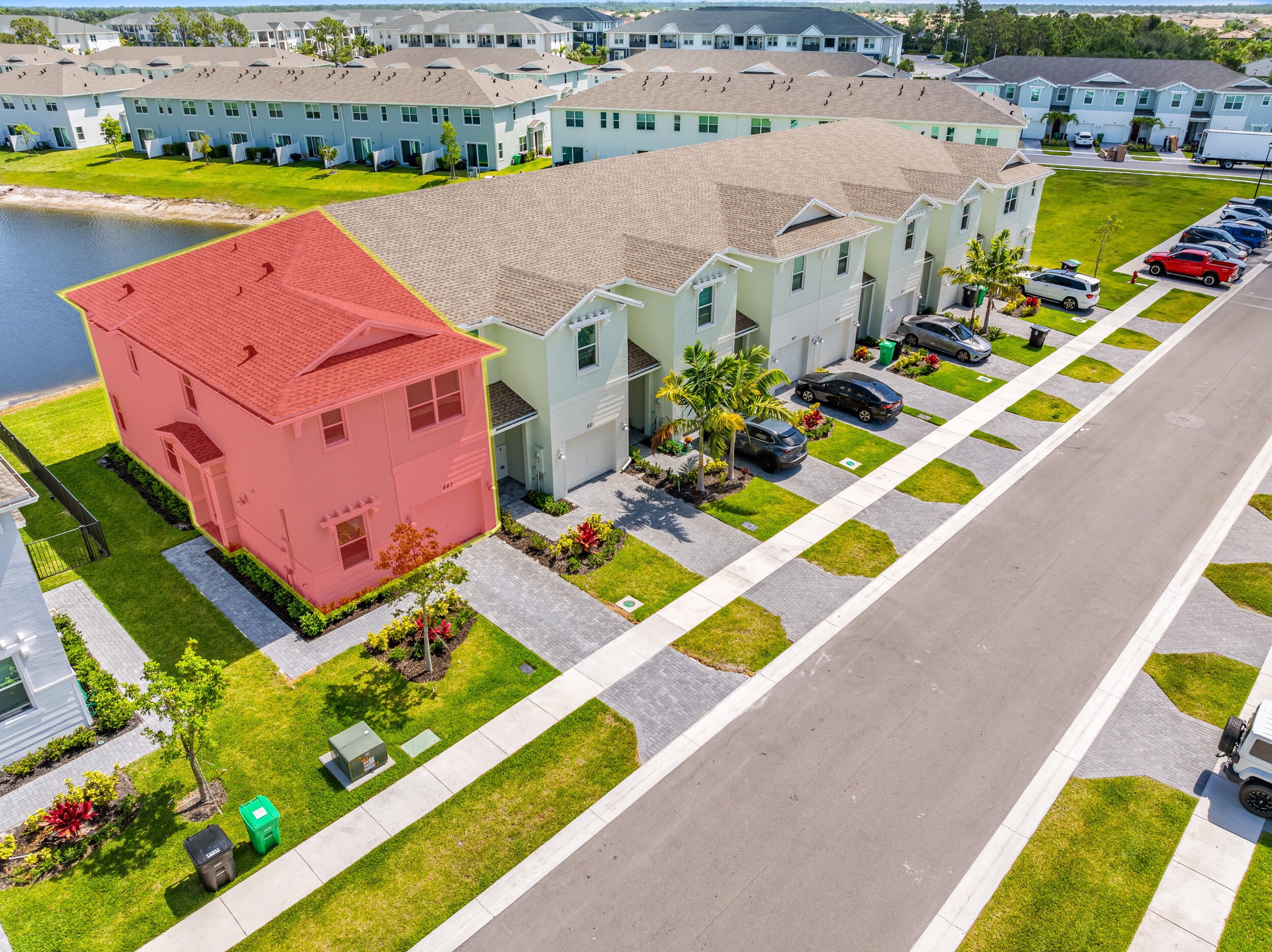 Step into style, comfort, and peace of mind with this nearly-new 3-bedroom, 2.5-bath Lennar townhome in the gated community of Veranda Landing. Built in 2024, this 1,821 sq ft residence offers open-concept living with a sleek modern kitchen, stainless steel appliances, quartz countertops, and a spacious living/dining area that opens to a private patio with tranquil lake views.The seller has added thoughtful upgrades throughout, including custom blinds, elegant curtains with matching rods and finials, dimmer lighting, ceiling fans, stylish new faucets, a dining room chandelier, and an epoxy-finished garage floor for a clean, polished touch.Enjoy the best of Port St. Lucie living in Veranda Landing, where residents have access to a gated entry, community pool, and lakeside relaxation areas all just minutes from I-95, the Turnpike, shopping, golf, and beautiful Atlantic beaches. With its modern features, curated upgrades, and serene lakefront lot, this home offers the perfect blend of lifestyle and location.
