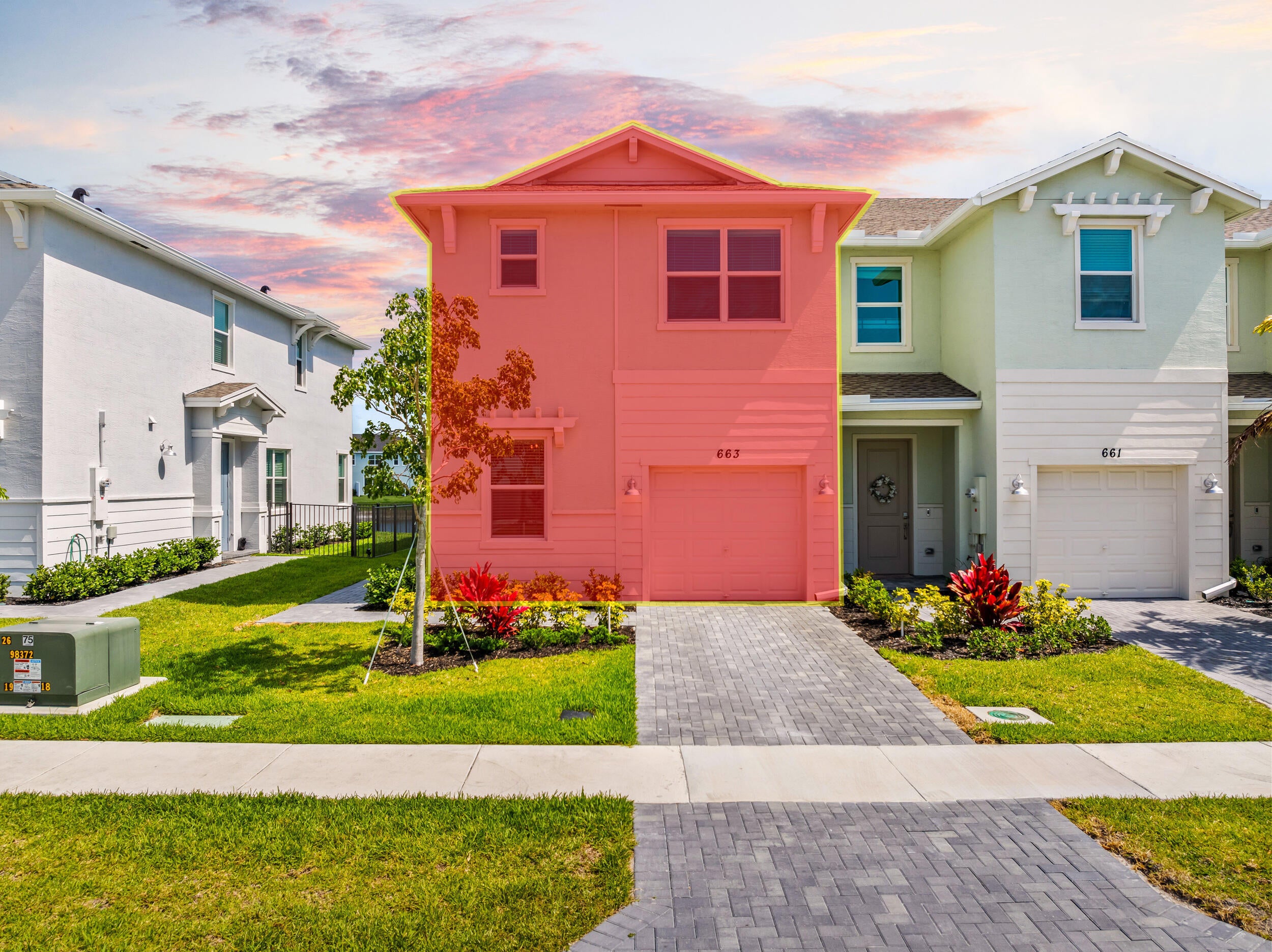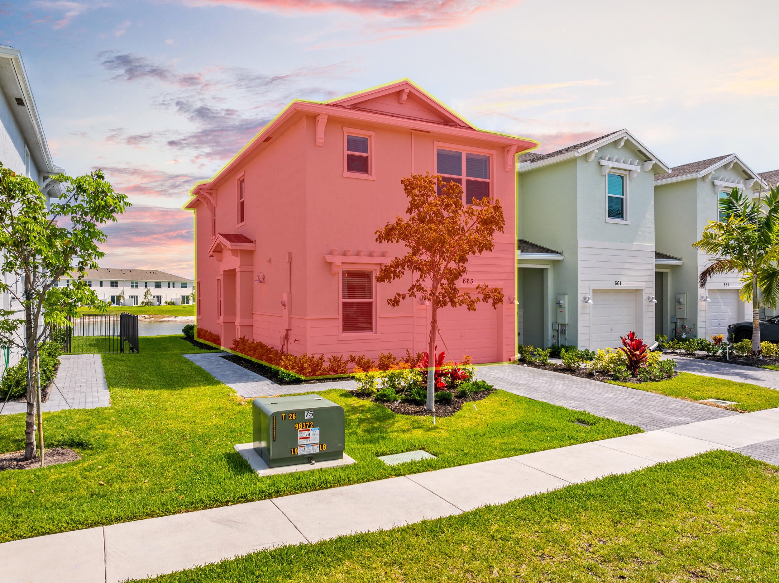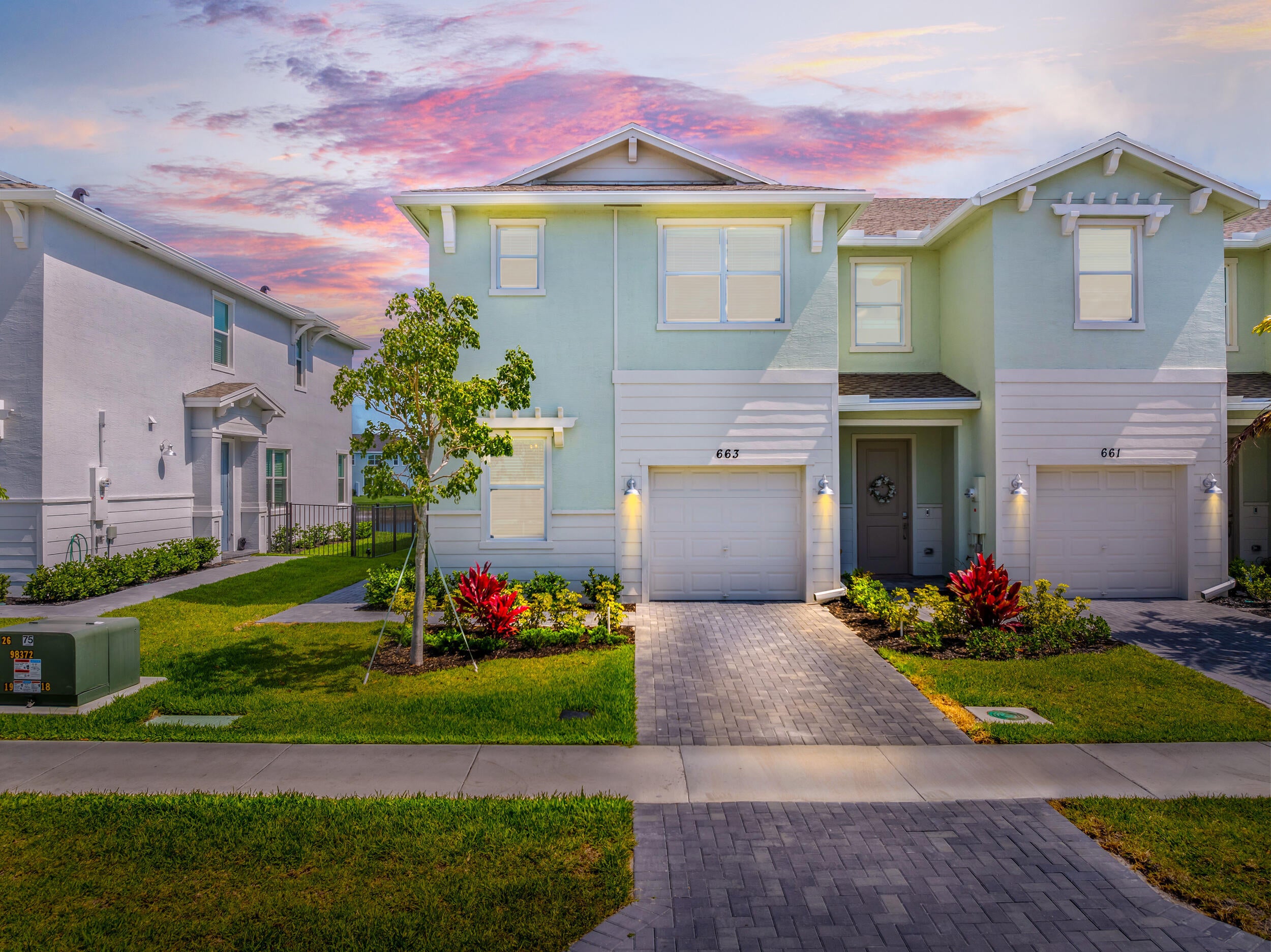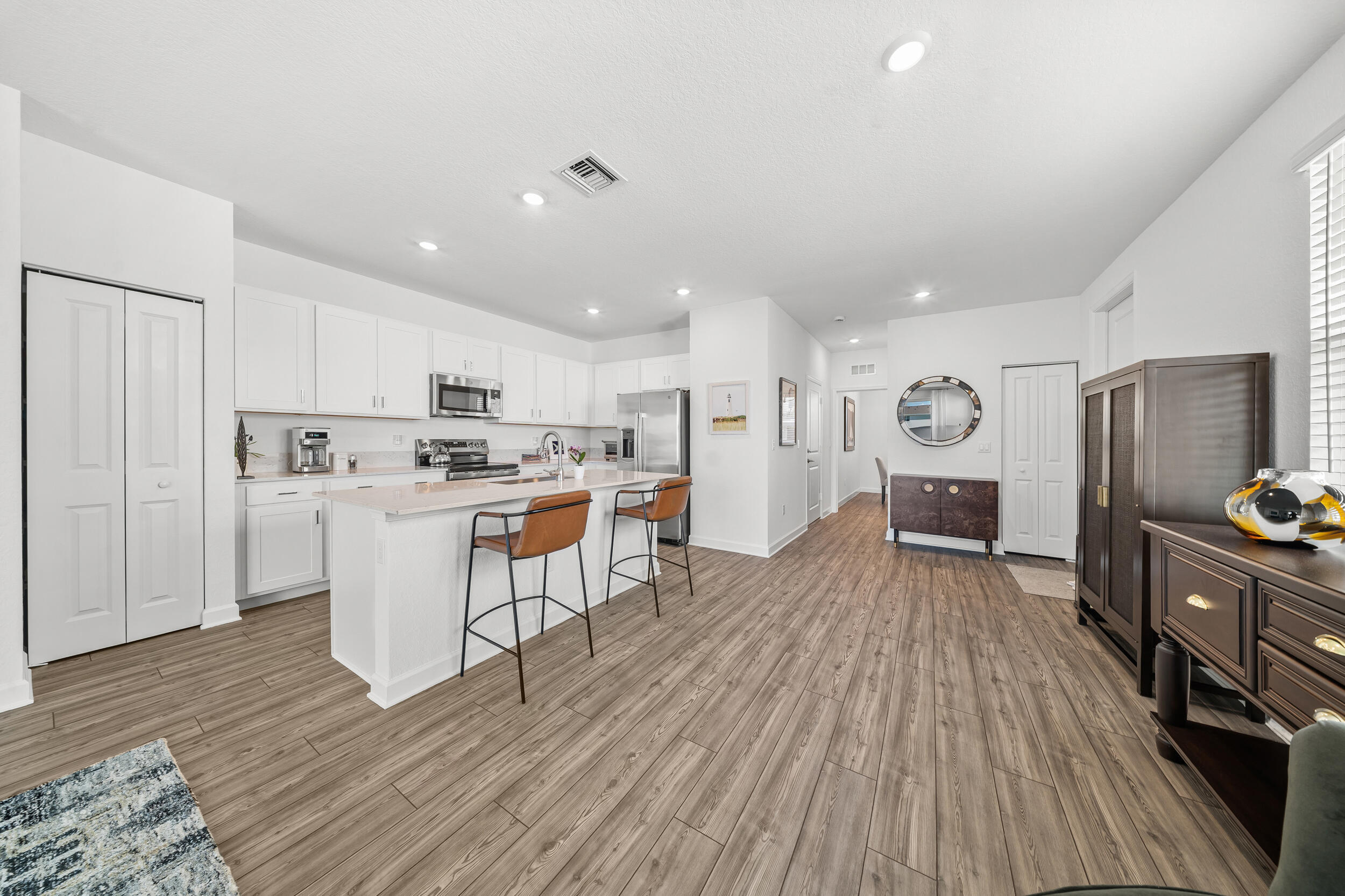 Step into style, comfort, and peace of mind with this nearly-new 3-bedroom, 2.5-bath Lennar townhome in the gated community of Veranda Landing. Built in 2024, this 1,821 sq ft residence offers open-concept living with a sleek modern kitchen, stainless steel appliances, quartz countertops, and a spacious living/dining area that opens to a private patio with tranquil lake views.The seller has added thoughtful upgrades throughout, including custom blinds, elegant curtains with matching rods and finials, dimmer lighting, ceiling fans, stylish new faucets, a dining room chandelier, and an epoxy-finished garage floor for a clean, polished touch.Enjoy the best of Port St. Lucie living in Veranda Landing, where residents have access to a gated entry, community pool, and lakeside relaxation areas all just minutes from I-95, the Turnpike, shopping, golf, and beautiful Atlantic beaches. With its modern features, curated upgrades, and serene lakefront lot, this home offers the perfect blend of lifestyle and location.