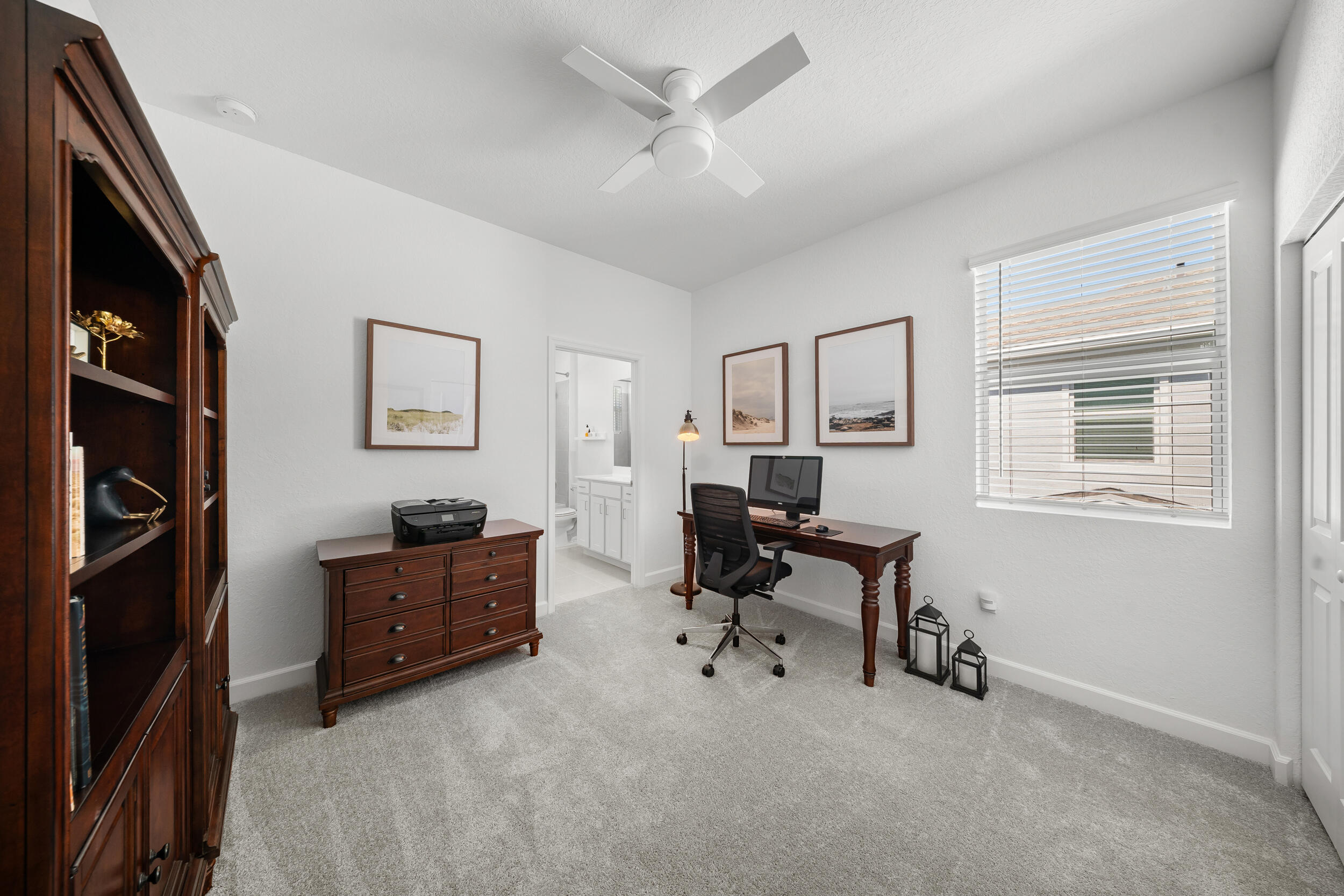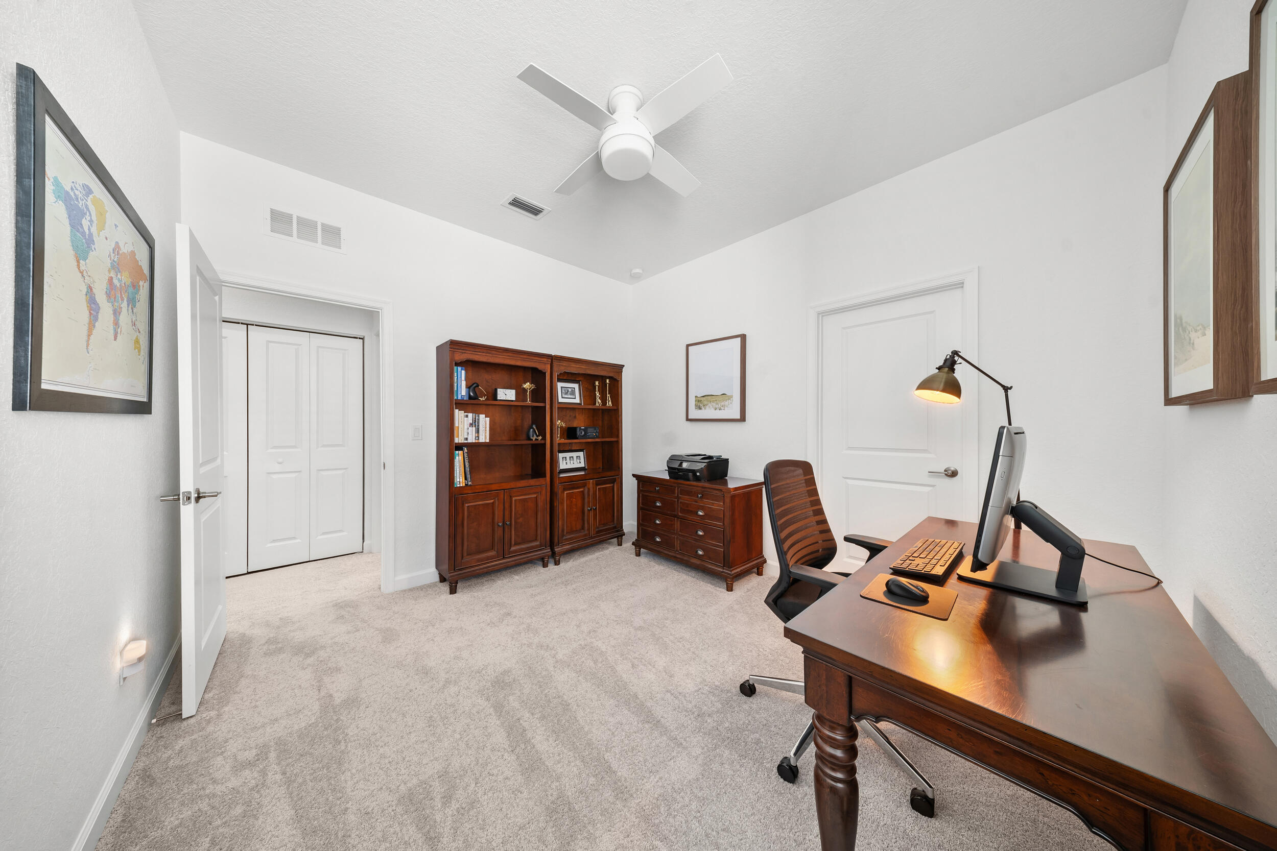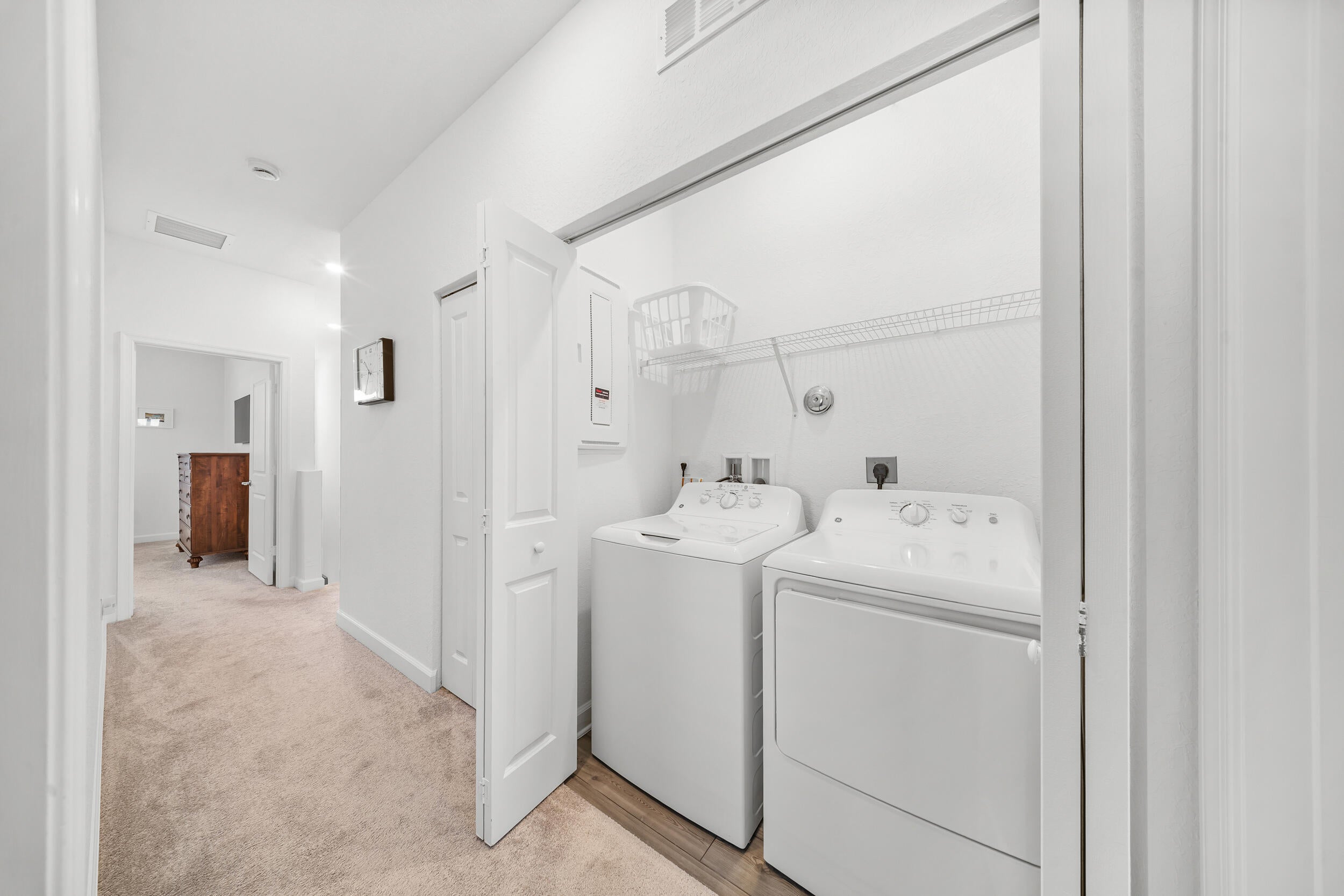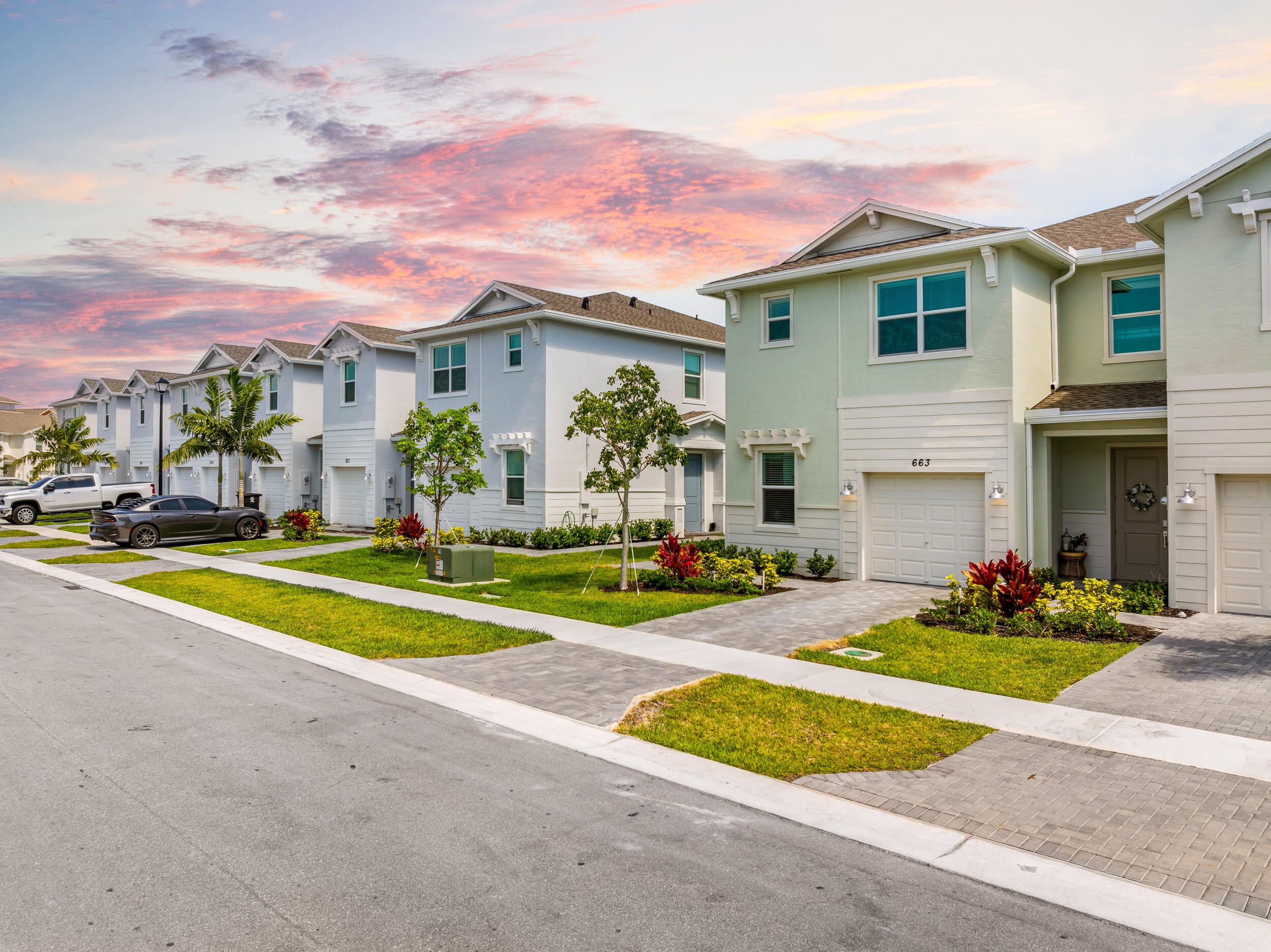 Step into style, comfort, and peace of mind with this nearly-new 3-bedroom, 2.5-bath Lennar townhome in the gated community of Veranda Landing. Built in 2024, this 1,821 sq ft residence offers open-concept living with a sleek modern kitchen, stainless steel appliances, quartz countertops, and a spacious living/dining area that opens to a private patio with tranquil lake views.The seller has added thoughtful upgrades throughout, including custom blinds, elegant curtains with matching rods and finials, dimmer lighting, ceiling fans, stylish new faucets, a dining room chandelier, and an epoxy-finished garage floor for a clean, polished touch.Enjoy the best of Port St. Lucie living in Veranda Landing, where residents have access to a gated entry, community pool, and lakeside relaxation areas all just minutes from I-95, the Turnpike, shopping, golf, and beautiful Atlantic beaches. With its modern features, curated upgrades, and serene lakefront lot, this home offers the perfect blend of lifestyle and location.