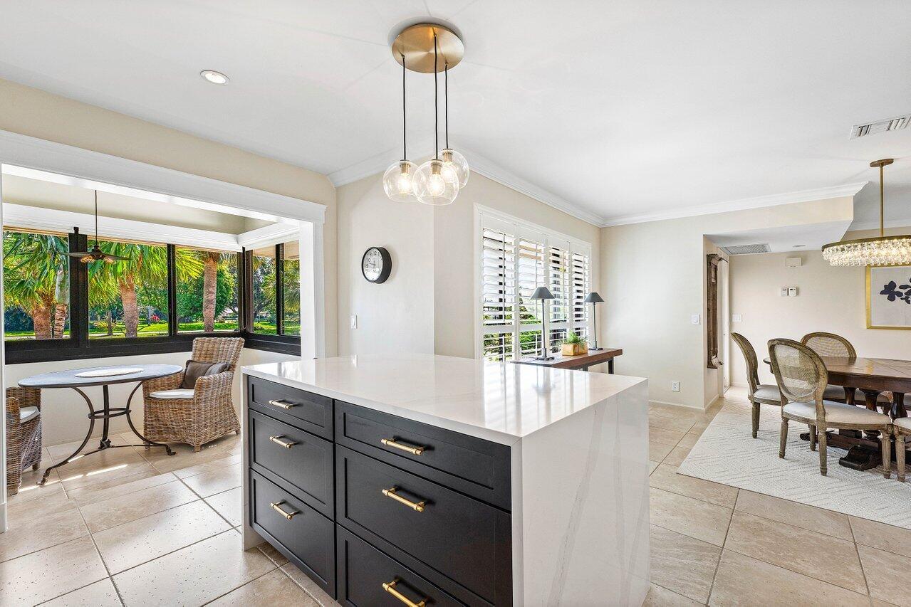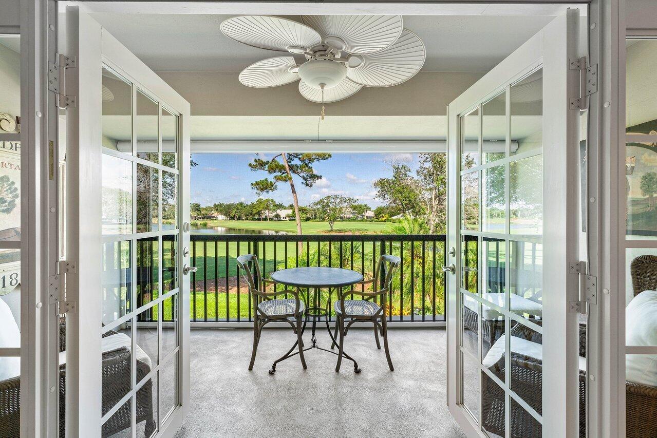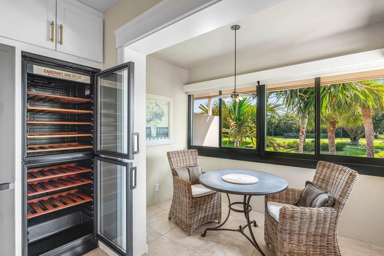 Experience luxurious living in this beautifully renovated 2nd floor, 3-bedroom, 2-bath condominium, showcasing breathtaking double lake and fairway views. Thoughtfully designed with elegance and functionality, this home features a gourmet kitchen with a striking center island adorned with a waterfall edge, high-end appliances, and a full-size wine cellar. The spacious main bedroom suite offers a tranquil retreat with a walk-in closet and a spa-inspired ensuite bath. French doors from living area lead to a private terrace equipped with an electric screen, ideal for enjoying the serene surroundings year-round. Quail Ridge is a mandatory membership community offering top tier golf courses, racquet sports, fitness center & spa, and a clubhouse offering fine dining and beyond.