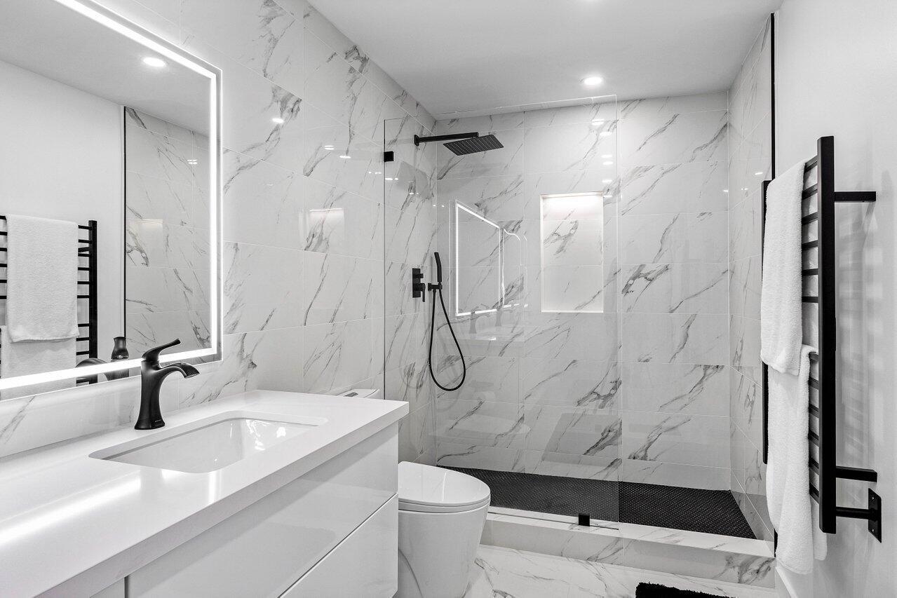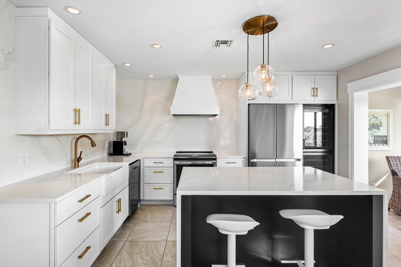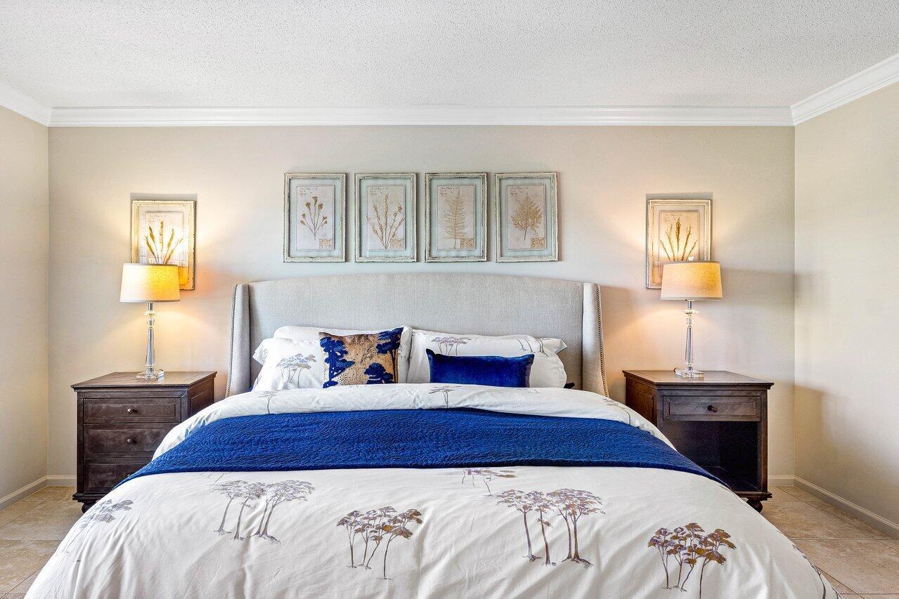 Experience luxurious living in this beautifully renovated 2nd floor, 3-bedroom, 2-bath condominium, showcasing breathtaking double lake and fairway views. Thoughtfully designed with elegance and functionality, this home features a gourmet kitchen with a striking center island adorned with a waterfall edge, high-end appliances, and a full-size wine cellar. The spacious main bedroom suite offers a tranquil retreat with a walk-in closet and a spa-inspired ensuite bath. French doors from living area lead to a private terrace equipped with an electric screen, ideal for enjoying the serene surroundings year-round. Quail Ridge is a mandatory membership community offering top tier golf courses, racquet sports, fitness center & spa, and a clubhouse offering fine dining and beyond.