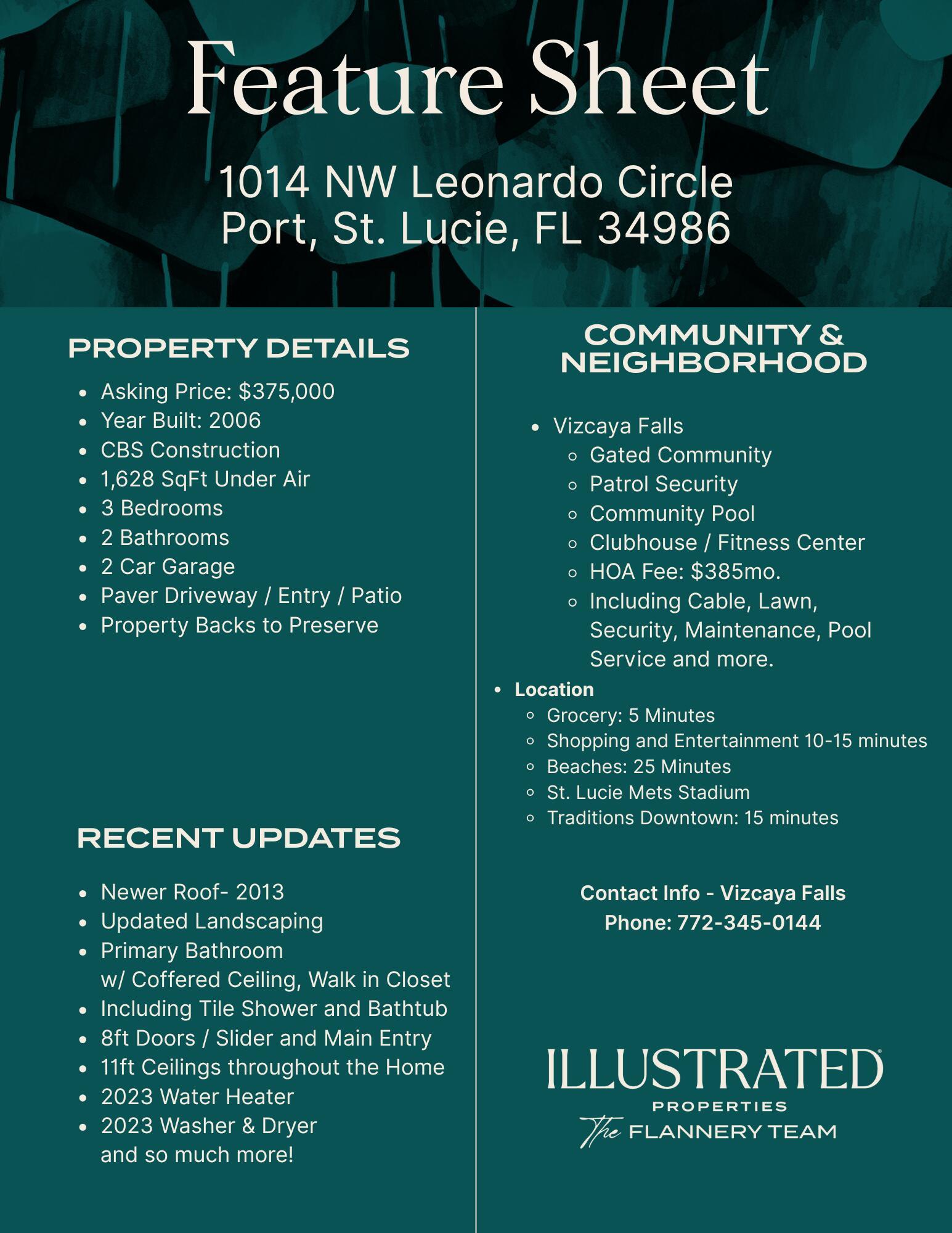 Offering a 1 YEAR RATE BUYDOWN or $5,000 towards Buyers CLOSING COSTS! Welcoming you to Experience Resort Style Living in this Magnificent Home and community, backing up to a Preserve! Discover this Immaculate CBS 3 Bedroom, 2 Bathroom, 2 Car Garage Home, located in the Highly Desirable Vizcaya Falls! Step inside this Inviting, open, light and bright Split Floor Plan Home, featuring 11ft ceilings throughout, 8ft Doors and Slider. This Home has been well cared for and maintained, including a Paver Driveway, Front Porch and Back Patio, Barrel Tile Roof, New W/H (2022), Updated Landscaping, New Front Door/Garage Keypad Entry, and so much more.The Owners Suite is nestled in the back of the Home to ensure more Privacy, featuring a Coffered Ceilings, Dual Vanity, Glass Tile Shower, with Separate Bathtub and a Large His/Her Walk-in Closet, while overlooking your Patio area and boarded by a Preserve, you can enjoy your morning Coffee or afternoon Cocktail, a Great Home for entertaining with Family and Friends. Vizcaya Falls is a (All Age) Gated Community offering access to a Resort Style Clubhouse and Pools, Fitness Center, Pickleball and Tennis Courts, Park, a Playground and many more amenities! In a Prime location, minutes from the NY Mets Stadium, Traditions Downtown with endless Shopping/Restaurants, I95/Turnpike, Hospital and so much more! Come see all this Home and Community has to Offer today!