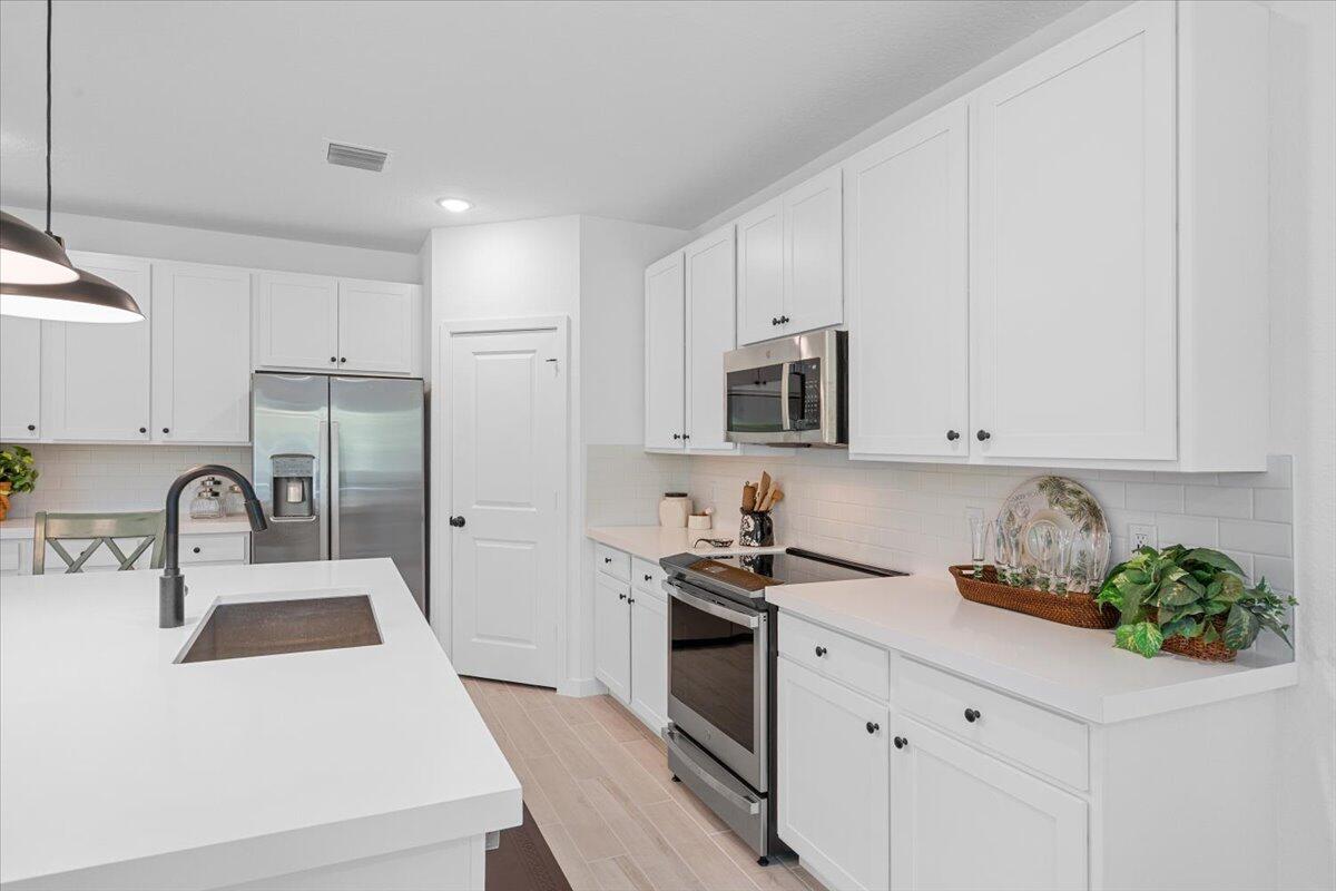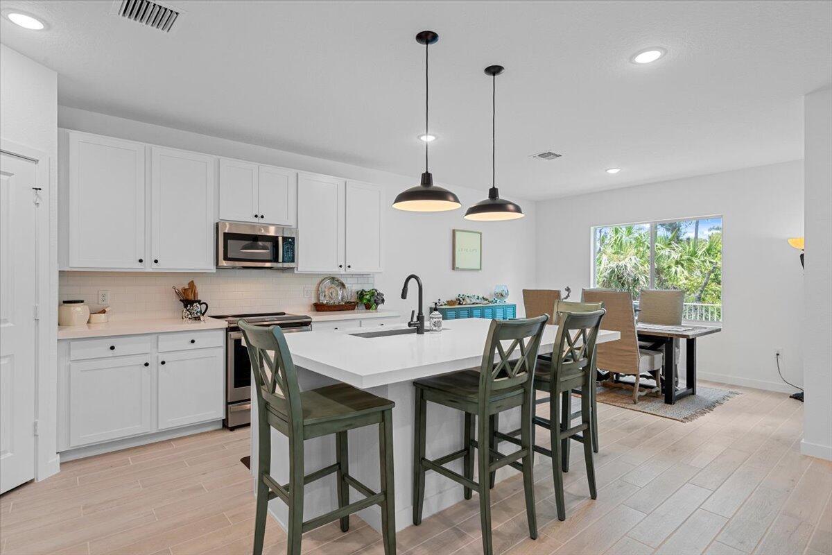Spacious 3Bd, 2.5Ba + Loft + Office!! Two story townhome in the beautiful River Place community feat. over 2200sf of flexible, comfortable living space. Modern central kitchen with white cabinets & matte black hardware. Adjacent dining area overlooking open concept great room, perfect for relaxing and entertaining. Upstairs you will find a lavish primary suite with adjoining ensuite bath featuring dual vanity, walk in shower and extra storage. Full upstairs laundry room and two private guest rooms for maximum living convenience. Versatile loft, ideal to use as a den, office or home gym. Outdoor area feat. a covered lanai with peaceful preserve views. Large 2 car garage and driveway. Centrally located close to the amenity center and pool at River Place on the St Lucie!