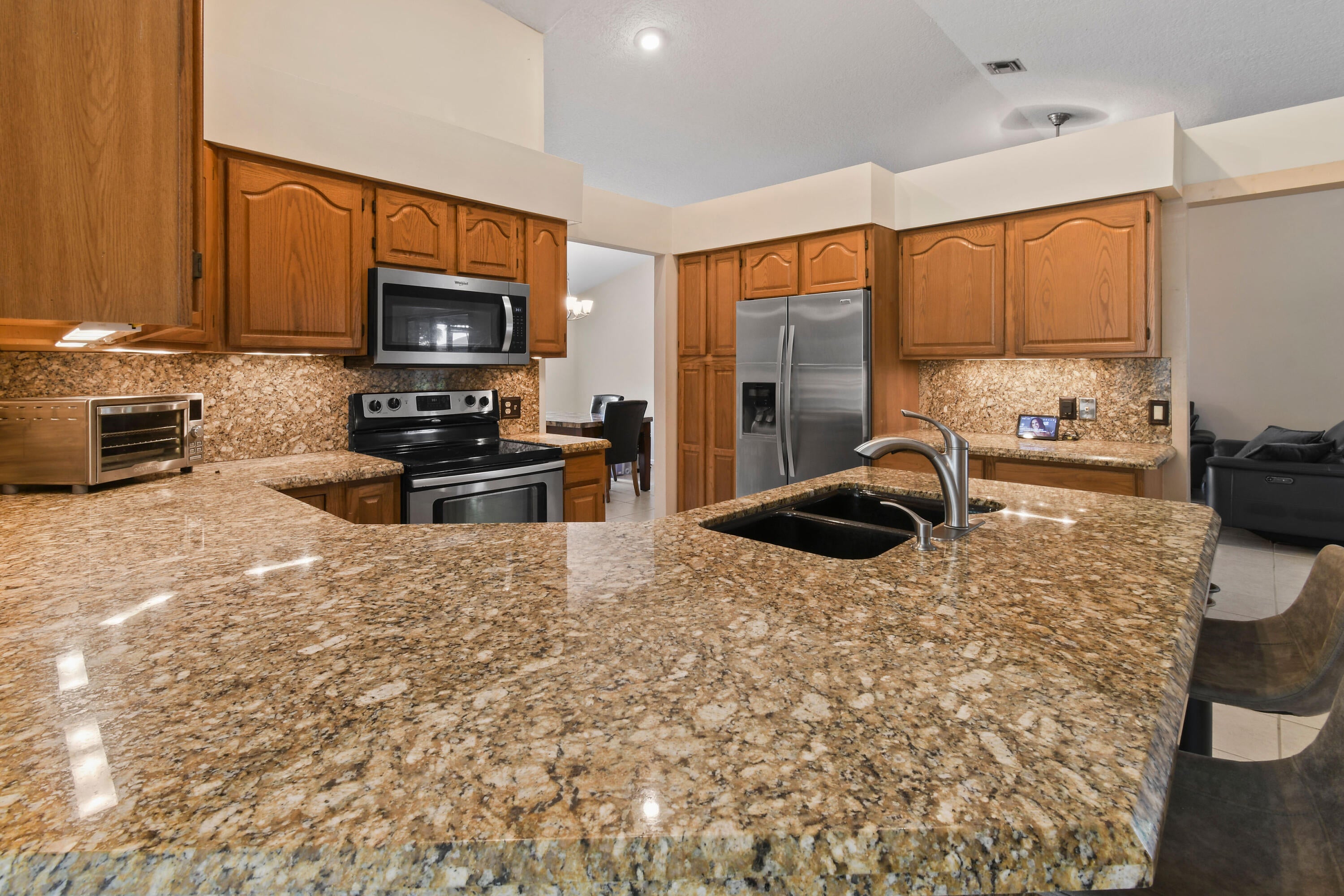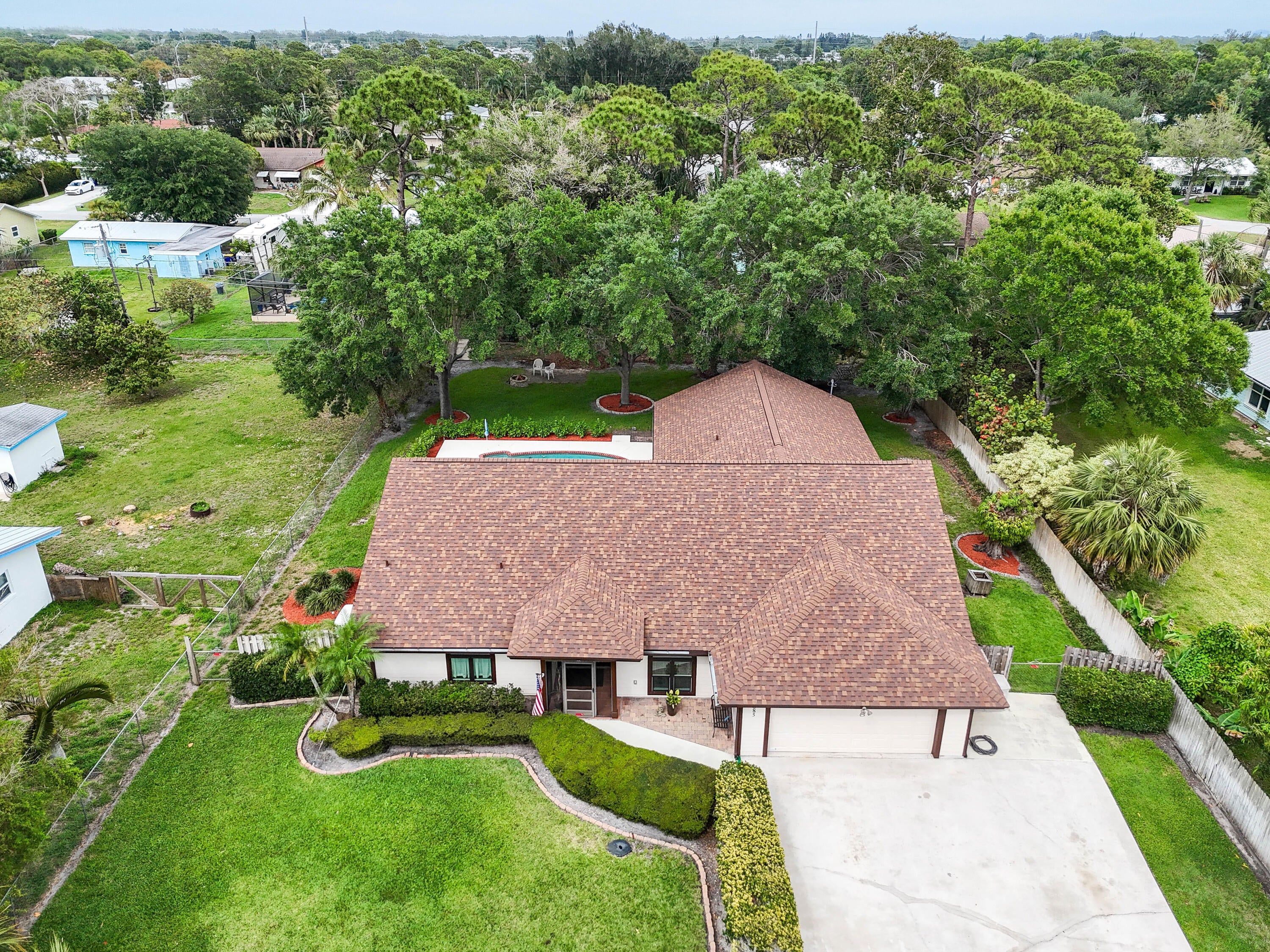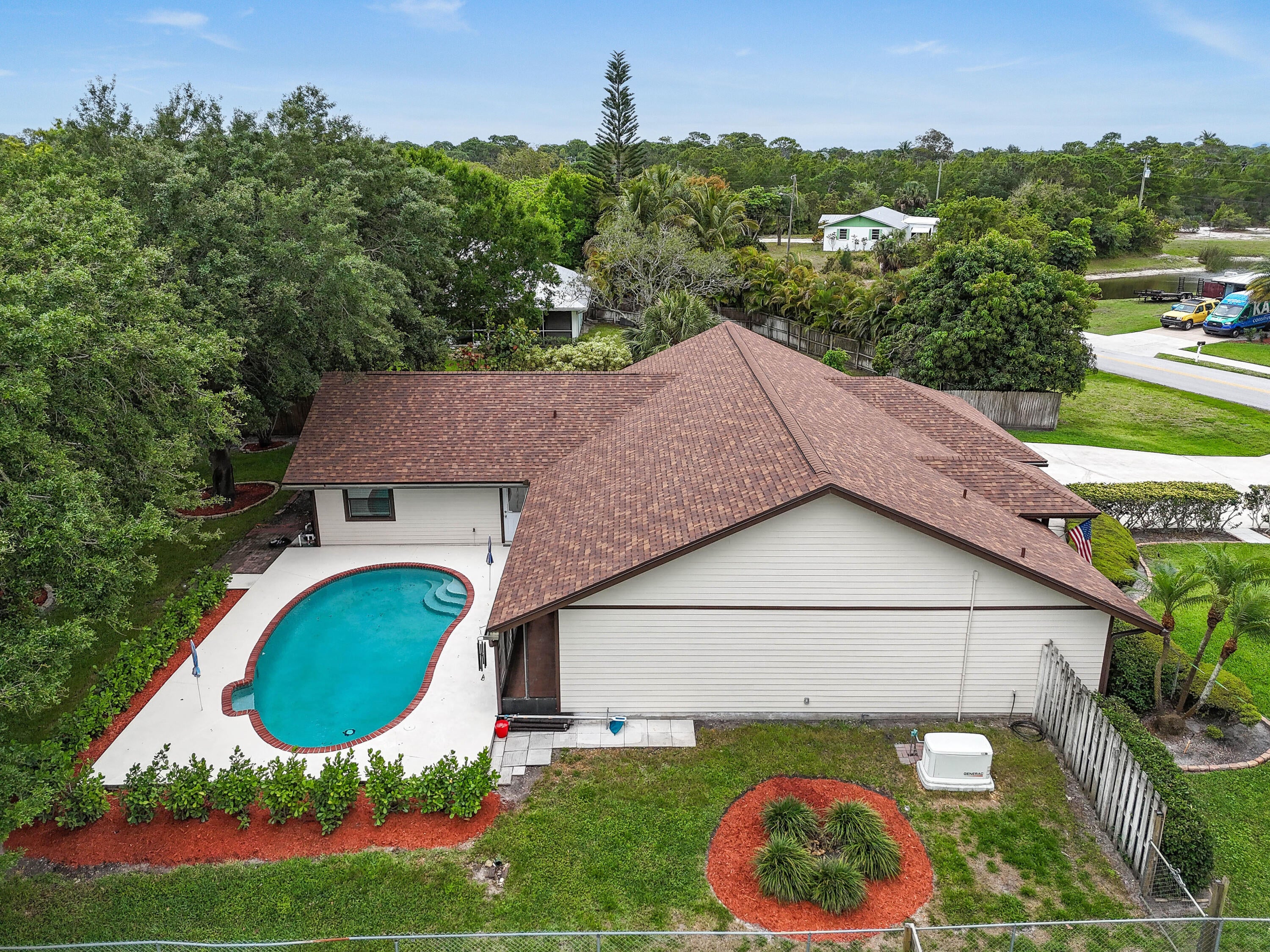 Spacious 5BR/2.5BA split floor plan home with huge primary suite and large front yard. Features a generous kitchen with granite counters and stainless steel appliances, formal dining, and two living rooms. Enjoy outdoor living on the private fenced-in lot with screened patio and pool. Major upgrades include 2023 roof, A/C, full-house generator, updated pool pump and water heater. Impact windows (2024), new siding, and 400-gallon buried propane tank. Large driveway with plenty of parking, no HOA, and located in a great area close to schools, shops, and highways. Move-in ready and built for comfort and convenience.