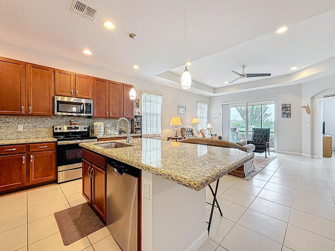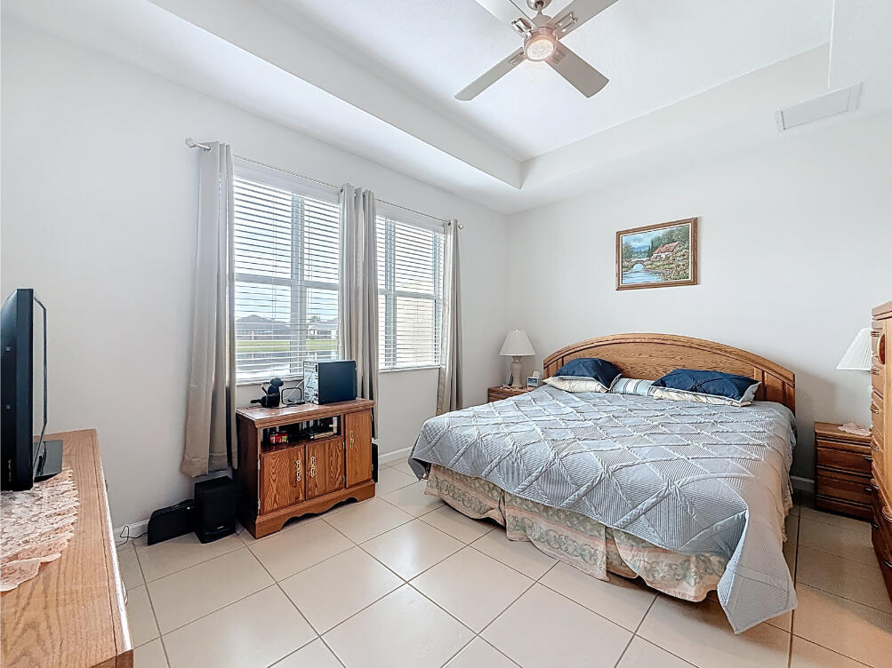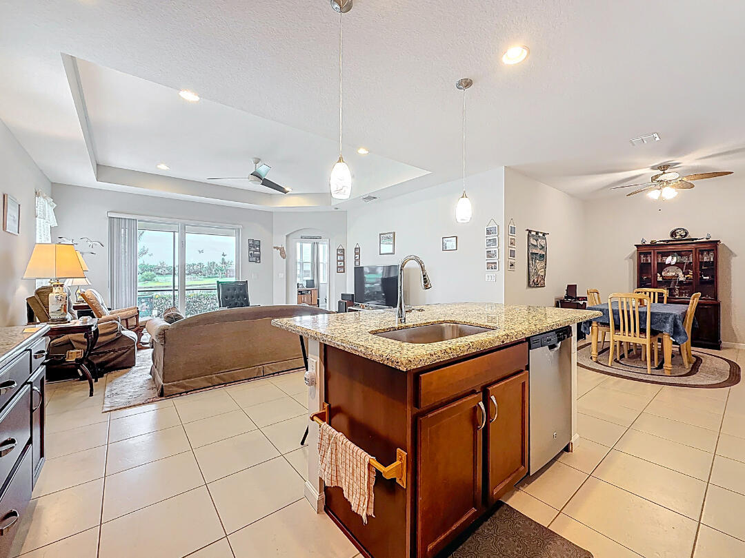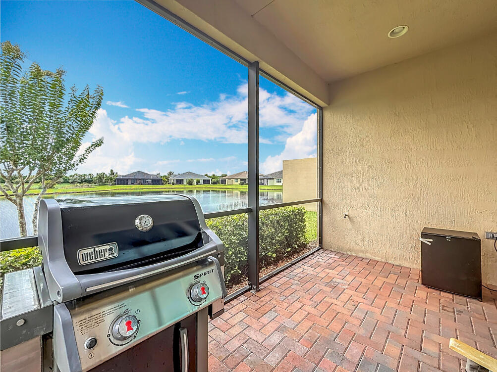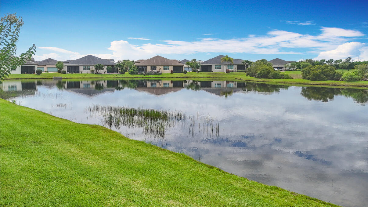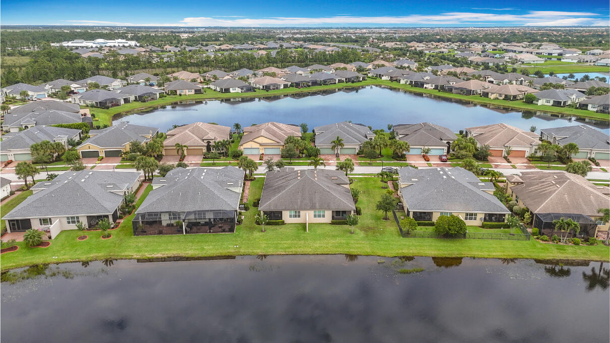 Wide water view! 2 bedroom PLUS den in the beautiful community of Lake Park in Tradition. Tray ceilings, granite counters, stainless steel appliances and 42'' cherrywood cabinets. Master bedroom with walk-in closet and master bath with dual granite sinks and large walk in shower. The lanai has one of the best views in the community with a wide view and no homes on the other side. Feel safe and secure during any storm with complete IMPACT GLASS all around. TWO community pools and clubhouses with tons of community events. HOA fee includes ALL lawn care, cable TV with HBO, high speed internet, monitored security alarm, phone land line and more! Don't miss your chance to own a little piece of Florida paradise!
