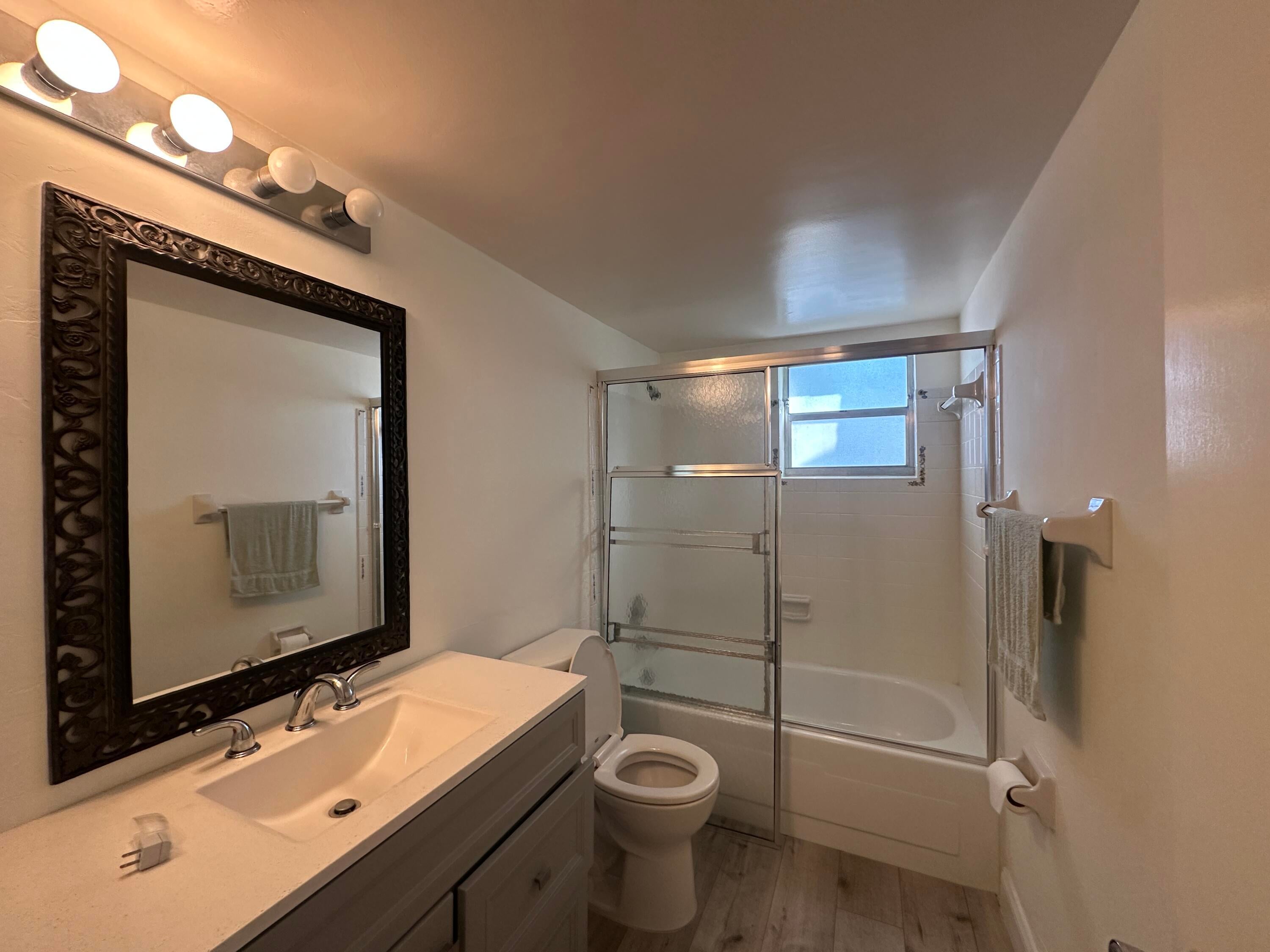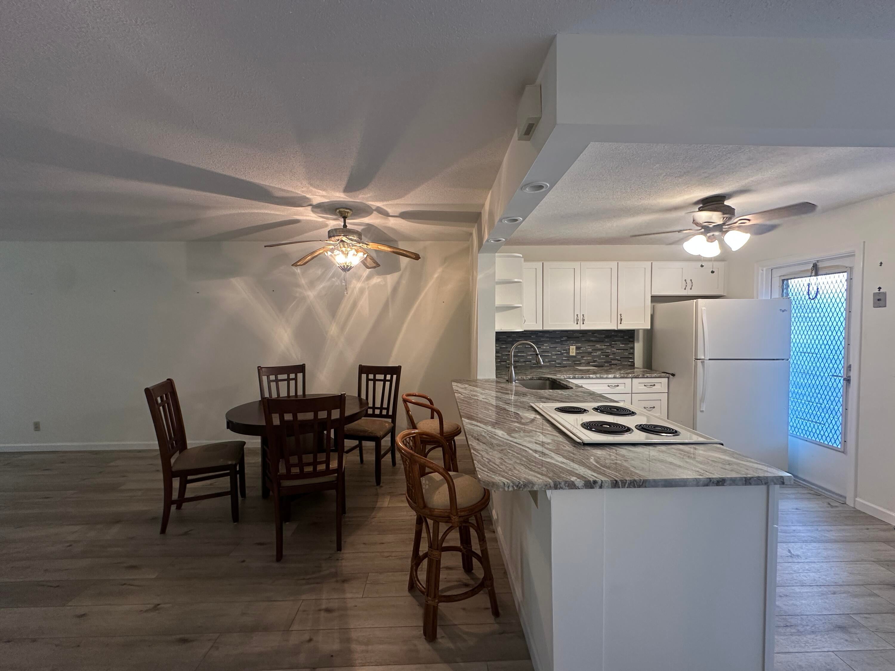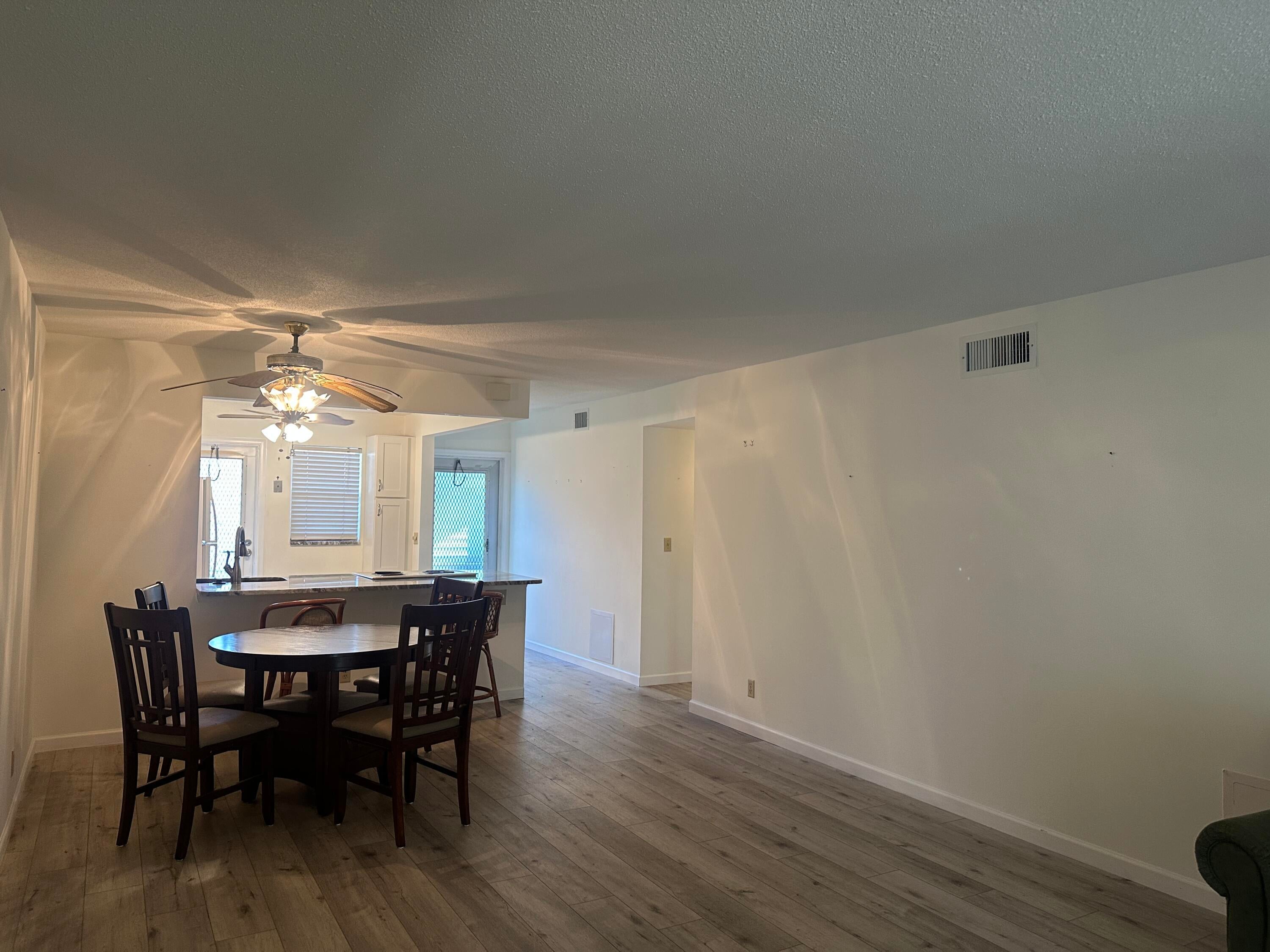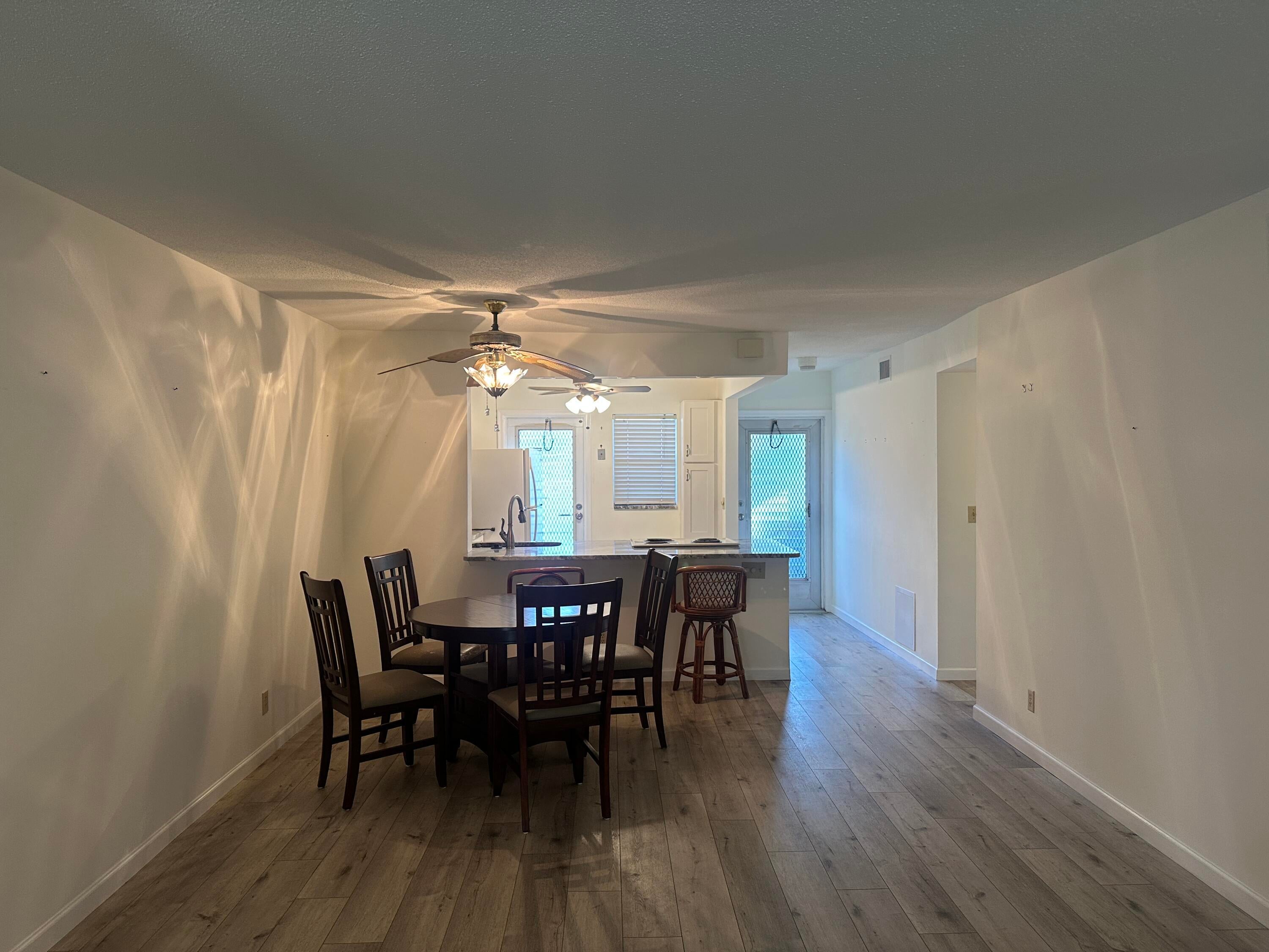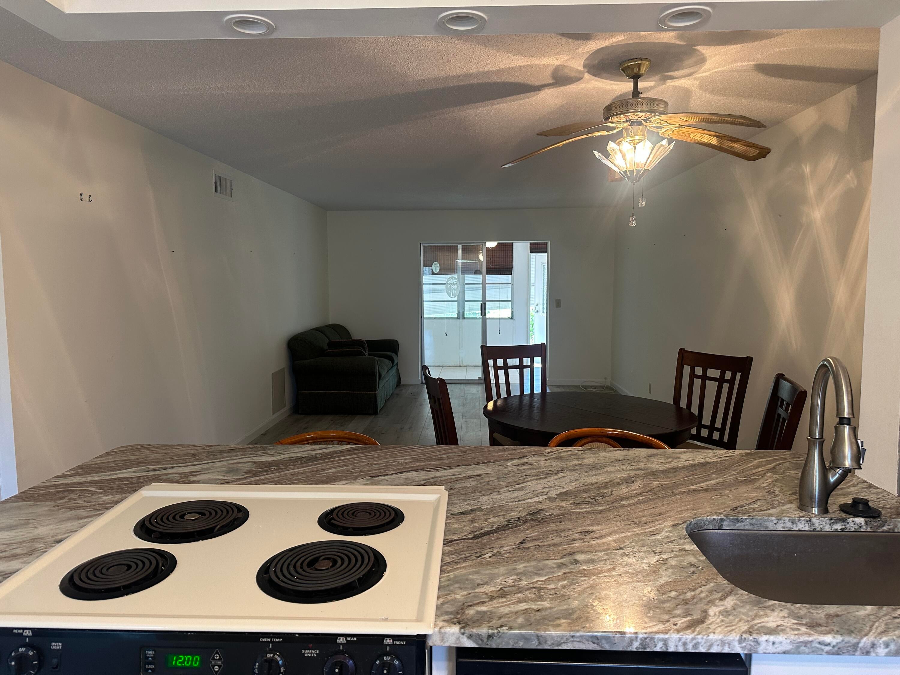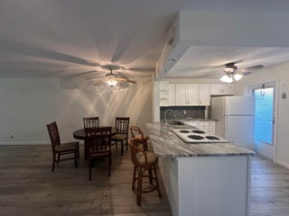 Fabulous first-floor corner unit with assigned and guest parking right in front.Enjoy new flooring throughout, a renovated kitchen with granite counters, and updated baths.Spacious bedrooms feature double windows for cross breezes; primary includes a walk-in closet.Plantation shutters and abundant closet space add style and function.Screened tiled patio with storage and washer/dryer overlooks a peaceful grassy area.55+ well-maintained community, 700+ credit score required. Easy to show!